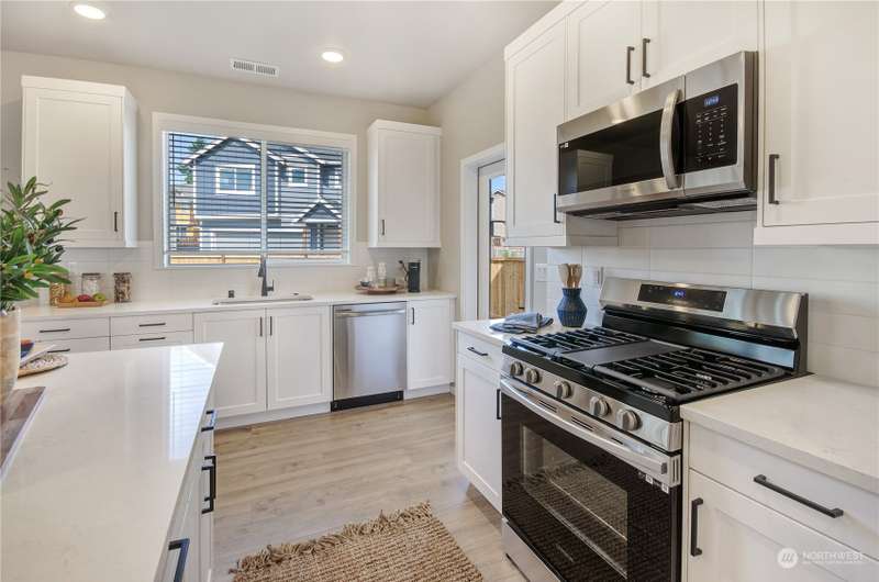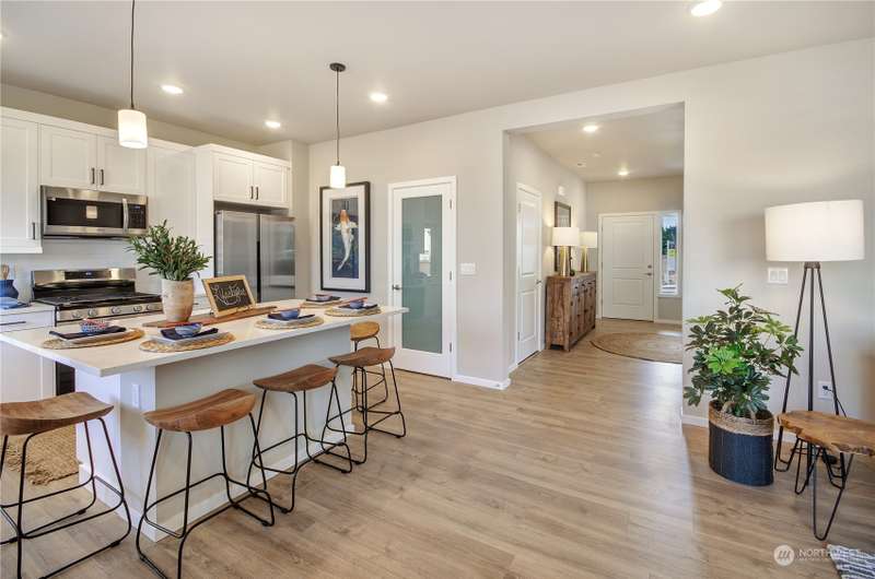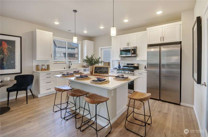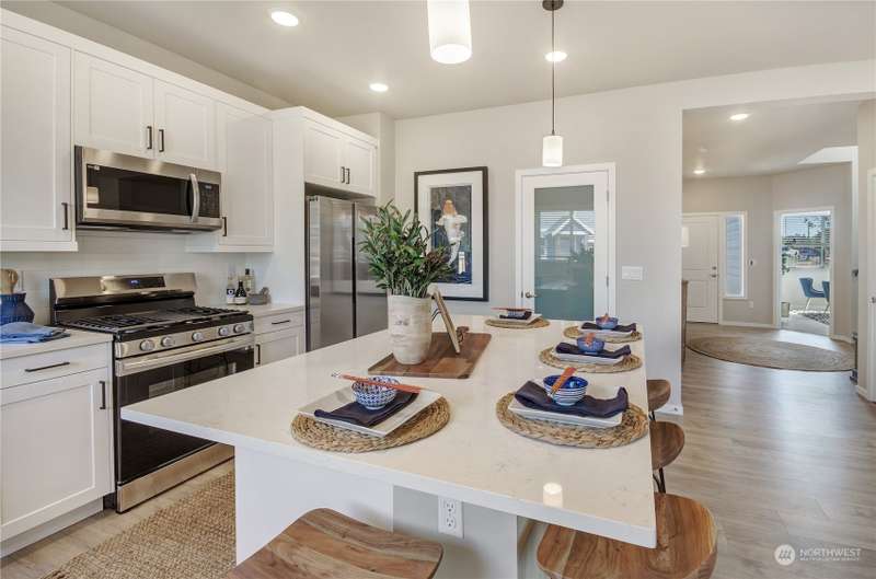 The Preserve, nestled in the Fredrickson area of Tacoma by Rush Residential offers stunning affordable homes with modern amenities and a convenient location. Homes include large kitchens: Quartz counters, full height subway tile backsplash, SS appliances, custom cabinet package w/ hardware, soft close doors/drawers. Main level engineered plank flooring; entry, kitchen/nook, powder & great room. Site painted millwork, luxury en-suite w/ large shower, tile counters in bathrooms. Blinds, washer/dryer, refrigerator, A/C included, covered rear patio, landscaped/fenced yards. Irrigated front yards & maintained by HOA. Easy JBLM and freeways access. Elbe plan lot 14. 4bed, loft, den 3bath. $20,000 incentive with trusted lender.