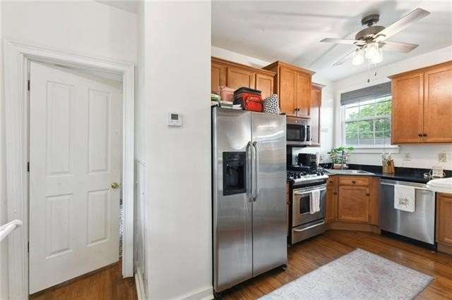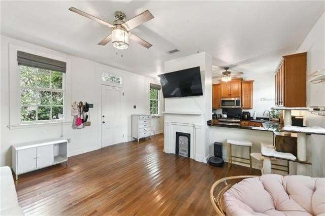 Adorable one-bedroom condo now available in the desirable Irish Channel. This unit is located on the second floor of a historic building and features a long side gallery balcony. Inside, you'll find beautiful wood floors, original fireplace, and convenient in-unit laundry. The bedroom includes a walk-in closet and an en-suite bathroom. The kitchen is well-appointed with granite counter-tops, stainless steel appliances, and a gas range. The location is truly unbeatable, just one block from vibrant Magazine Street. You can easily walk to popular spots like Ruby Slipper, Starbucks, Parasol's, Clay Square Park, and many more local attractions. Low condo dues of $262.20 include water, trash/sewer, exterior insurance, flood insurance, yard maintenance, and termite contract. Roof was replaced in 2024. Water heater was replaced in 2023. Comes with private storage shed. Flood zone X.