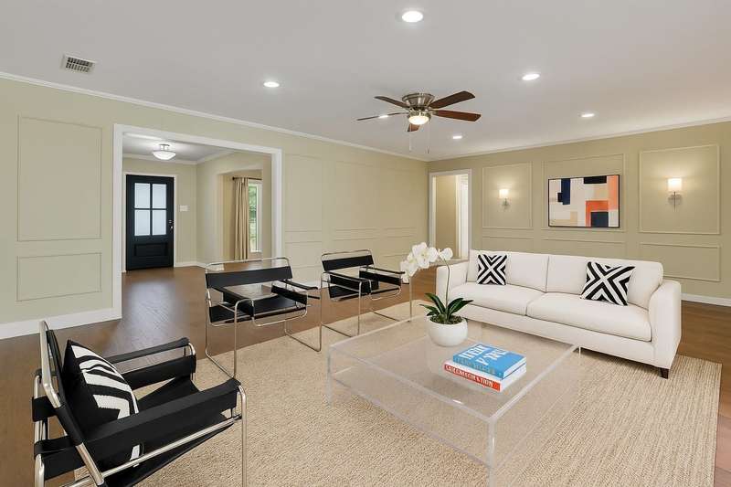 Modern living meets timeless style in the sought after private school corridor.Set on nearly half an acre and framed by mature trees, this beautifully reimagined 3-bedroom, 3.5-bath home offers a perfect blend of luxury, comfort, and versatility. A circular drive and welcoming faade create an elegant first impression, while inside, the open, light-filled layout features rich hardwood floors and flexible spaces designed for modern livingincluding an office that can easily serve as a fourth bedroom.At the heart of the home, the chefs kitchen showcases high-end stainless-steel appliances, custom cabinetry, quartz countertops, an oversized island, and a spacious walk-in pantry. Multiple living and entertaining areas flow effortlessly to the outdoors, where walls of windows overlook the sparkling diving pool and lush, landscaped yard. Step outside to your private retreat with a fire pit seating area, mature trees, and an herb gardenperfect for relaxing or entertaining year-round.The serene primary suite offers direct access to the backyard and features a spa-like bathroom with dual vanities, spacious shower, and dual closets. Thoughtful design details throughout include excellent storage, built-ins, and well-planned functionality that enhance everyday living.Located in the highly desirable private school corridor, this home combines prime location, sophisticated design, and effortless livabilityjust minutes from premier dining, shopping, and major thoroughfares.