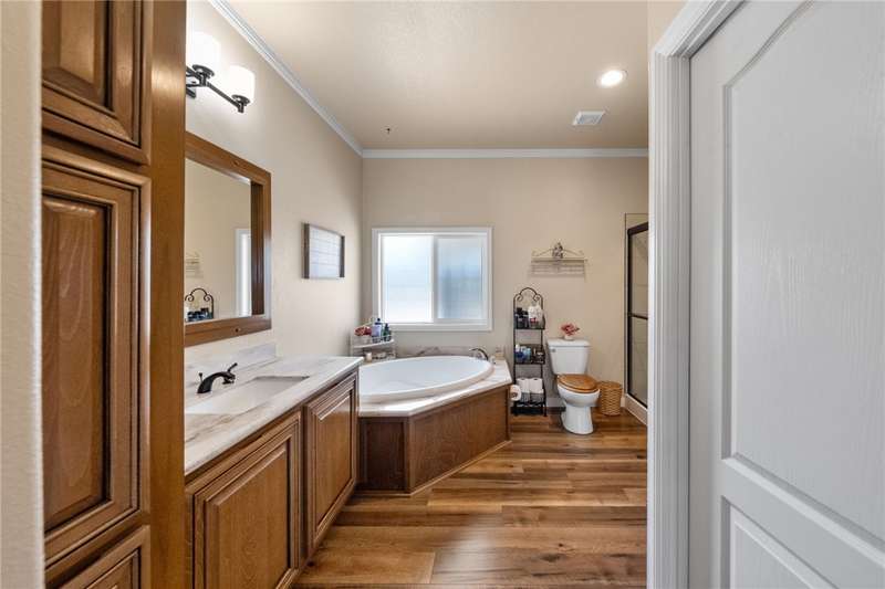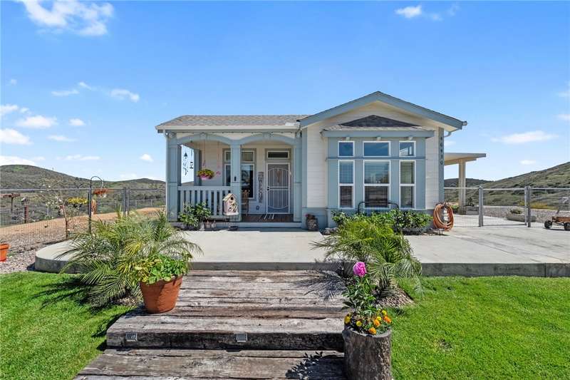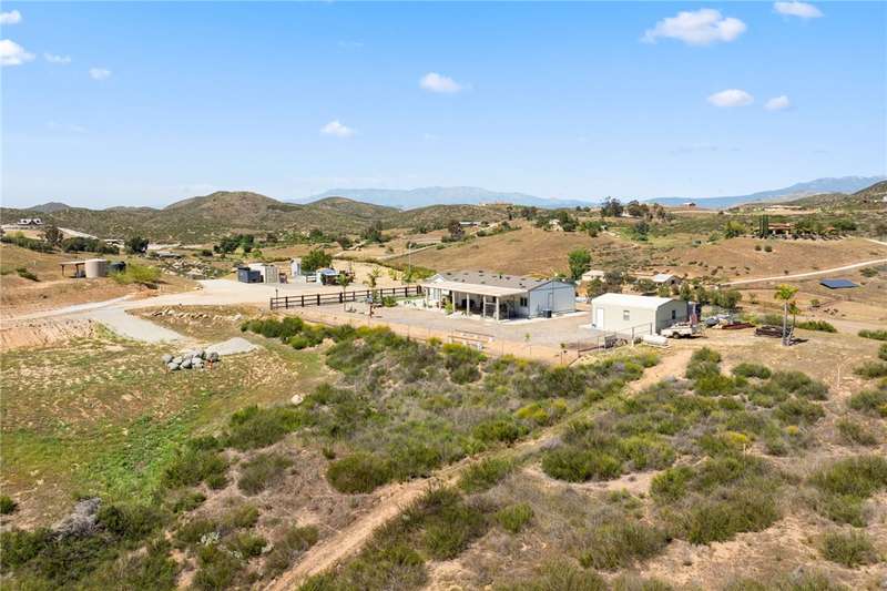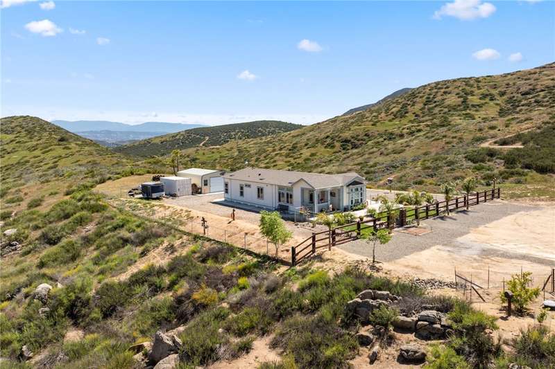 THIS PRICE PLUS OVER 9 ACRES WITH VIEWS??? PRISTINE HOME & PROPERTY!! DON'T LET THIS ONE SLIP BY! Located in Oakridge Ranches on 9.17 acres! Owner takes meticulous care of this upgraded home. Delivering the serenity of rural living without sacrificing modern comforts. Whether you're dreaming of a horse property, a hobby farm, or just some wide-open space to breathe, this Oakridge Ranches retreat has the freedom you've been craving. Behind the gated entry, a charming front porch invites you to slow down and savor your morning coffee in the quiet stillness of nature. Inside, the open-concept layout makes the most of the view, with high-end laminate flooring, crown molding, and a spacious great room that spills effortlessly into the gourmet kitchen. Here, you'll find granite countertops, upgraded cabinetry, a coffered ceiling, stainless steel appliances, built-in trash storage, and plenty of cupboard space. The primary suite is privately tucked at the back of the home and feels like a true escape with its large soaking tub, walk-in shower, dual vanities, coffered ceiling, and walk-in closet. Two additional bedrooms and a full guest bath (with an unused shower!) provide comfortable accommodations for guests and family. Outside is where this property really shines. A massive 47' x 15' aluminum patio cover with recessed lighting and outlets covers a 60' x 15' concrete patio--ideal for outdoor living. You'll also find a 20' x 24' metal garage/workshop, a 9' x 15' storage shed on a concrete RV pad (with dump station), sidewalks that wrap the entire home, two cargo containers (40' and 20'), and three 10-foot access gates enclosing the fully fenced quarter-acre yard. The property also boasts a permanent foundation (concrete slab with 40" crawl space and drainage), an upgraded 200-amp electrical panel, and an emergency backup generator system that powers everything but the A/C and well. A 3-stage water filtration system with 20" x 4" filters is located under the home, with a 2-inch water line running from the well to the rear yard. The water system is robust, with a 150-gallon-per-minute well, a 5,000-gallon water tank, and an additional 1,500-gallon poly tank for backup. A 1,200-gallon concrete septic tank also serves the home. And, if you're looking to expand, there is a separate 120' x 70' graded pad is ready for horses, animals, or your next big idea. This home is a lifestyle...one with sunsets, starry skies, and space to grow.