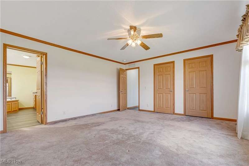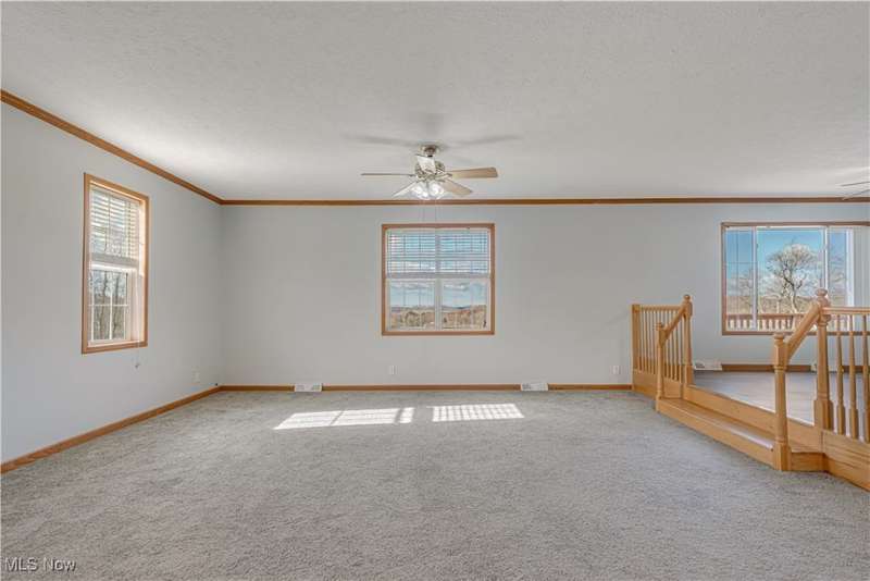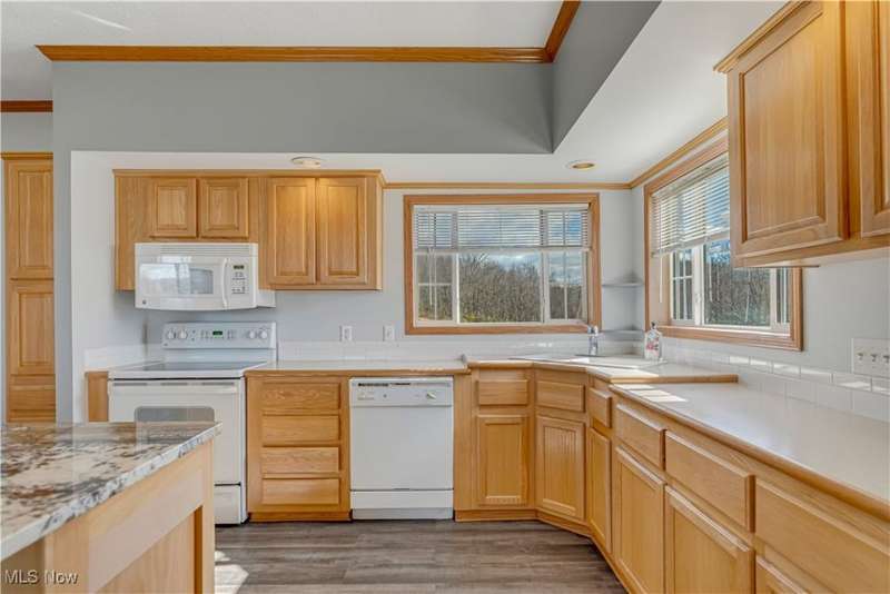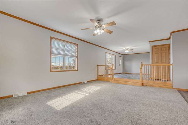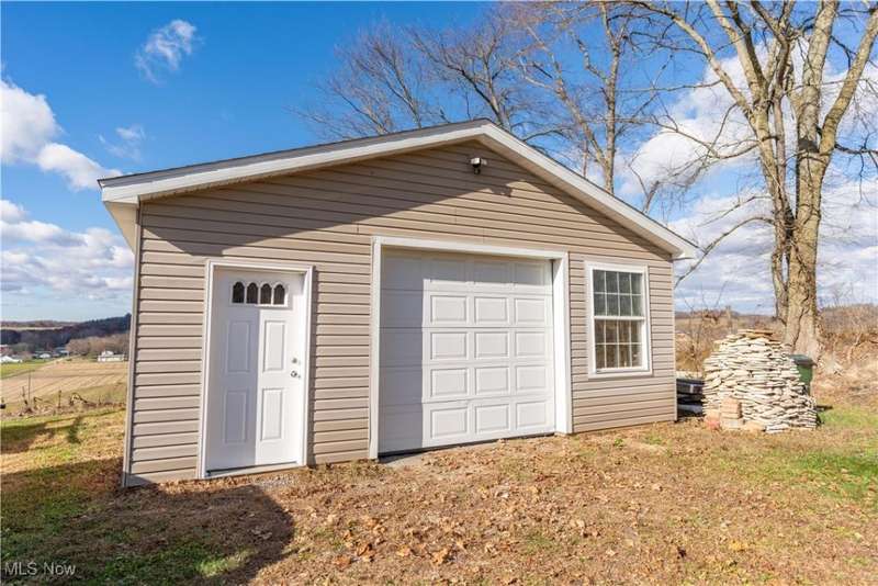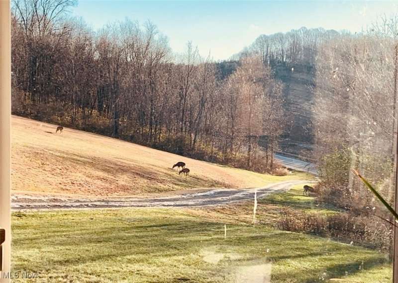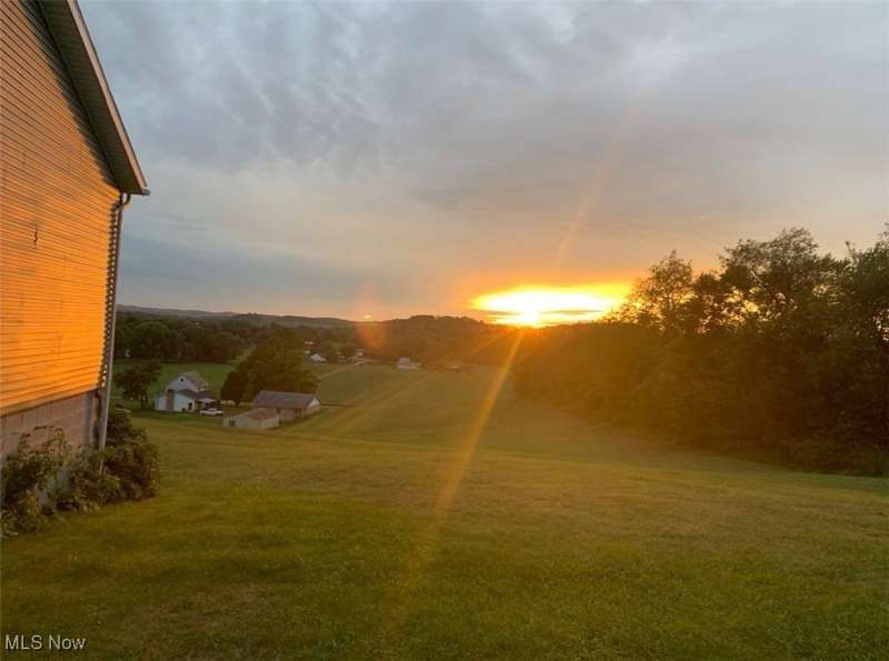 Beautiful sunset views await you from this stunning 8.3-acre property in Paris Township, just outside of Robertsville. This spacious ranch home offers approximately 3,200 sq ft of finished living space, 4 bedrooms and 3 full baths with an open floorplan, abundant natural light, and gorgeous rural views from every angle. Enjoy two decks and a patio overlooking deer, wildlife, farmland, and wooded acreage?perfect for outdoor enthusiasts, hunting, riding 4-wheelers, or simply relaxing in the peaceful countryside. The main level features a large kitchen with a granite island that seats four, walk-in pantry, and all appliances conveying, along with a family room and living/dining area. The first-floor primary suite includes generous closets and a full bath with dual vanity, soaking tub, shower, and separate vanity area. Two additional bedrooms, a second full bath, and first-floor laundry complete the main level. The finished walk-out lower level adds a spacious recreation room, fourth bedroom with large closet, full bath, and a workshop/storage area. The property also includes an oversized 1-car garage (wide enough for two vehicles but fitted with a single door) and a storage shed. Offering room for livestock and plenty of space to enjoy the outdoors, this property blends comfort, privacy, and country living at its finest.