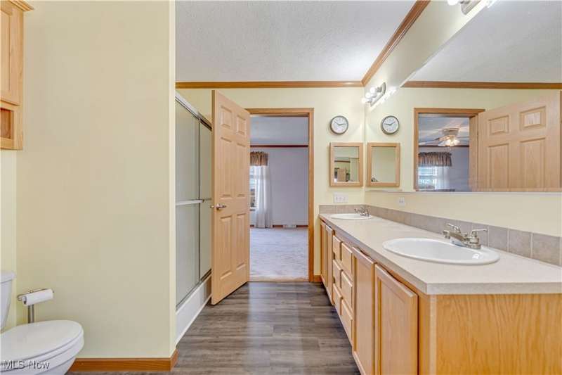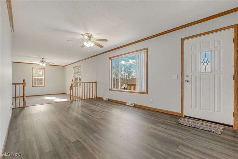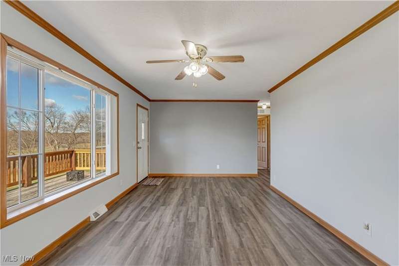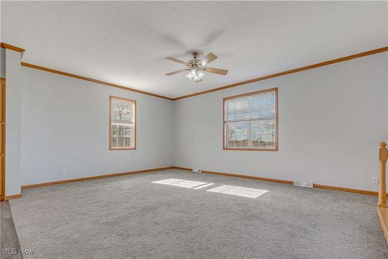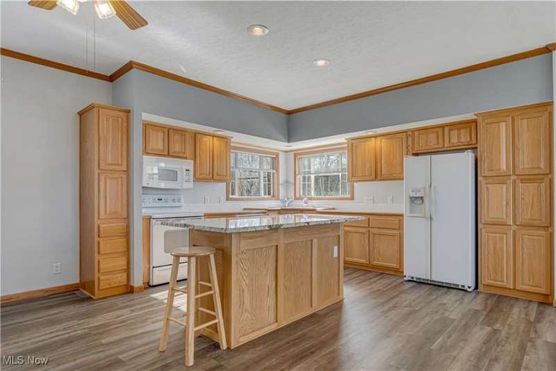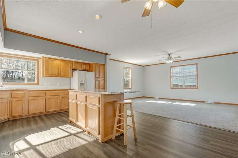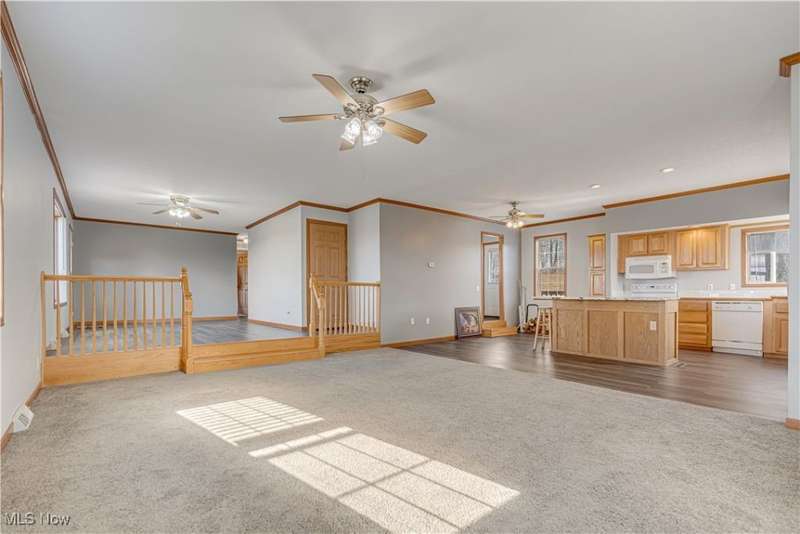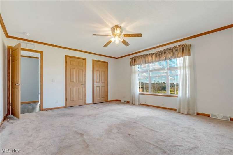 Beautiful sunset views await you from this stunning 8.3-acre property in Paris Township, just outside of Robertsville. This spacious ranch home offers approximately 3,200 sq ft of finished living space, 4 bedrooms and 3 full baths with an open floorplan, abundant natural light, and gorgeous rural views from every angle. Enjoy two decks and a patio overlooking deer, wildlife, farmland, and wooded acreage?perfect for outdoor enthusiasts, hunting, riding 4-wheelers, or simply relaxing in the peaceful countryside. The main level features a large kitchen with a granite island that seats four, walk-in pantry, and all appliances conveying, along with a family room and living/dining area. The first-floor primary suite includes generous closets and a full bath with dual vanity, soaking tub, shower, and separate vanity area. Two additional bedrooms, a second full bath, and first-floor laundry complete the main level. The finished walk-out lower level adds a spacious recreation room, fourth bedroom with large closet, full bath, and a workshop/storage area. The property also includes an oversized 1-car garage (wide enough for two vehicles but fitted with a single door) and a storage shed. Offering room for livestock and plenty of space to enjoy the outdoors, this property blends comfort, privacy, and country living at its finest.