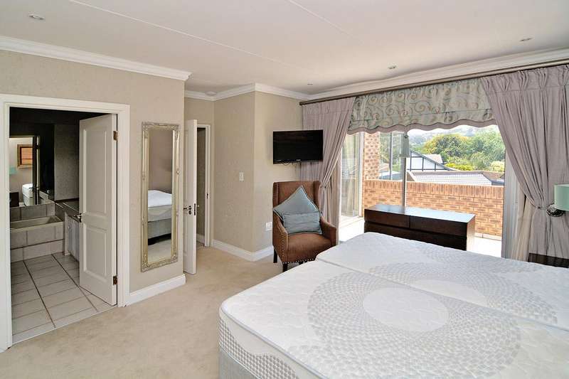 Unsurpassed tranquility-uncompromising security.The ultimate in family living with exquisite mountain views. Low maintenance , lock- up and go. Cocooned in a secure complex plus 24hr access controlled suburb.Luxurious flowing formal lounge with gas fireplace, built-in bar area,dining room and family room leading to covered patio, an open plan TV lounge with the inviting family kitchen which is complimented with a walk-in pantry, scullery and laundry.Upstairs fitted executive study, pajama lounge,gym room leading onto balcony.3 sunny all en-suite bedrooms with private balconies and mountain views. Executive main bedroom with walk in closet, His & Hers bathrooms and sauna.Wine collectors cellar, A manicured garden with sparkling pool. Domestic accommodation,double automated, tiled garages, 1 carport, CCTV Conveniently located in Bedfordview within easy access to all major highways, Bedford Gardens Private Hospital and O.R. Tambo International Airport, as well as Johannesburg's central business district. This upmarket suburb boasts some of the best private schools, such as St Benedict's, Saheti, St Andrews & Reddam House. Great recreational facilities like the Glendower Golf Course & the Virgin Active and many more. Also upmarket dining & shopping at Eastgate Mall, Bedford Square and the ever-popular Tasha's at Village View.