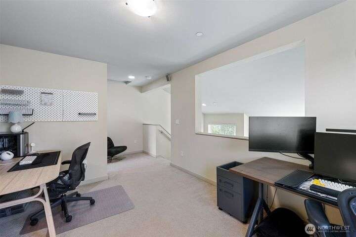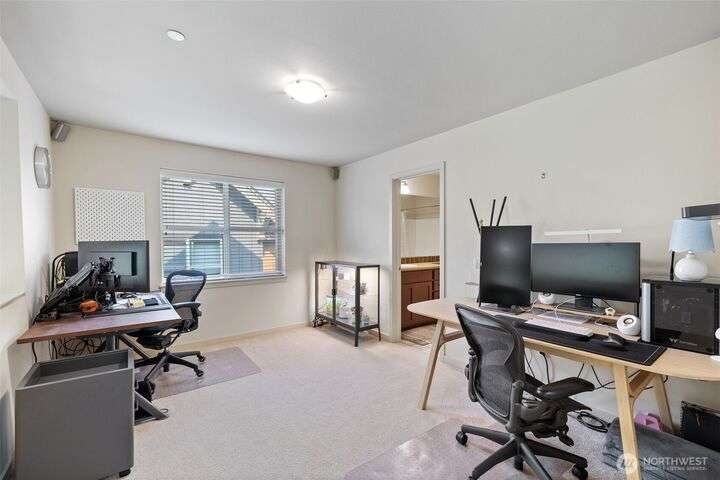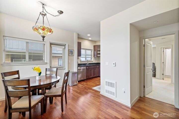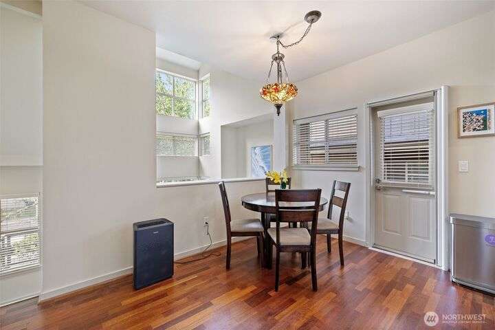 Welcome to Camden at Harbour Pointe. large end unit has high volume soaring ceilings, stainless steel appliances, cozy tiled gas fireplace in great room, 2 primary suites, spacious loft that could easily be converted to 3rd bedroom, slab granite counters, eating nook, real wood cabinets & gorgeous hardwood flooring. Primary suite on main w/ensuite & walk-in closet. Floor-to-ceiling windows bring in tons of light. Energy efficient hydronic heat to help save on utility costs. Enjoy those BBQs on deck located right off kitchen. Relax w/a book while catching the sunset off front covered porch. Handy sizable storage room on lower level. side by side 2 car garage w/2 more spots outside. plenty of guest parking. Close to ferry, shopping & I-5/405.
