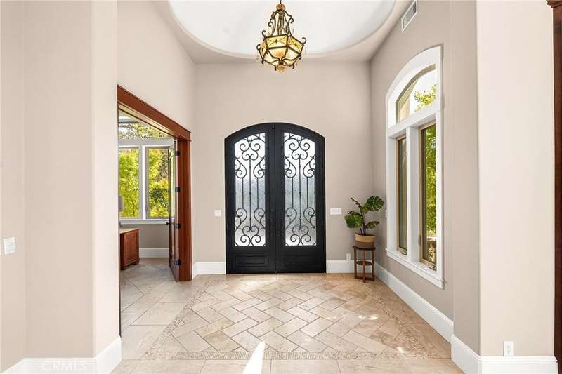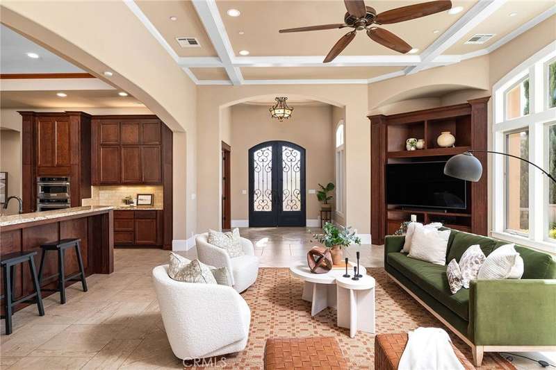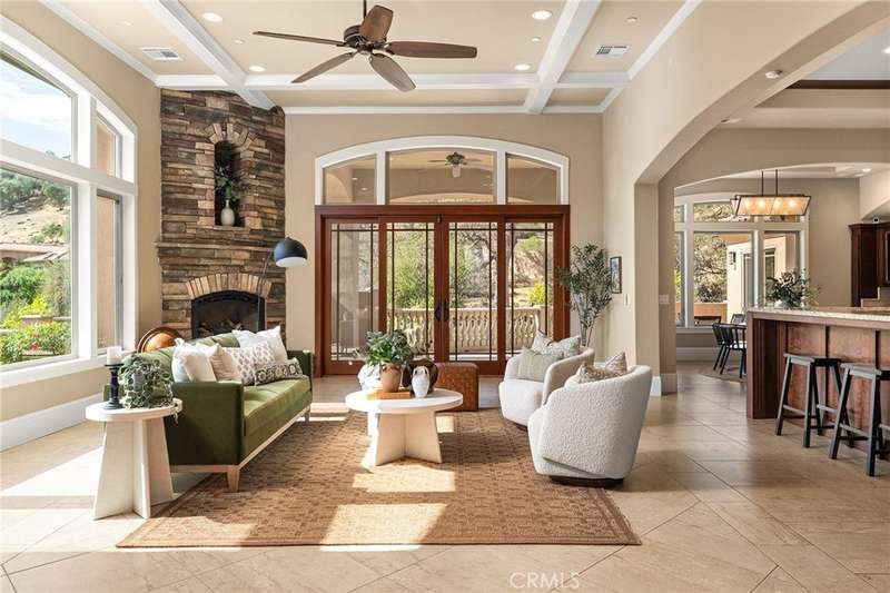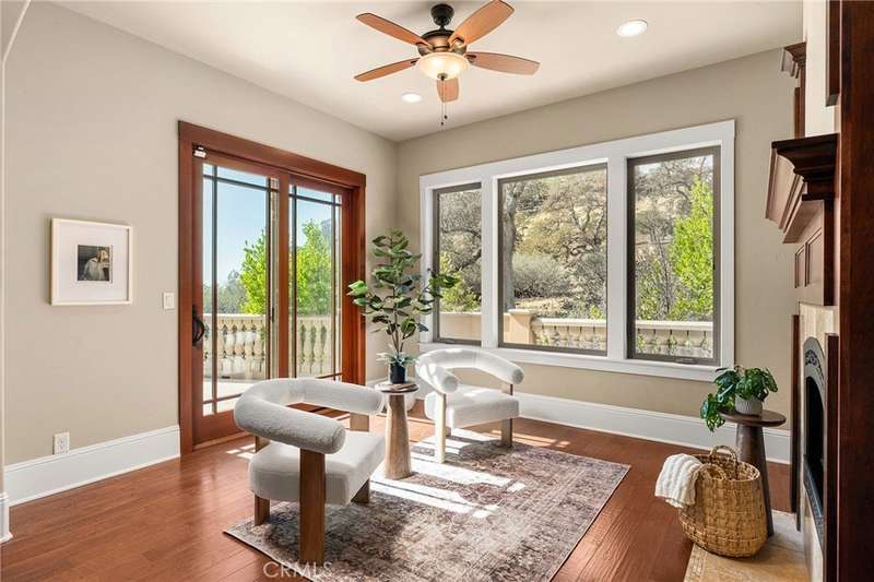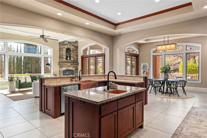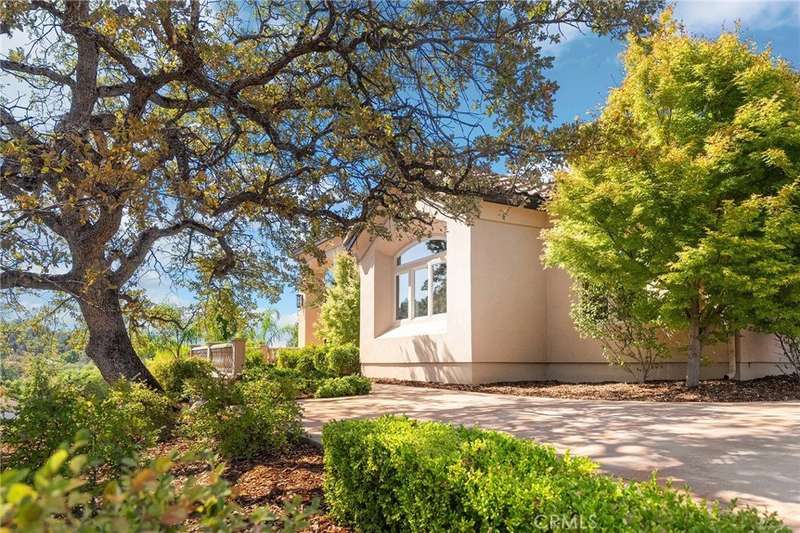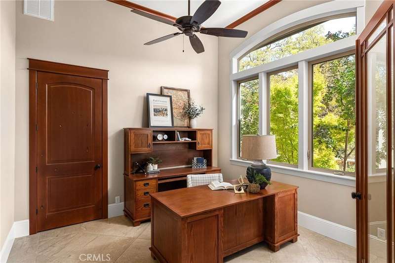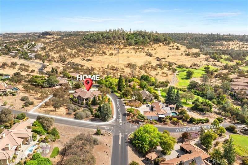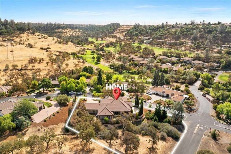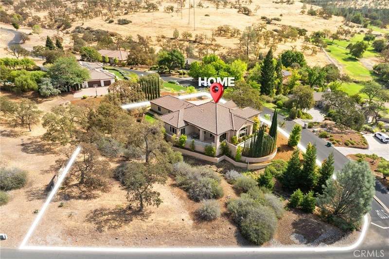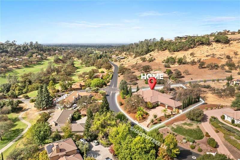 Welcome to Canyon Oaks, one of Chico’s most exclusive gated communities. This remarkable residence sits on a full acre with a seasonal creek and mature trees, offering peaceful surroundings and panoramic views that stretch for miles. Inside, the grand entry sets the stage with soaring ceilings and dramatic double doors. The open layout highlights a spacious living area anchored by a custom fireplace and expansive windows framing the natural scenery. The kitchen is a showstopper, featuring rich cherry cabinetry, granite countertops, a copper farmhouse sink, large island, and premium appliances—an ideal space for both everyday cooking and hosting gatherings. Designed for indoor-outdoor living, the home opens to an impressive 1,500-square-foot travertine patio where you can entertain, dine, or simply take in the views. The primary suite feels like a retreat, complete with a cozy sitting area and fireplace, direct access to the patio, a luxurious bathroom with a jetted soaking tub, dual-head shower, double vanity, and abundant closet space. Additional bedrooms include a secondary suite with its own bath, plus two guest rooms. A private office with French doors (and its own closet) could easily serve as a fifth bedroom if needed. Practical features enhance the lifestyle here as well, including a 4-car garage with room for a golf cart, custom finishes throughout, and beautifully landscaped grounds that blend seamlessly with the natural surroundings. This is more than a house—it’s a rare opportunity to experience refined living in one of Chico’s most sought-after communities.