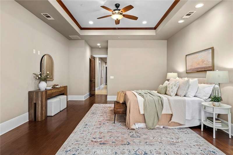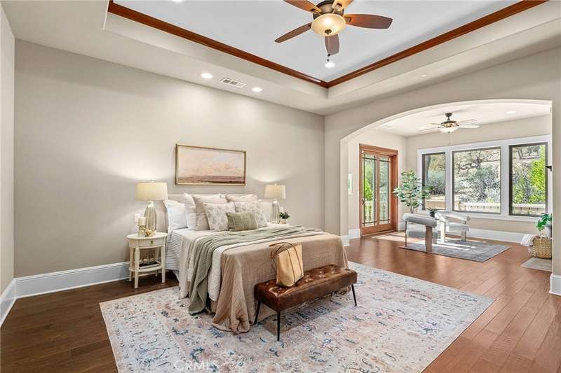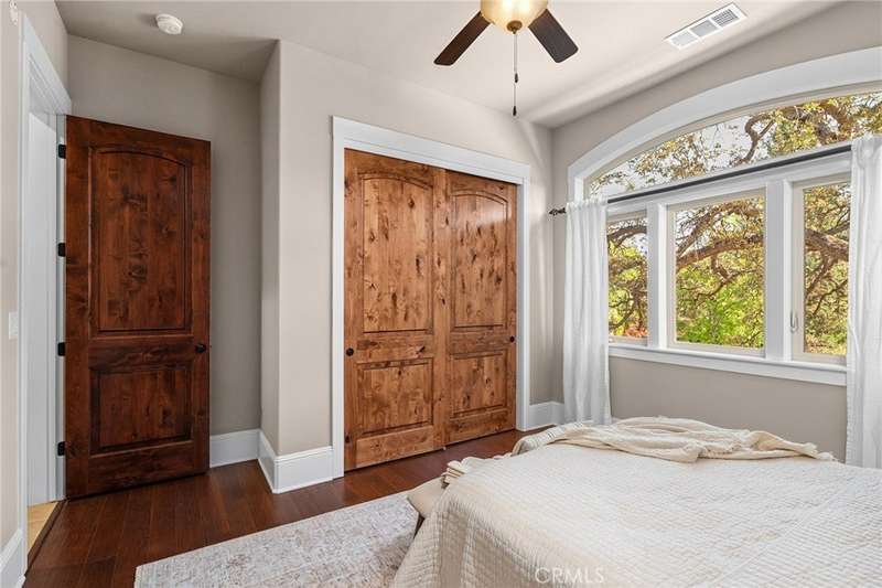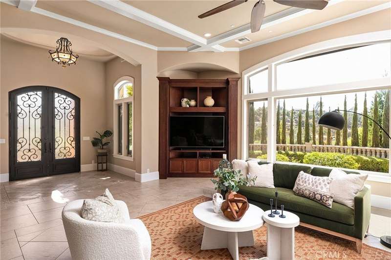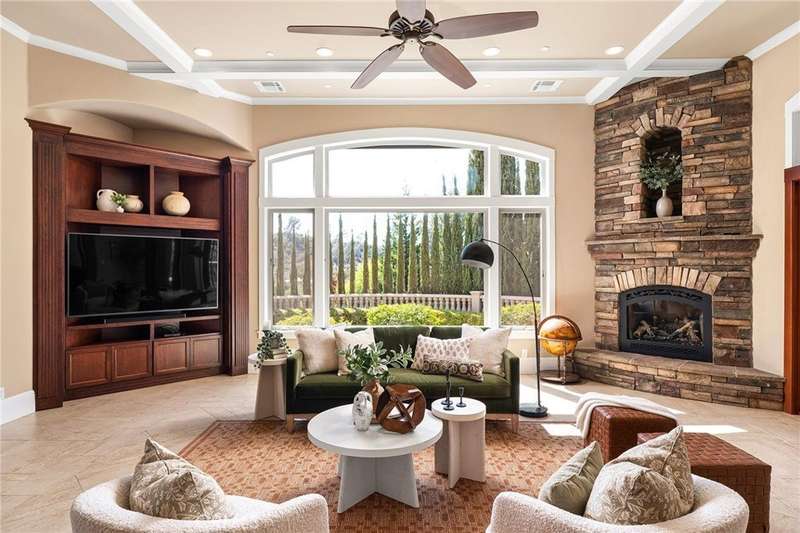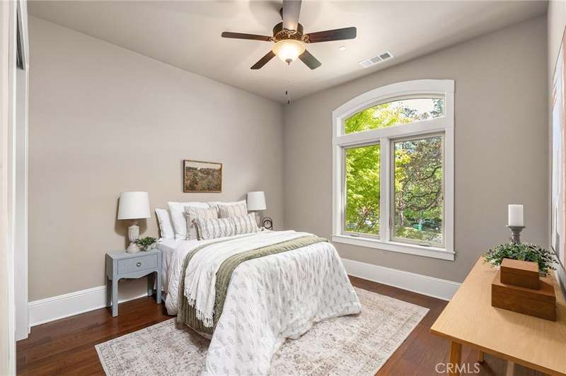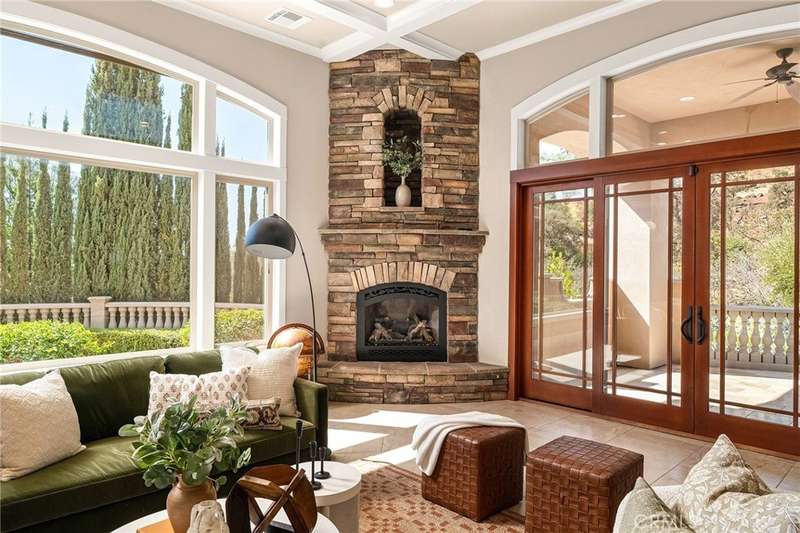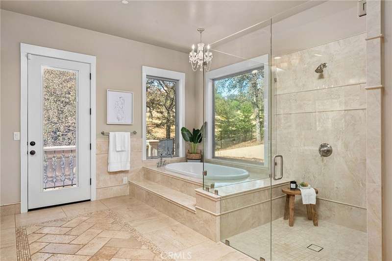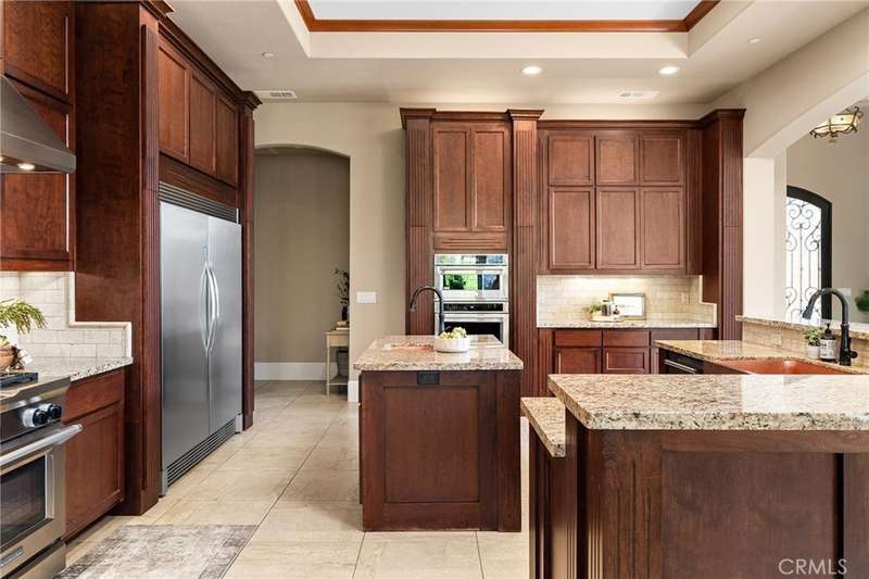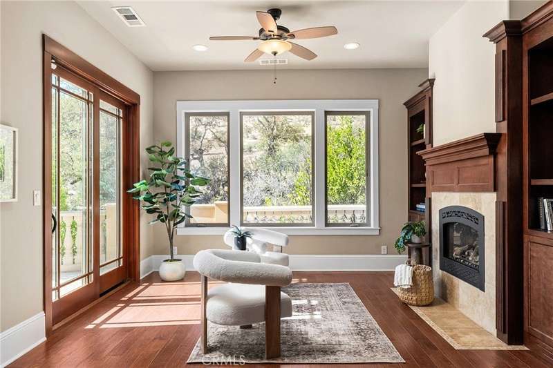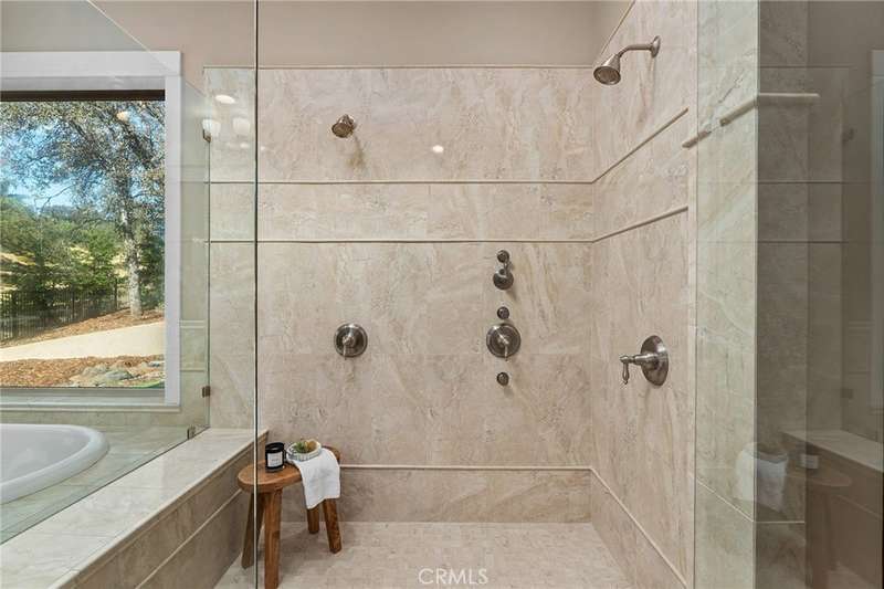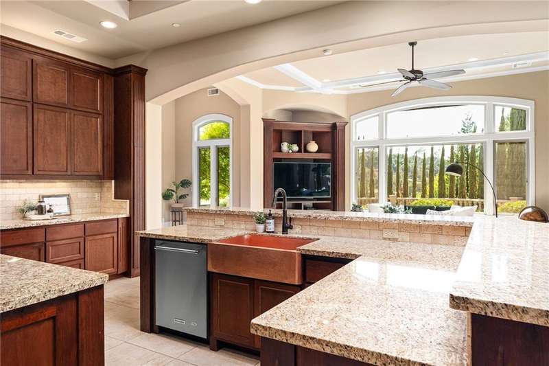 Welcome to Canyon Oaks, one of Chico’s most exclusive gated communities. This remarkable residence sits on a full acre with a seasonal creek and mature trees, offering peaceful surroundings and panoramic views that stretch for miles. Inside, the grand entry sets the stage with soaring ceilings and dramatic double doors. The open layout highlights a spacious living area anchored by a custom fireplace and expansive windows framing the natural scenery. The kitchen is a showstopper, featuring rich cherry cabinetry, granite countertops, a copper farmhouse sink, large island, and premium appliances—an ideal space for both everyday cooking and hosting gatherings. Designed for indoor-outdoor living, the home opens to an impressive 1,500-square-foot travertine patio where you can entertain, dine, or simply take in the views. The primary suite feels like a retreat, complete with a cozy sitting area and fireplace, direct access to the patio, a luxurious bathroom with a jetted soaking tub, dual-head shower, double vanity, and abundant closet space. Additional bedrooms include a secondary suite with its own bath, plus two guest rooms. A private office with French doors (and its own closet) could easily serve as a fifth bedroom if needed. Practical features enhance the lifestyle here as well, including a 4-car garage with room for a golf cart, custom finishes throughout, and beautifully landscaped grounds that blend seamlessly with the natural surroundings. This is more than a house—it’s a rare opportunity to experience refined living in one of Chico’s most sought-after communities.