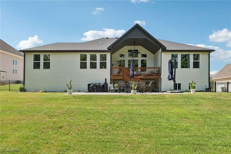 Here is your chance! This STUNNING Bedford-style Ranch built by Drees Homes in 2023, nestled in the desirable Highland School District. Is looking for its new family. This thoughtfully designed home sits on .90 acres and blends modern elegance with functional comfort. Step inside to discover an open-concept layout filled with natural light, vaulted ceilings, and stylish finishes throughout. The heart of the home is the spacious kitchen, featuring a striking 10' by 4' Quartz island, perfect for cooking, entertaining, or casual dining. A cozy gas fireplace anchors the living space, offering warmth and ambiance. With four bedrooms, three full bathrooms, and a convenient half bath, there's room for everyone. The custom Amish-built bench in the laundry room adds both charm and practicality. Enjoy indoor-outdoor living with a covered front porch, a covered back deck, and an impressive 31' by 31' stamped concrete patio ? ideal for gatherings or quiet evenings. The fenced-in backyard provides added privacy and space to roam. Additional features include a three-car garage, and the peace of mind that comes with a nearly-new construction. Don't miss your chance to own this BEAUTIFULLY crafted home in one of Brunswick's most sought-after areas!