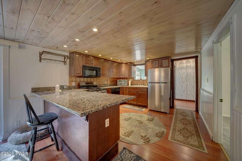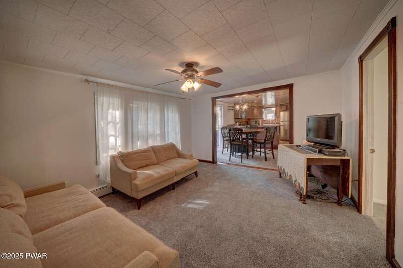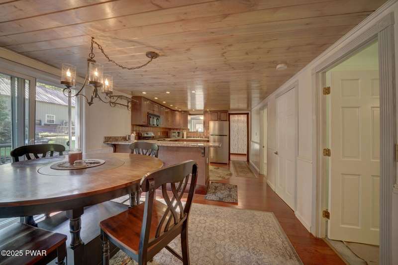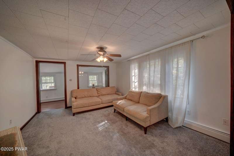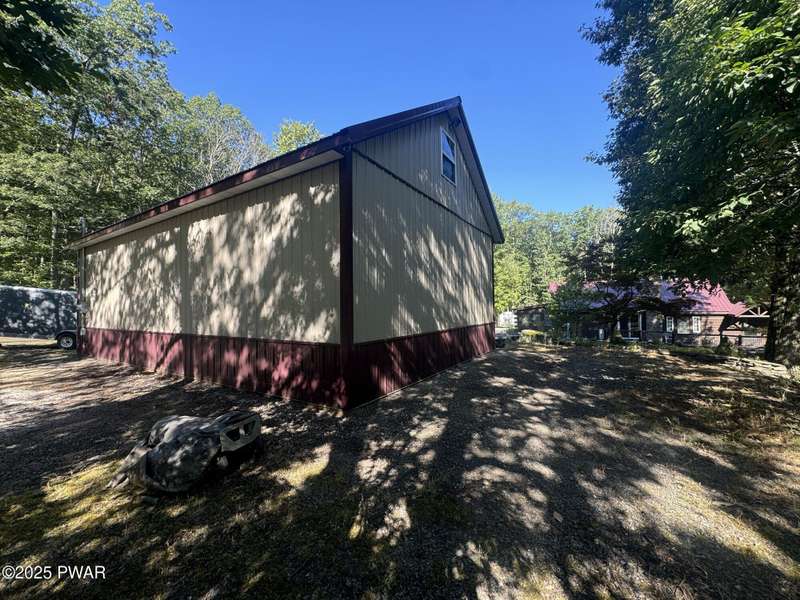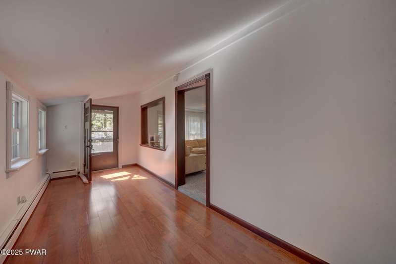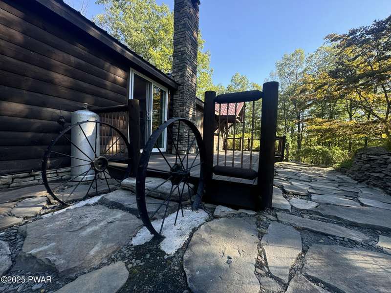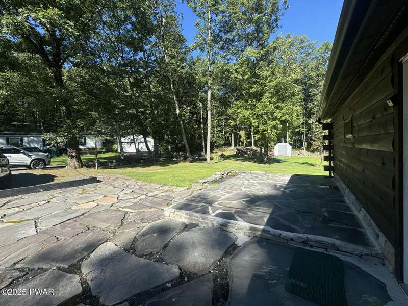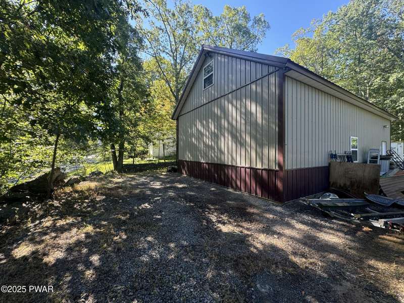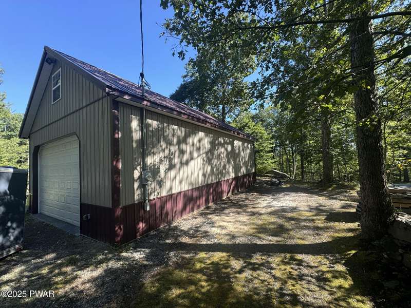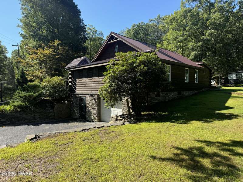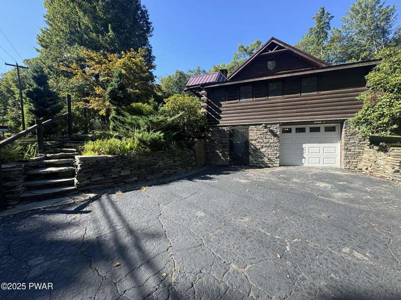 Charming Log-Sided Home Near Lake Wallenpaupack!This 3-bedroom, 1-bath home offers rustic character with modern updates in a fantastic location. The updated kitchen overlooks the dining room, flowing into a cozy living area--perfect for entertaining or relaxing. A handy mud room adds extra storage and convenience.Set on 0.97 acres, the property features a spacious yard, private deck, and stone patio ideal for outdoor gatherings. An oversized detached garage with loft space provides endless options for storage, hobbies, or a workshop.Located just minutes from Hawley and Lake Wallenpaupack's public boat launch, this property combines privacy, charm, and accessibility. No community fees--just the perfect Pocono retreat!