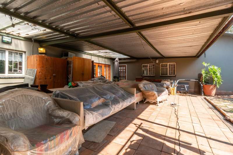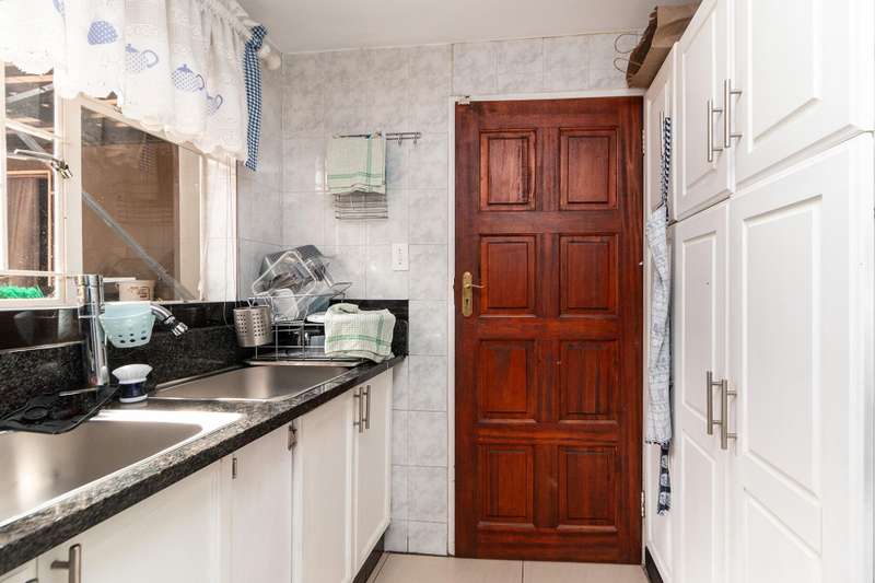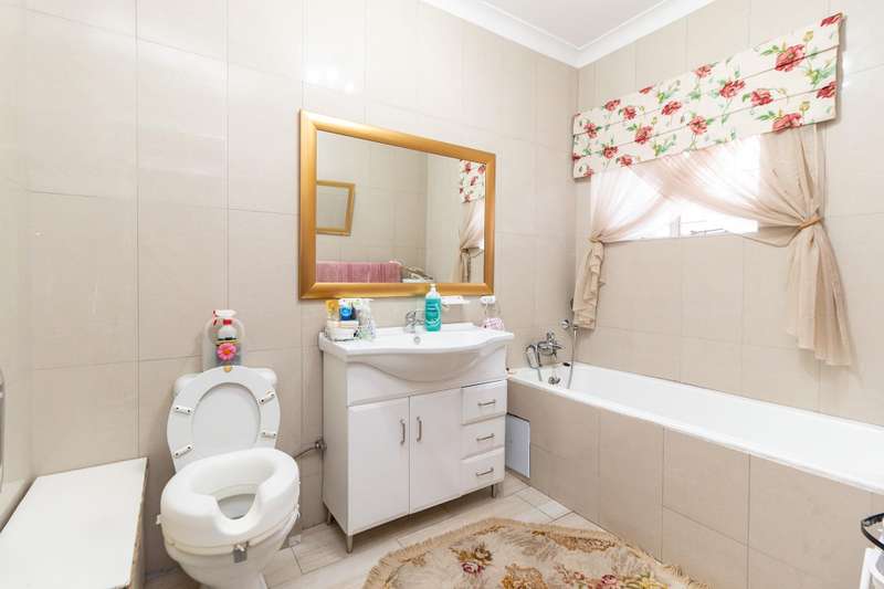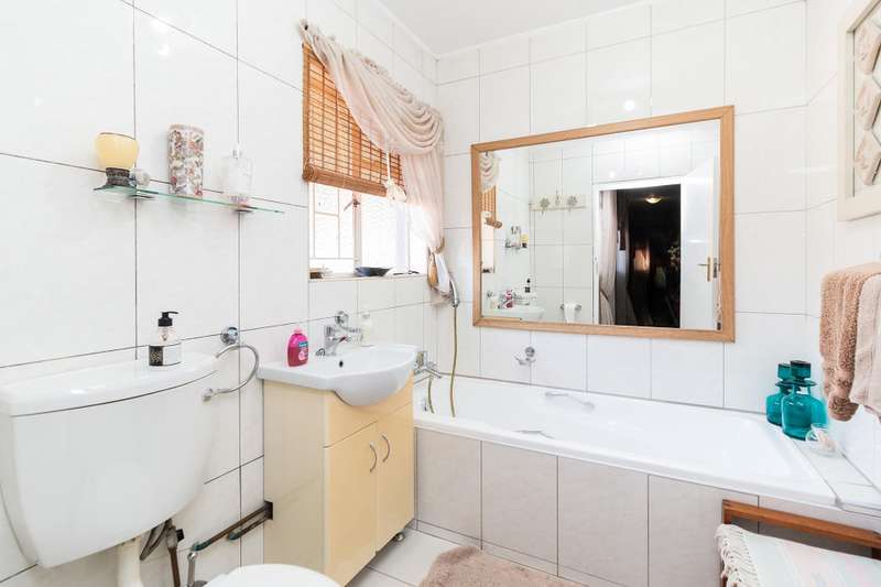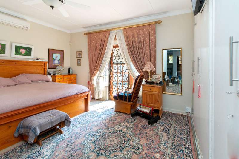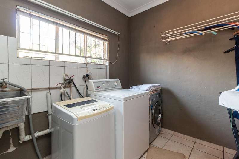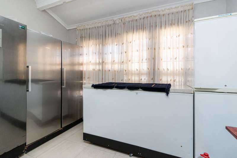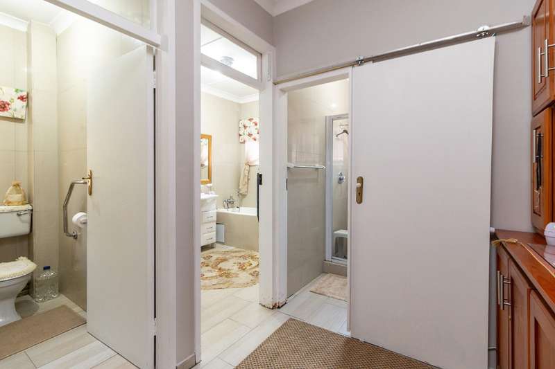 The left wing has 3 bedrooms of which all are fitted with built-in cupboards. The main bedroom has its own ensuite comprising of a shower basin and toilet. There are two more bathrooms and a separate toilet.