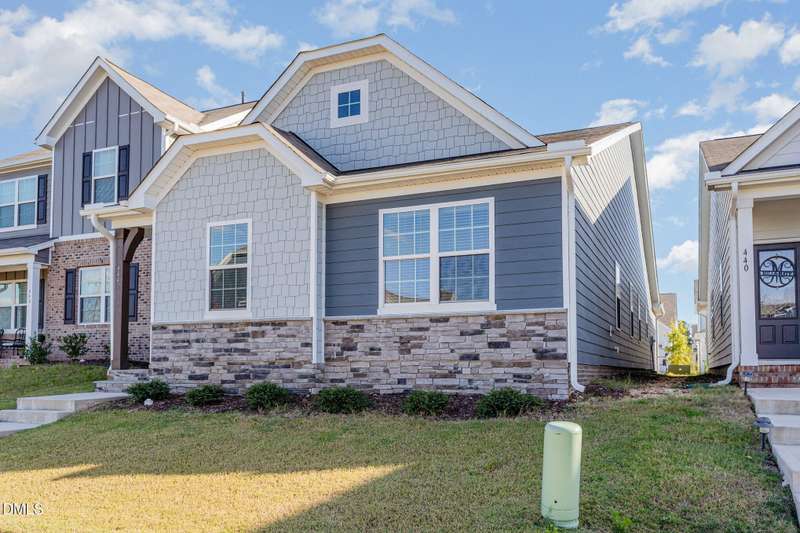 This sweet 3-bedroom ranch with 2-car rear-load garage, built in 2023, is Haywood Glen's most popular Haywood floorplan. The gorgeous kitchen is the centerpiece of the home and is ideal for entertaining, featuring sleek granite counters and large island with double sinks, stainless appliances including a gas cooktop, dishwasher and French door refrigerator with bottom freezer. A generous pantry, coffee bar counter and convenient laundry room are all nearby. All appliances convey with acceptable offer. Wide louvered blinds provide privacy throughout the home, and warm LVP flooring shines in all common areas. A spacious front-facing office/flex room has double French doors. The primary suite features a customized walk-in closet and bath with dual vanities and walk-in shower. Two additional bedrooms share a full bath with tub/shower combo, and the adjacent hall linen closet has also been nicely customized. Enjoy morning coffee or an evening beverage on the rear screened porch tucked just behind the kitchen. Haywood Glen's awesome amenities include a community pool, playground, park with covered pavilion, dog park, and walking trails! Convenient to US64 and Knightdale Station, loads of shopping, restaurants and entertainment, local schools, Knightdale Rec Center and Community Park. Easy access to I-540, 401 and US1.