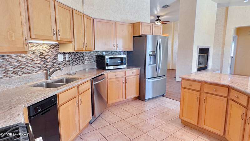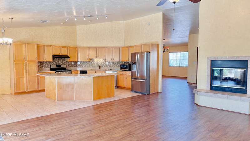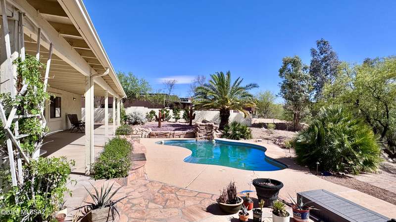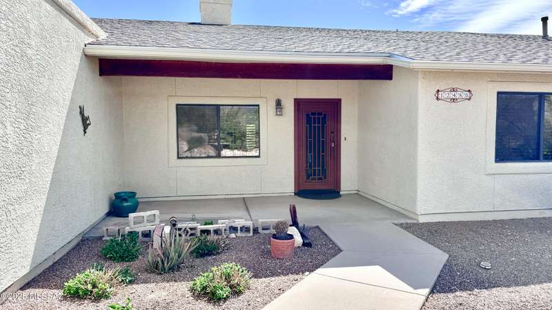 Motivated Seller says bring all offers! This inviting home combines spacious living areas, a backyard oasis & beautiful upgrades throughout. Split bedroom floorplan offers generous living spaces centered around a cozy 2-way fireplace, w/ French doors opening to your private outdoor retreat. Enjoy a solar heated Pebble-Tec pool with waterfall, unwind on the flagstone patio, or gather under the covered seating--perfect for those gorgeous Arizona evenings. The gourmet kitchen features granite counters, stainless steel appliances & plenty of storage. New LVP flooring! The primary suite is a true retreat with a large walk-in closet & spa-like bath. Additional highlights include RV parking with a plug-in in the garage & huge barn-style storage shed with loft for extra storage.
