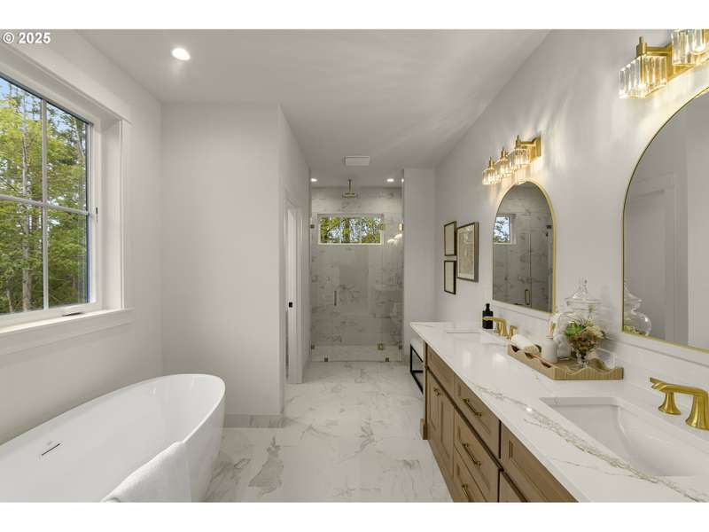 Level yard in Washington County w/ Greenspace views! Ask about financing incentive to close home this year! DUAL PRIMARY SUITES - ONE PRIMARY ON MAIN LEVEL. Stunning new construction, backing to private greenspace in coveted West Haven neighborhood! Built by Jorgenson Design and Development this home is thoughtfully created with a Primary Suite on the main level and secondary suite upstairs. As you enter into an expansive foyer you are welcomed with a large 2-story great room with full height fireplace and walls of windows looking out to the private scenery. The Kitchen is a focal point of this home with a 9' island, 42" gas range with custom hood, full height cabinets and working pantry with plenty of room for storage, counter appliances and daily goods. A lounge area off of the kitchen is a surprising treat offering a quiet place for morning coffee or an evening beverage as it comes complete with wetbar and access to outdoor patio. The upper level offers secondary suite w/ large walk-in closet and access to private covered deck overlooking greenspace. Additional guest bedrooms, bathroom, office and second laundry area located upstairs. A masterful landscape plan includes multiple outdoor destination areas specifically designed for owners to enjoy the quiet outdoor setting on their own or while entertaining friends and family year round. Interior selections include quartersawn oak cabinetry, 9" wide plank engineered wood flooring, oversized Calacatta flooring and walls in the Primary, exquisite hardware and lighting, and much more. for floorplan or to schedule private showing. Home is complete, just in time for the holidays! Taxes not yet assessed.