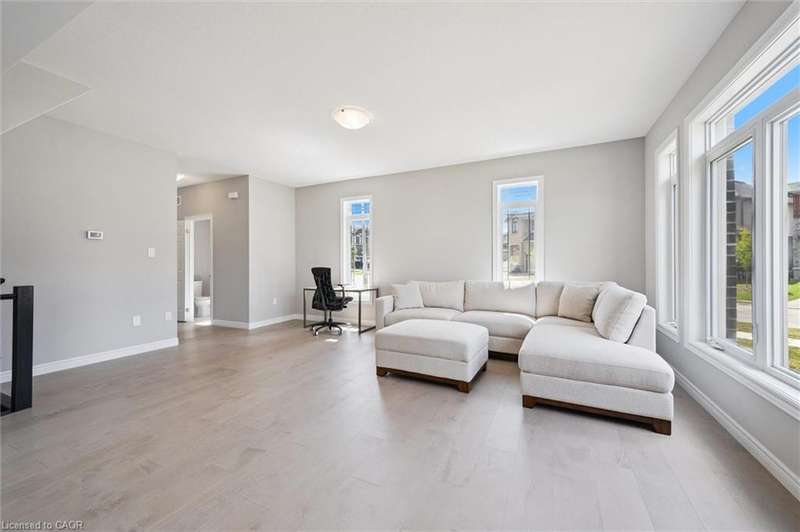 Discover this elegant 3-bedroom, 3-bathroom luxury home for rent in one of East Guelph’s newer and family-friendly neighbourhoods. This house boasts luxury 9 foot ceilings and an open-concept main floor featuring a grand kitchen with luxury appliances, gas range, quartz countertops, and a spacious island. The kitchen flows seamlessly into the bright living and dining areas with extra large windows and beautiful wide plank flooring. Upstairs, you’ll find a versatile second-floor family room, convenient upstairs laundry, and three large bedrooms—including a primary suite with walk-in closet and beautiful ensuite with soaker tup and large double vanity. The home also boasts a 2-car garage, and large unfinished basement with 9 foot ceilings with enough room for a rec room and lots of storage. Close to schools, parks, and many trails. Open to long or short term leases.