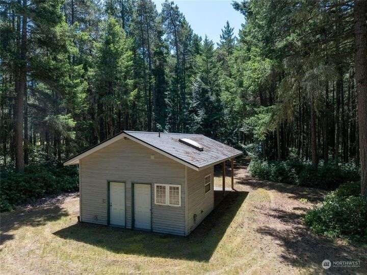 Bring your RV, tent or building plans to this lightly wooded 10 acres that has it all---good drilled well at 6gpm, installed 4 bedroom septic system and power plus a nearly 400 square foot carport which is backed by 2 three-quarter baths with skylights, mechanical/water room and laundry room. Everything you need to make you comfy while you enjoy your own personal campground or with a little work make it a cabin. In the spring you will find a couple of wild rhodies in the woods. Undeveloped beach access too. Close to all your favorite southend spots on Lopez.