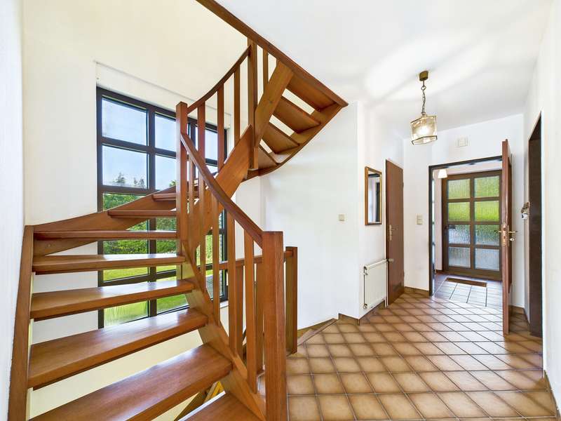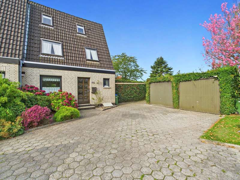 This charming terraced end-terrace house was built in 1984 in solid solid construction and presents itself in a very well-kept condition. The plot covers around 1,918 m² and is divided according to the Condominium Act, meaning that the property is allocated a share of around 334 m². The living space is approx. 112 m² and offers well-designed rooms on three levels. On the first floor, a practical vestibule with adjoining guest WC welcomes residents and guests. The bright hallway then opens up to a modern kitchen with a fitted kitchen and a spacious living and dining area. From here, you have direct access to the sunny terrace and the lovingly landscaped garden - ideal for relaxing or socializing outdoors. The upper floor houses three well-designed rooms - a master bedroom, a children's room and a further room that can be used flexibly as a second children's room or office. The large daylight bathroom is equipped with a shower, bathtub, double washbasin and WC. There are two additional rooms in the basement that can be used as utility, storage or hobby rooms. A gas condensing boiler, which was replaced in 2010, provides efficient heating and hot water. Features include plastic windows with double glazing, external roller shutters and a fully fenced plot that offers privacy and security. A garage rounds off this attractive offer. This end terraced house combines comfortable living with a practical room layout and a well-kept environment - perfect for families or couples who value a harmonious home.