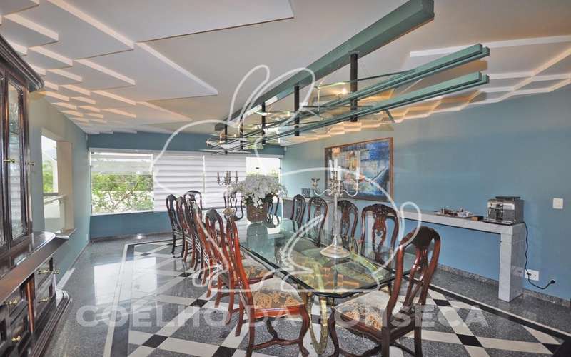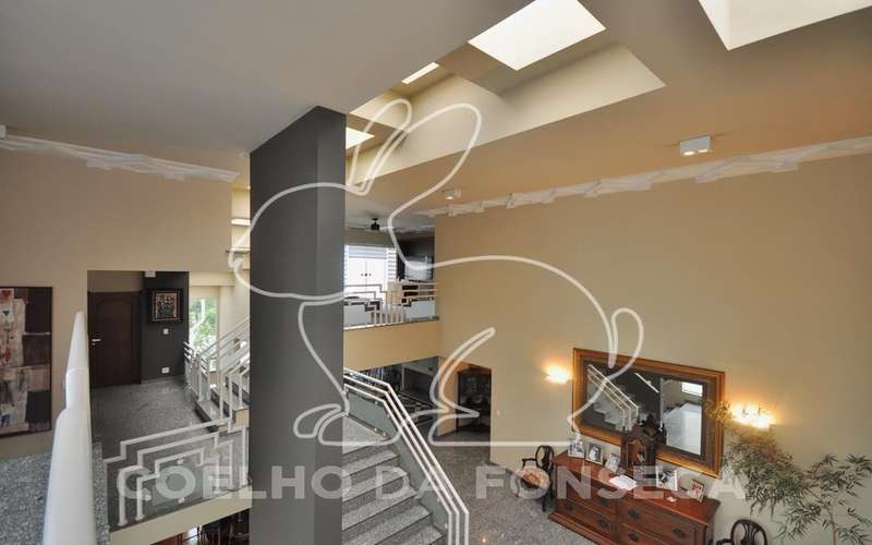 Excelente casa, acabamento nobre, ambientes amplos, pé direito duplo, iluminação natural, ponto para elevador, 5 dormitórios, varanda, barzinho, adega, home theater equipada com cinema, sala de jogos de 8/6m², integrado a academia, lazer gourmet, geladeira, forno para pizza, barzinho, horta, fogão, churrasqueira, com piscina reformada, armários em ipê preto, acabamento em granito.