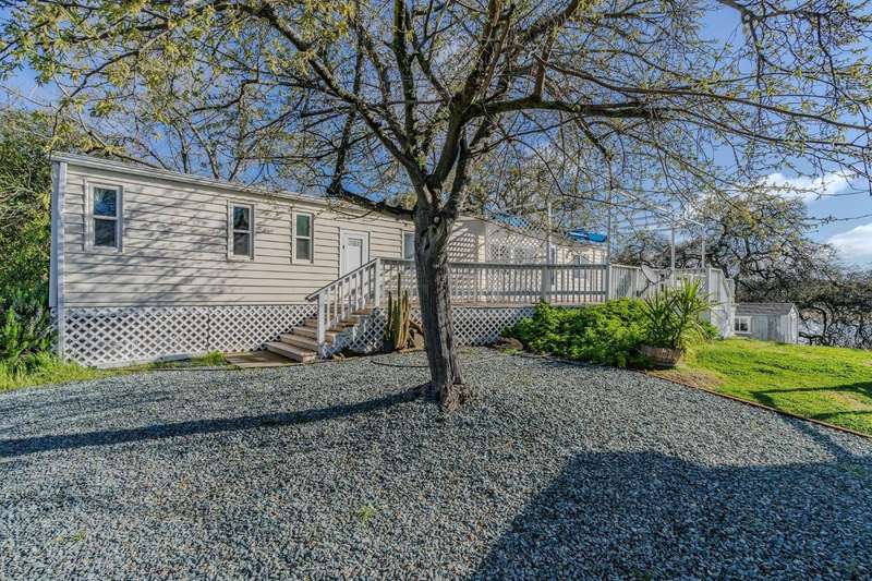 Lake life at its finest! This charming home is perfectly positioned in one of the most desirable spots in the North Shore Lake Camanche family park, offering serene views and just a short walk to the water right from your own yard. Located on a quiet cul-de-sac, this home has an abundance of outdoor space including a spacious deck, beautiful yard, multiple storage areas, and a dedicated workshop area downstairsideal for hobbies, projects, or extra storage. A shed is also included, giving you plenty of room for tools, toys, or seasonal gear. Inside, the layout is thoughtfully designed for comfort and simplicity, making it a perfect full-time residence or weekend retreat for a couple or small family. Enjoy tasteful updates throughout, including upgraded kitchen cabinetry, an electric range, built-in microwave, and picturesque views from many windows. Enjoy peaceful surroundings and easy access to all that Lake Camanche has to offer. Monthly space rent is $705 and includes water, sewer, garbage, and full lake access an exceptional value for this unbeatable location.Don't miss this rare opportunity to live lakeside in a quiet, nature-filled community!