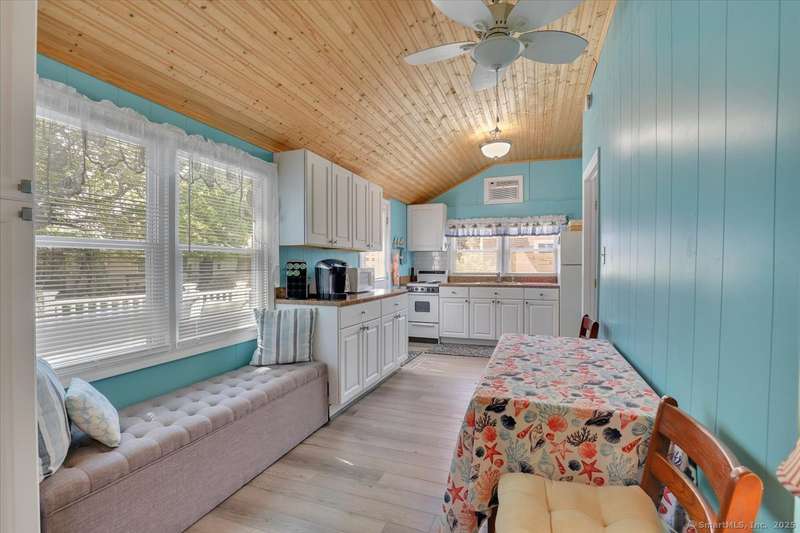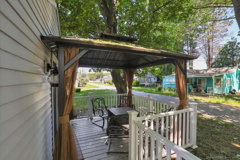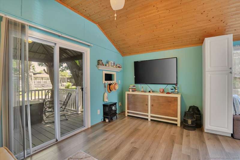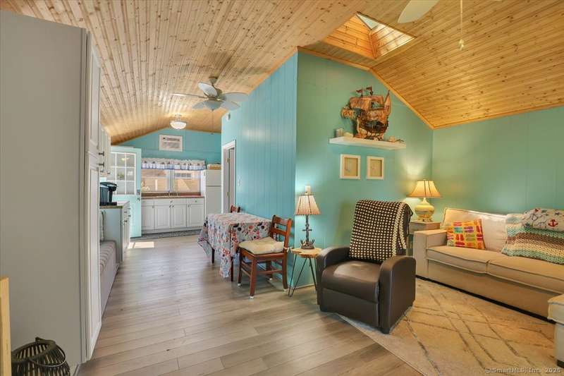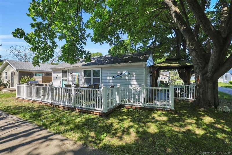 If you're dreaming of summers by the shoreline, this charming cottage in Dud's Village, Madison, offers the perfect seasonal escape. Less than a mile from Hammonasset Beach State Park-Connecticut's largest shoreline park-this move-in-ready cottage offers easy access to two miles of sandy beaches, scenic walking and biking paths, and endless outdoor activities. A private path from the village leads directly to the beach. Dud's Village is a seasonal community of well-kept cottages open from April 1 to October 31, ideal for those seeking a cozy, low-maintenance getaway. The village's friendly, close-knit atmosphere adds to its charm, all just minutes from downtown Madison's shops, dining, and attractions. The cottage comes fully furnished, including a sleeper sofa that accommodates two, and is equipped with a washer and dryer for added convenience. It also features a remodeled bathroom for a fresh, modern feel. Outdoors, enjoy a gas fireplace, grill, two patio sets, and a spacious wrap-
