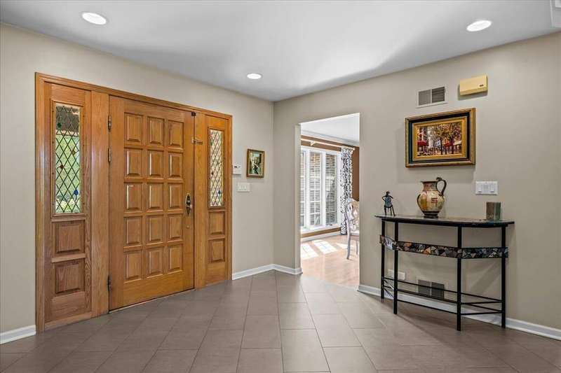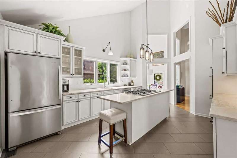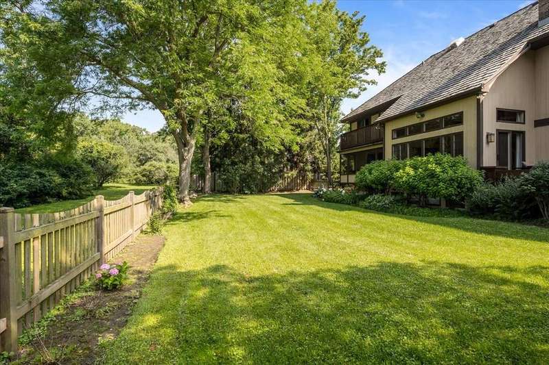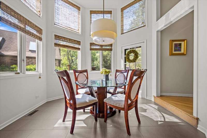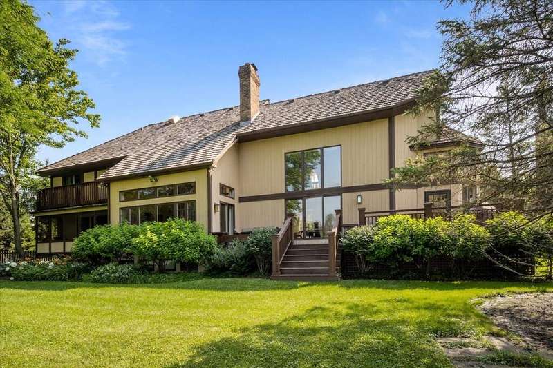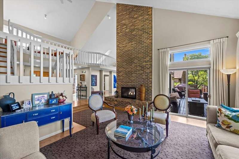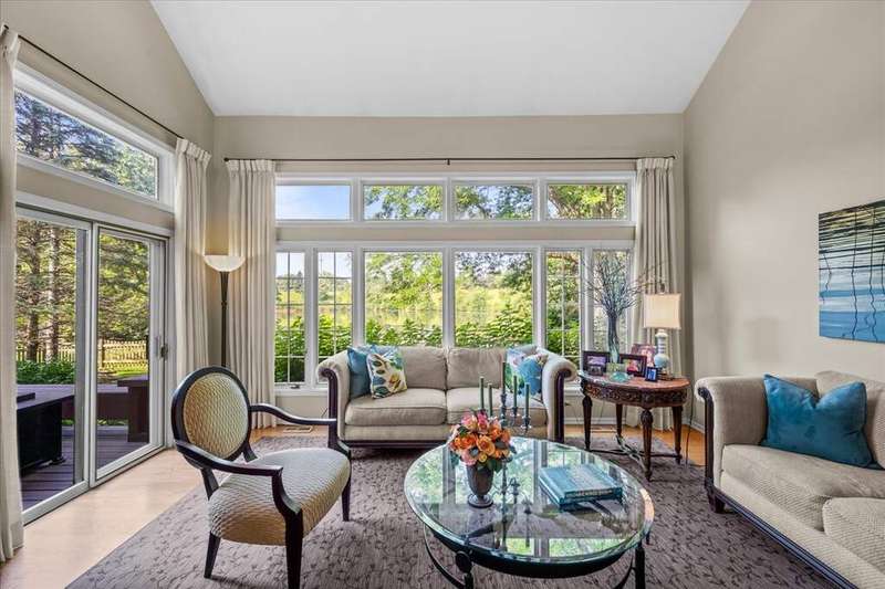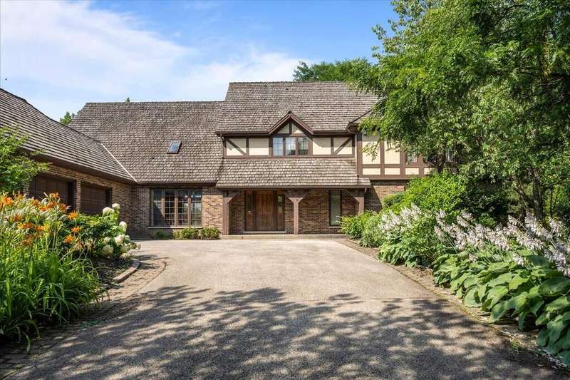 Located in the highly desirable Ponds subdivision, this premier property offers spectacular, unobstructed water views. This spacious 3,734 SF Tudor-style home features an open floor plan with vaulted ceilings, a see-thru fireplace connecting the family and living rooms, and a formal dining room off the entry. The first-floor primary suite includes a screened porch and a luxurious private bath. The stunning gourmet kitchen, remodeled in 2017, showcases quartzite countertops, a unique octagonal breakfast room, center island, stainless steel appliances, and a walk-in pantry. A mudroom connects to the attached 3-car garage. Upstairs, you'll find three additional bedrooms, 1.5 baths, and a versatile loft space with new neutral carpeting (2025). The English basement offers a spacious recreation room and a full bath. Enjoy outdoor living on the large deck overlooking a fully fenced, .38-acre backyard-featuring what may be the best pond views in the subdivision. The Ponds community includes three stocked ponds perfect for fishing, scenic walking paths, and direct access to Waveland Park. Conveniently located in central Lake Forest near schools, shopping, and transportation, this is a truly special home.