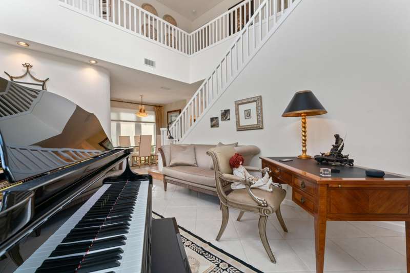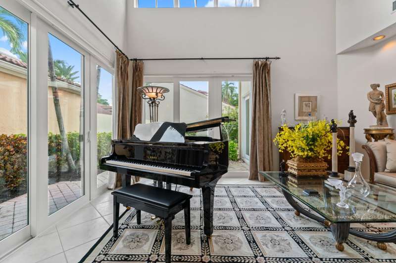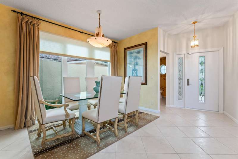 Immaculate 3BR/2.5BA home in Villa d Este at PGA National. Features include a gourmet island kitchen, tile & wood floors, 2-car garage, cement S-tile roof (2016), and Max Guard impact windows/doors. Set on a cul-de-sac within a decorative piazza, with cobblestone streets and walking paths. Mediterranean charm meets modern comfort in a sought-after community.