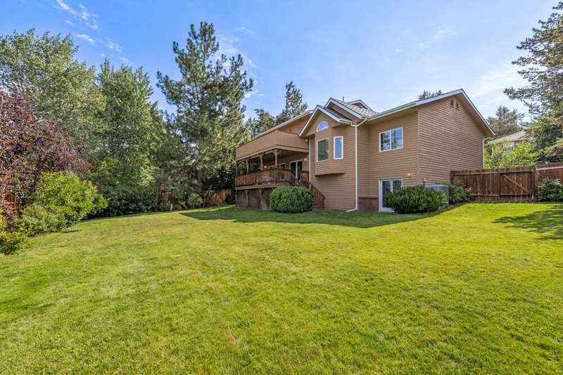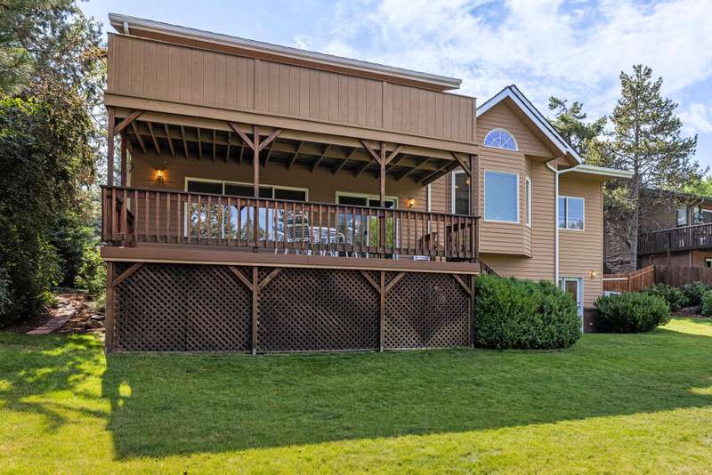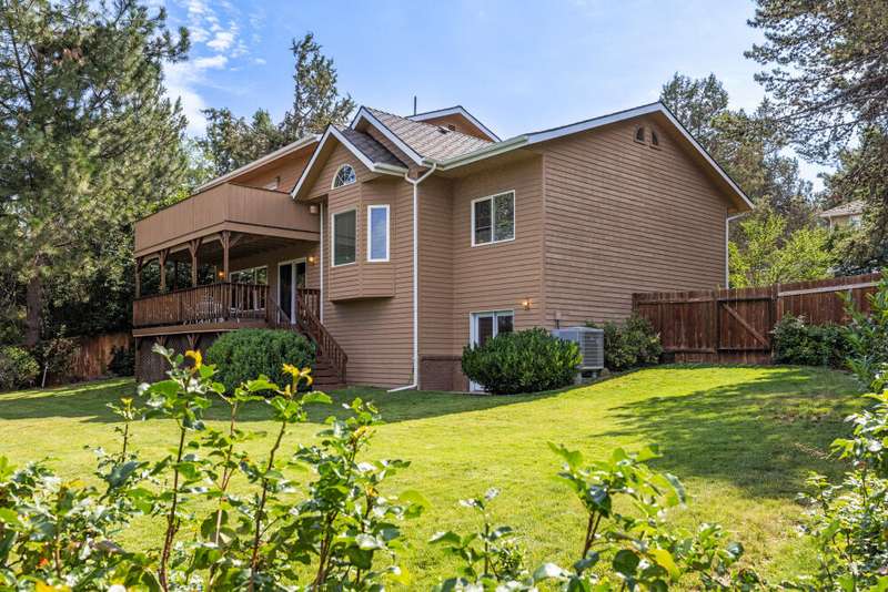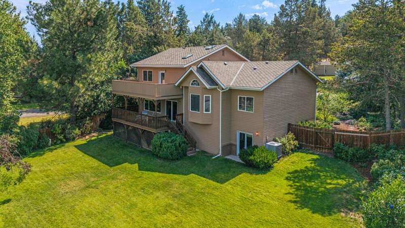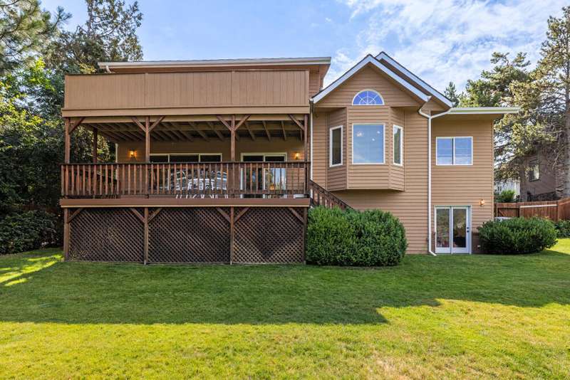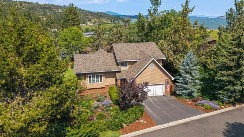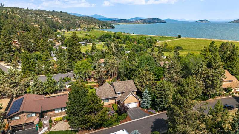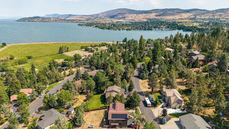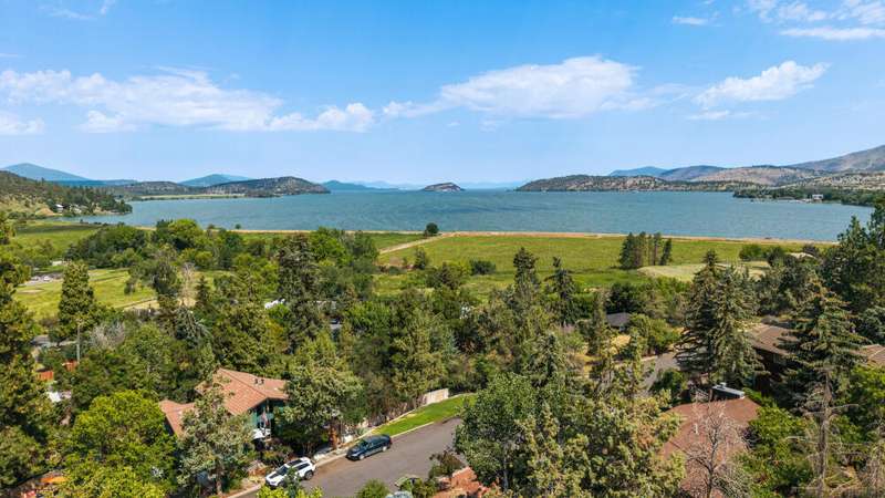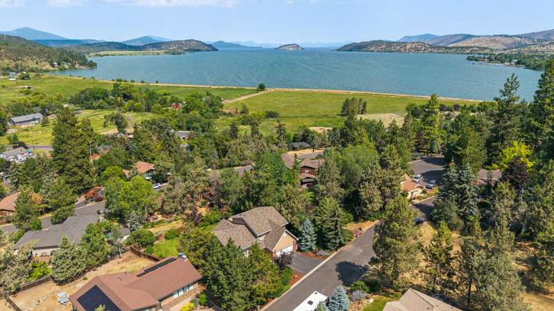 Welcome to this quality-built Super Good Sense Home in the desirable Lynnewood neighborhood, offering views of Upper Klamath Lake. Thoughtfully designed with 2x6 construction, solid-core interior doors, and timeless craftsmanship throughout. Enjoy formal living and dining areas, a cozy family room plus living room, beautiful hardwood floors, and a custom cherry hardwood front door. The K-12 school bus stops is at the neighborhood entryway - easy for kids & parents! The split-level layout features a kitchen with oak cabinets by Bertch Cabinets LLC, tile flooring, and solid-surface counters. Bedrooms have walk-in closets with lighting. The lower level is plumbed for a full bath—ideal for a separate living space. Relax on the maintenance-free deck wired for a hot tub and take in the lake views. Newer roof (3-4 years) and tankless water heater (2024). Spacious fenced backyard, 2-car garage with workspace, and plenty of storage. A rare find in a prime location!
