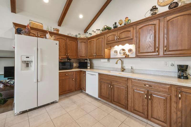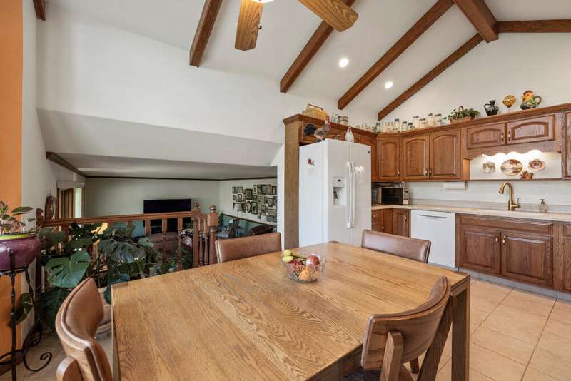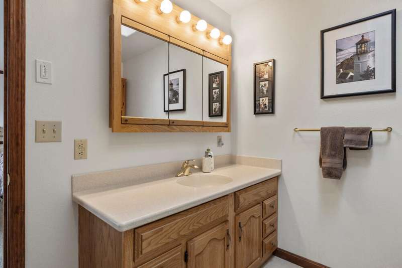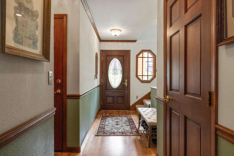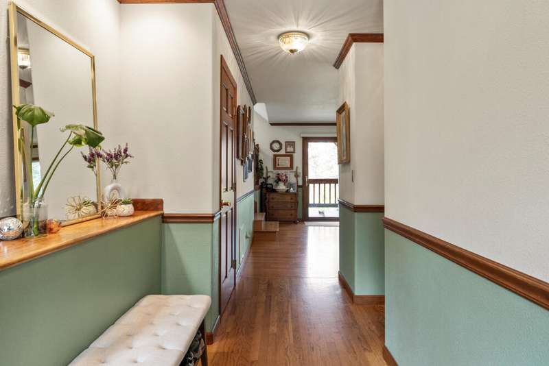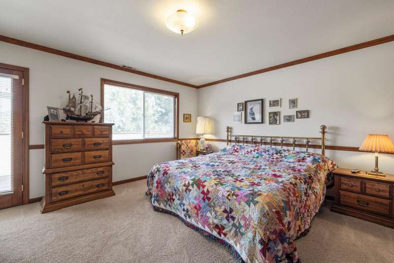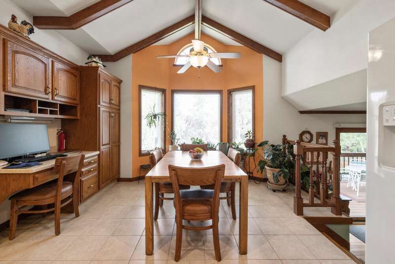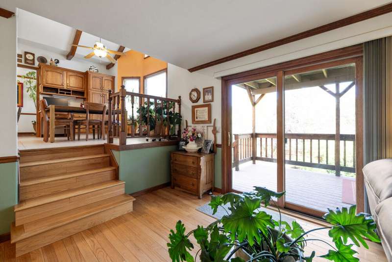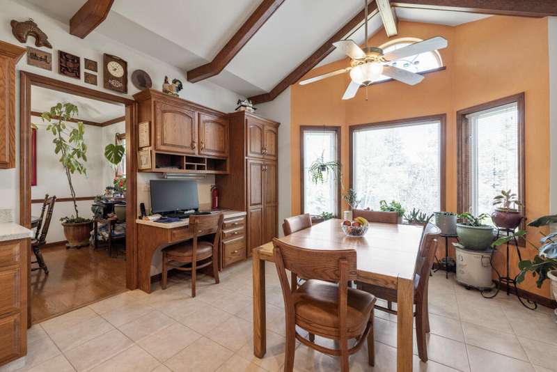 Welcome to this quality-built Super Good Sense Home in the desirable Lynnewood neighborhood, offering views of Upper Klamath Lake. Thoughtfully designed with 2x6 construction, solid-core interior doors, and timeless craftsmanship throughout. Enjoy formal living and dining areas, a cozy family room plus living room, beautiful hardwood floors, and a custom cherry hardwood front door. The K-12 school bus stops is at the neighborhood entryway - easy for kids & parents! The split-level layout features a kitchen with oak cabinets by Bertch Cabinets LLC, tile flooring, and solid-surface counters. Bedrooms have walk-in closets with lighting. The lower level is plumbed for a full bath—ideal for a separate living space. Relax on the maintenance-free deck wired for a hot tub and take in the lake views. Newer roof (3-4 years) and tankless water heater (2024). Spacious fenced backyard, 2-car garage with workspace, and plenty of storage. A rare find in a prime location!