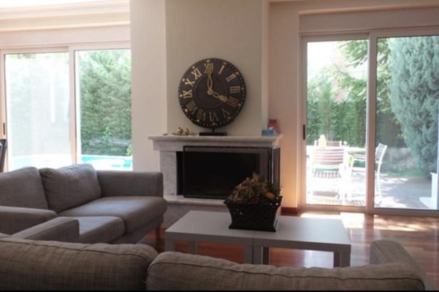 The residence features 4 bedrooms (including a spacious master suite) and 4 bathrooms, providing ample space for family living and guests. A stylish fireplace enhances the living area, while the private swimming pool creates the perfect setting for relaxation and entertainment.