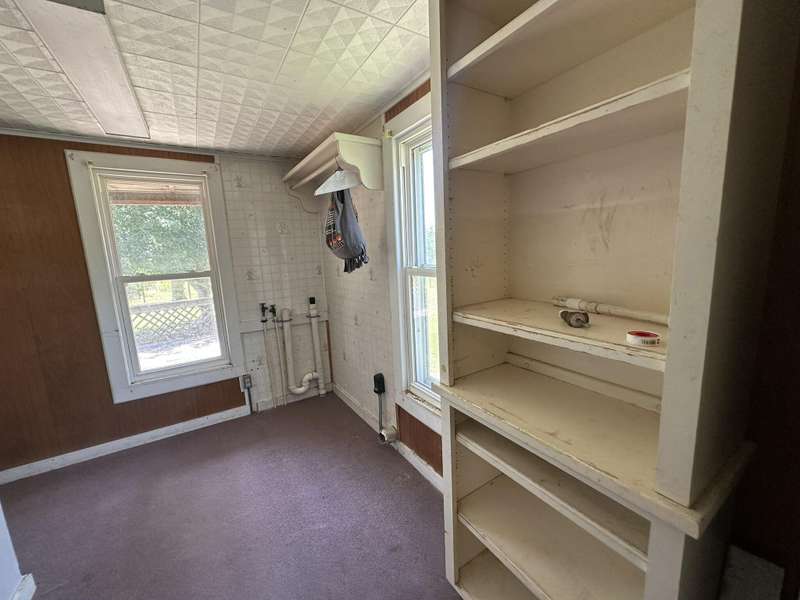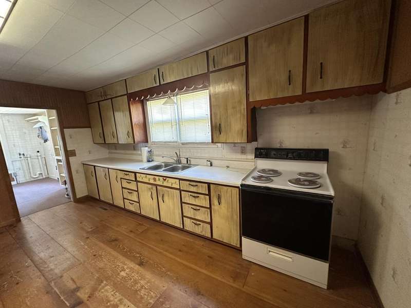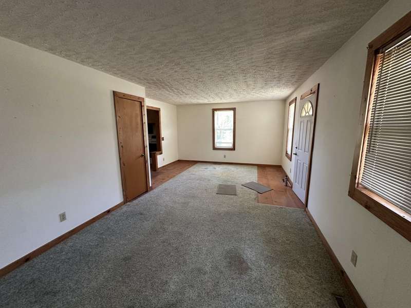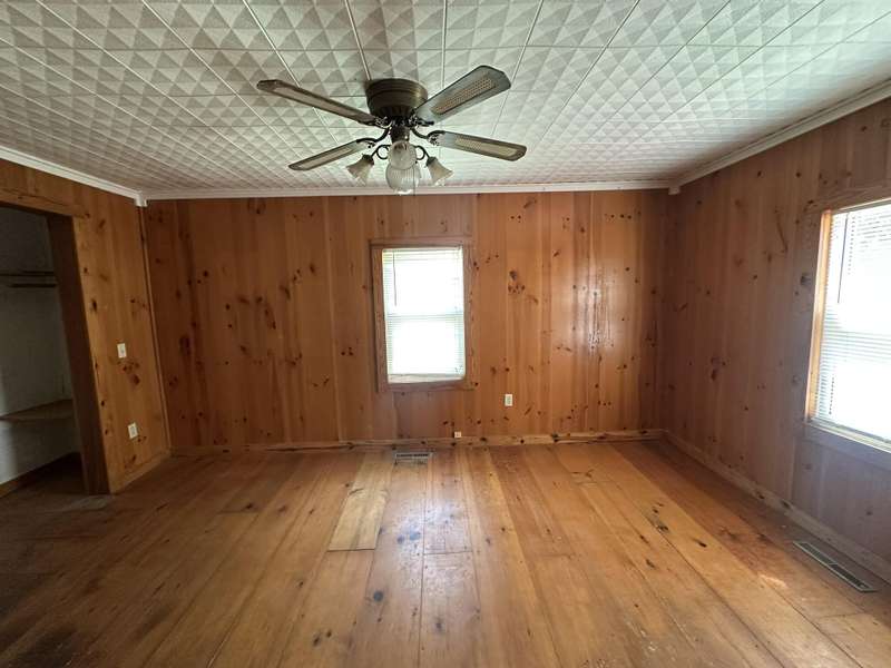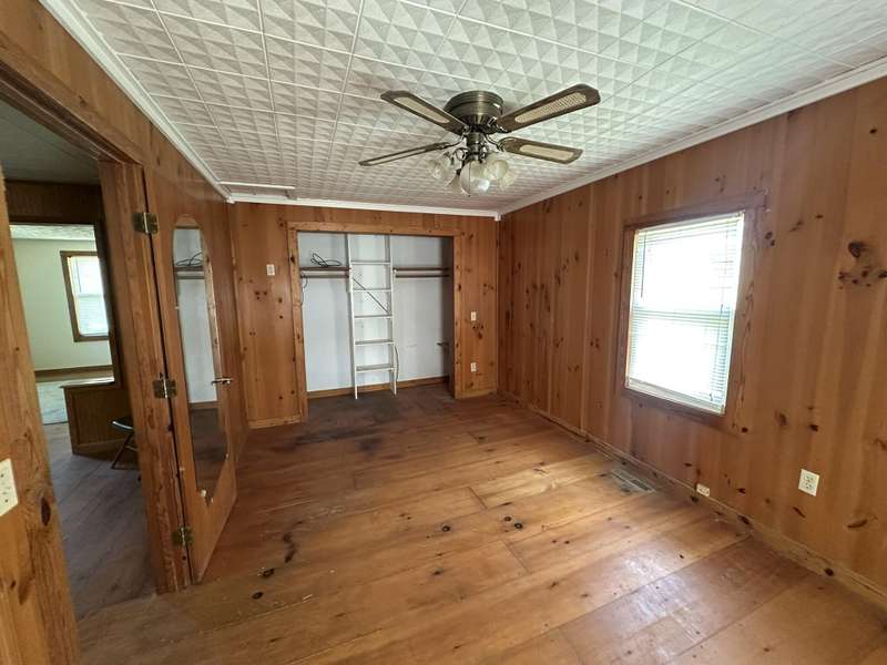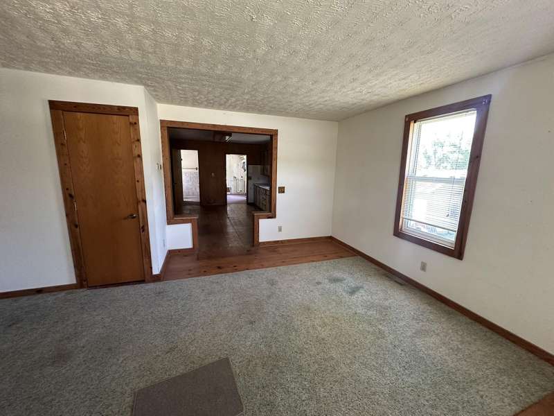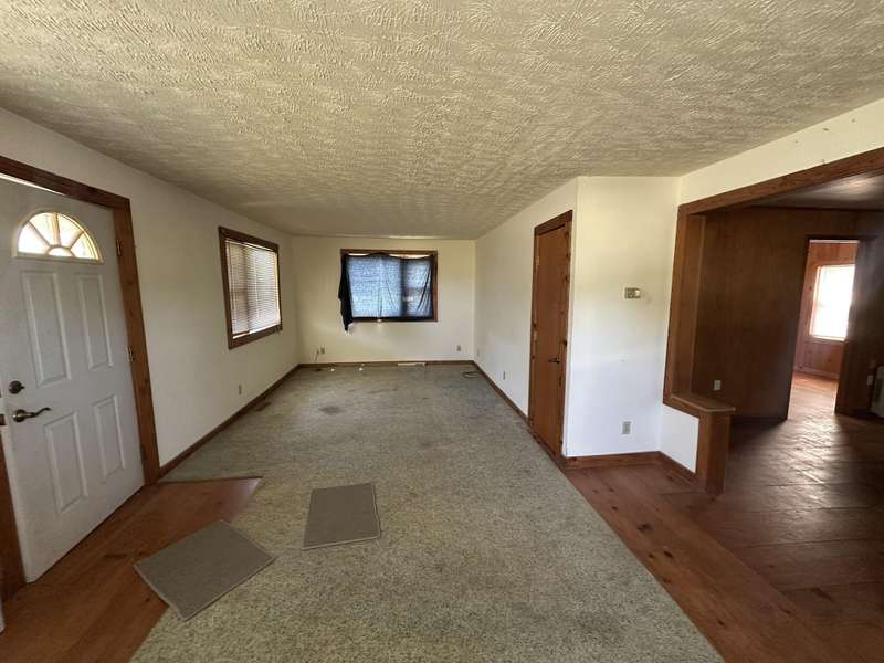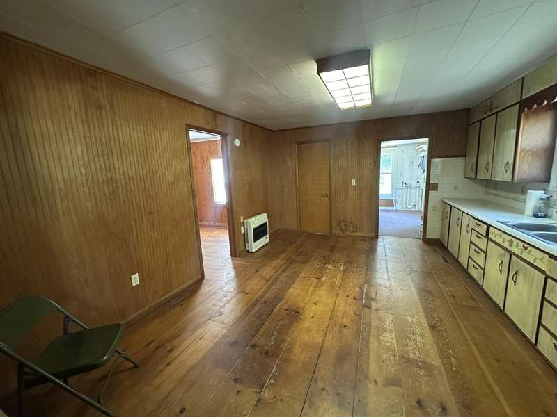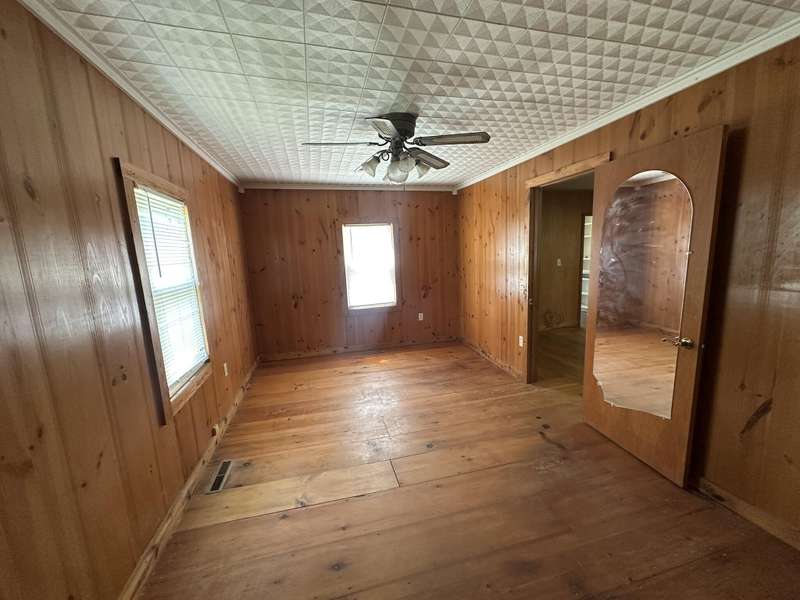 5 acres with trees and pasture. Plenty of room for whatever animals you like. Newer windows and roof. Originally a 2 bedroom home but one bedroom was converted into additional living room space. Could easily be made a 2 bedroom home again. This home is priced to sell so you can dress it up to your liking. A great opportunity and on a corner lot with a paved road.
