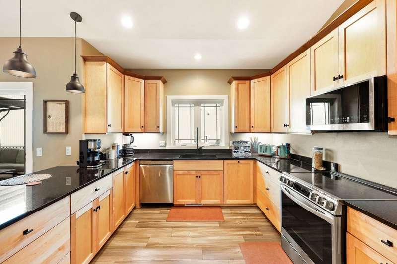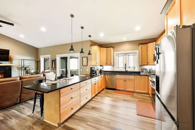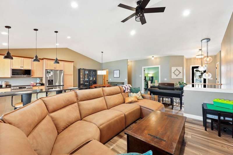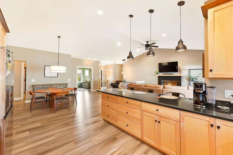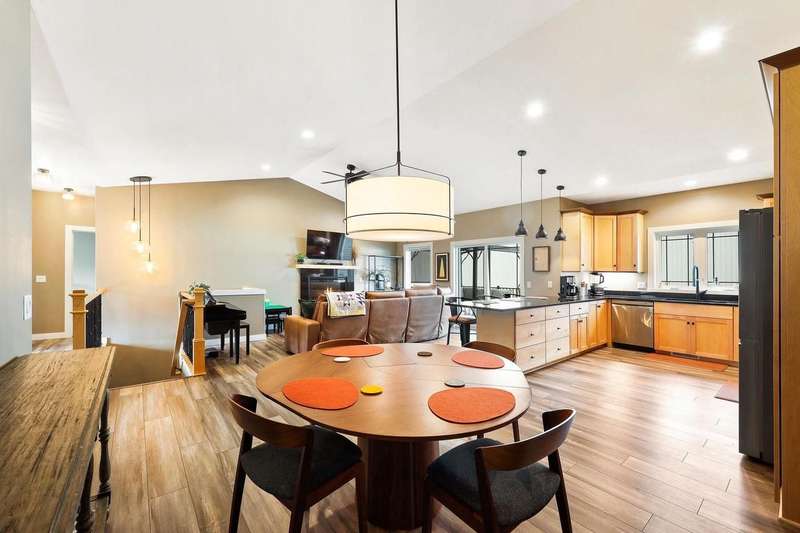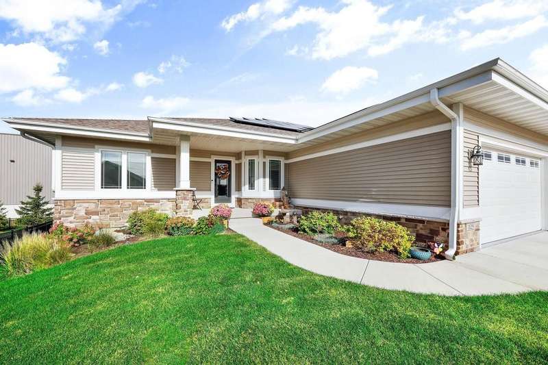 Like new with all the add-ons! This 2023 home offers modern living with 5 bedrooms and 3 full baths. The open main level includes a bright office off the entryway and a serene primary suite for a peaceful retreat. The fully finished walkout basement impresses with engineered hardwood floors, abundant natural light, a second full kitchen, theater room, two bedrooms, and flexible workout space. Enjoy a 3-car garage with epoxy floors and an owned, high-end solar system and battery backup storage for energy efficiency and savings. All electric appliances and an included electric vehicle charger complement the solar system. This beautiful home offers a unique blend of luxury, functionality, and sustainability in Waunakee's sought-after Arboretum Village.