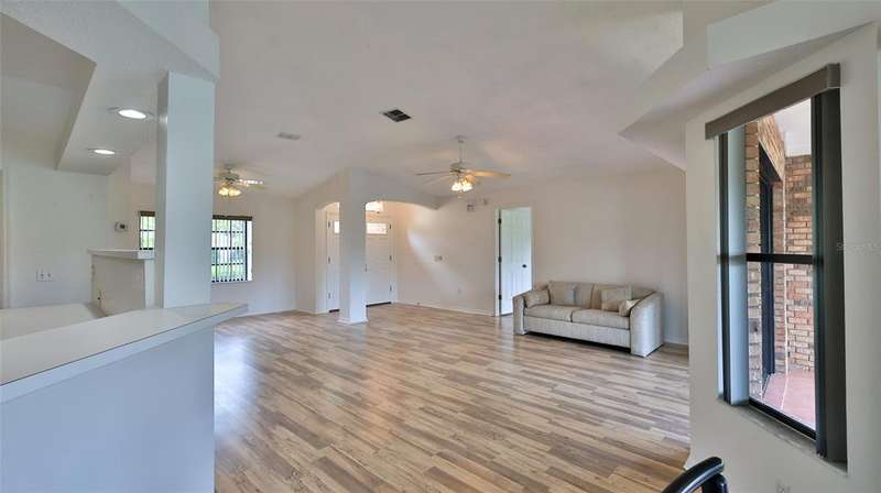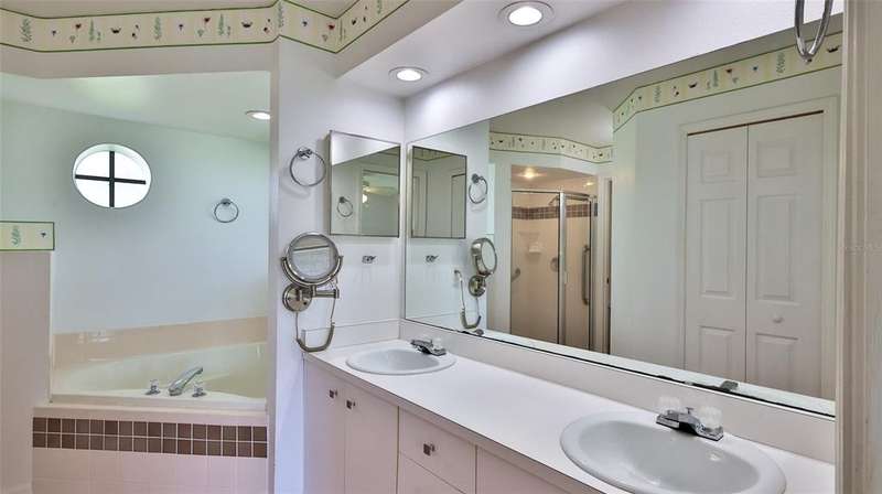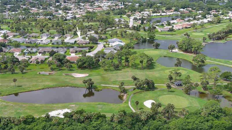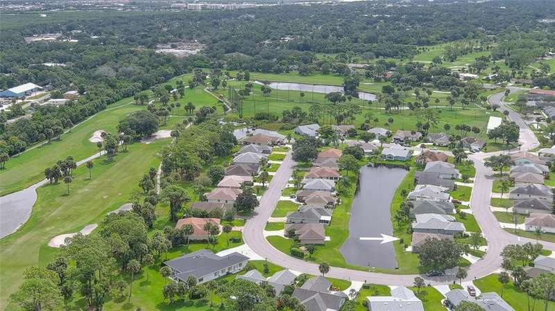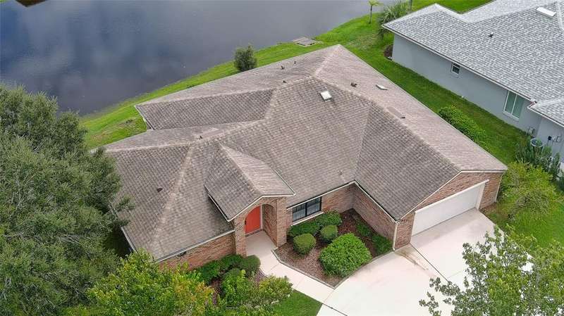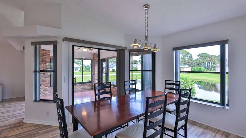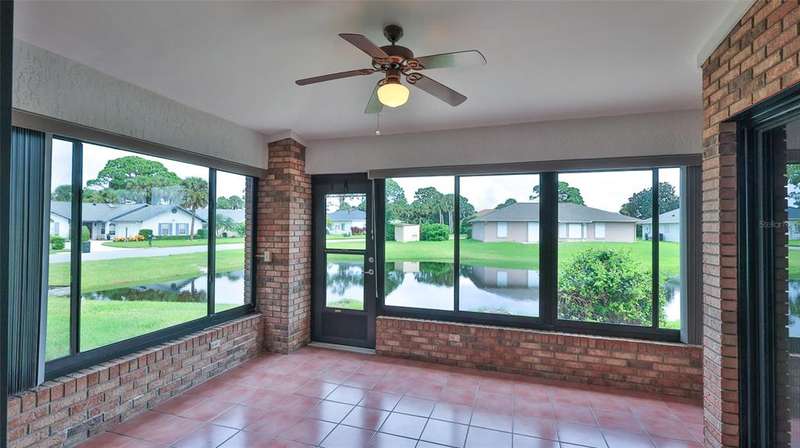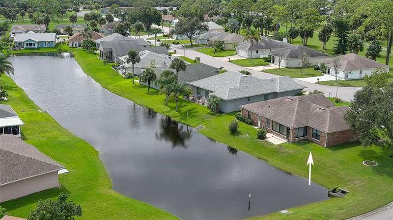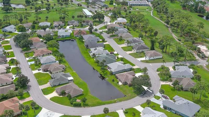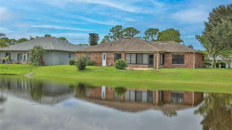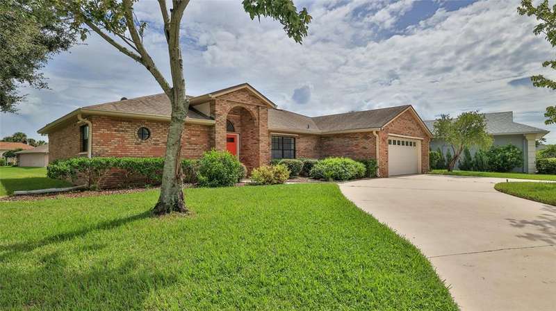 Outstanding, Real Brick over Concrete Block construction home on tranquil pond in quiet golf community awaits you! Split-Bedroom plan and Open Floor Plan with vaulted ceiling and separate Florida Room under the main roof of home. BRAND NEW Kitchen Appliances and 2022 A/C system. 2015 roof has plenty of life left . Spacious waterfront Breakfast Nook off of kitchen area, A/C laundry room, storm shutter system, double pane windows, attic fan, and the hall bath with access to rear yard are but a few of this home's offerings. Primary bedroom has walk-in closet and ensuite bath that features twin sinks, garden tub and separate shower. Nice high, corner lot features sweeping circular drive. Hurricane Ian did not impact this home, at all, not even water on the street. Nestled between 2 golf courses in theis golf-cart-friendly community, and a heated, community pool is available by optional membership and purchase of a pool certificate. Central location is close to everything - Historic Canal Street shopping, dining and art galleries, as well as eclectic Flagler Avenue and the beach are but a short drive away. Affordable HOA annual dues of $350. A great neighborhood to walk, jog or ride your bike, make it your home!