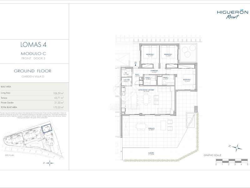 Lomas del Higueron 4 is a new residential complex located in the 5-star Higuerón Resort, the most exclusive Resort on the Costa del Sol, where you will find the 5-star Higuerón Hotel with its 10 restaurants, spa, sports centre, beach club and more. The complex is surrounded by nature and benefits from a swimming pool, gym, co-working spaces, a concierge service, 100,000 m² of gardens and green areas, a 24-hour security service and an exclusive tram service that will take you to the beach, the nearby shopping centre and Carvajal train station. This ground floor apartment has 3 bedrooms and 3 bathrooms and is in a block of three levels with sea views and plenty of privacy in each home. The penthouse has a pleasant airy living area and measures 170 m² plus private terrace space of 63 m² and a 31 m² garden where you can enjoy the wonderful local climate. Sustainability and innovation are two of the driving forces behind the design of these contemporary luxury homes, which also boast elegant modern interiors with the very finest finishes and fixtures, such as Silestone kitchen work surfaces, Teka sanitary ware and heated bathroom floors, just to name a few. Finally, each property comes with two parking spaces and a storage unit. Please contact us for further information.