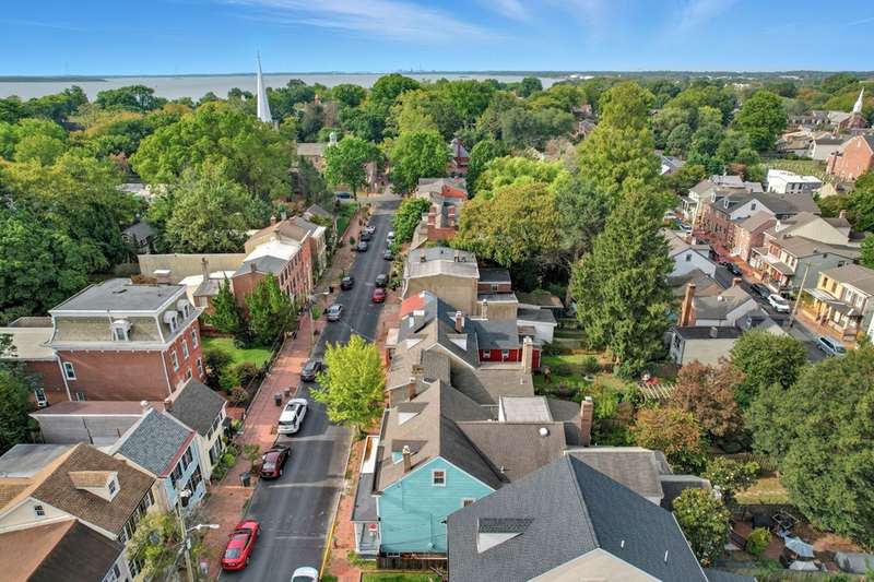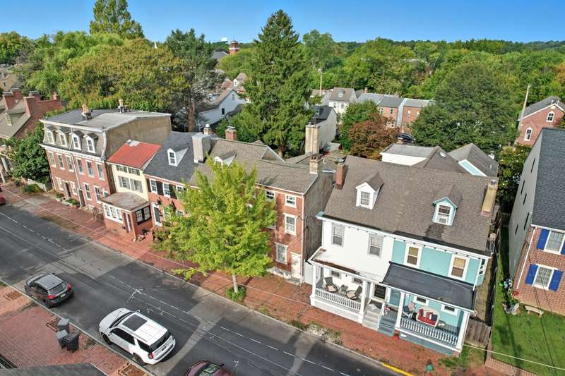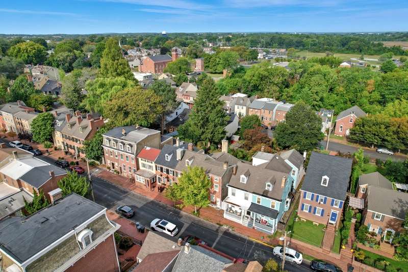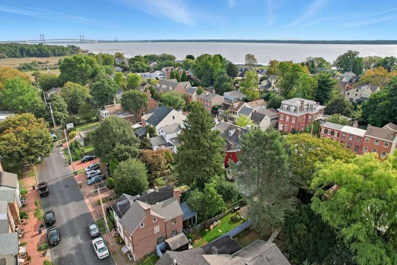 Welcome to this charming 3-story Colonial townhome nestled in the heart of the New Castle Historic District in New Castle, DE. This all-brick home boasts 3 bedrooms, 2.1 bathrooms, and a flexible floorplan that can accommodate either 2 bedrooms and a den or a full 3 bedroom layout. Step inside to discover exceptional hardwood floors throughout the home, creating a warm and inviting atmosphere. The main level features a cozy living room with a wood-burning fireplace, perfect for relaxing evenings. There is a spacious dining room for hosting dinners and parties. The spacious kitchen features a gas Jenn Air range and provides ample cabinet space for storage and leads to a large screened porch overlooking the landscaped rear yard, ideal for enjoying your morning coffee or hosting outdoor gatherings. There is also a full bath on the mail level. Upstairs, you'll find the primary bedroom with a convenient half bath, along with another full bathroom for added convenience. The second bedroom or den also includes a fireplace, adding character and charm to the space. The third bedroom is all by itself on the 3rd level. The unfinished basement offers storage potential and features an outside entrance for easy access. Best of all is the 2-car off-street parking pad. You never have to worry about finding a parking spot! The property also includes a shed and an extra deep yard with a brick patio for added privacy. Situated in a desirable location, this townhome allows for a short walk to the Delaware River, Battery Park, restaurants, shopping, and the library. With central A/C and forced air heating, this home ensures year-round comfort. Don't miss the opportunity to make this historic gem your own!