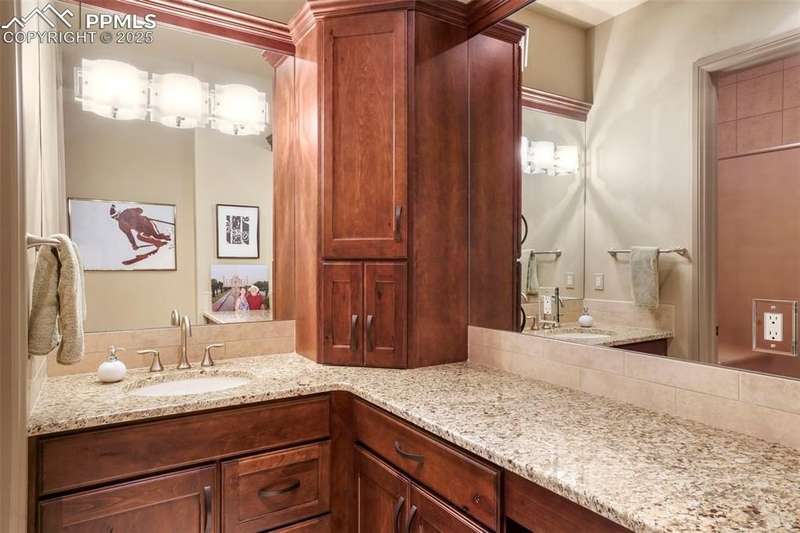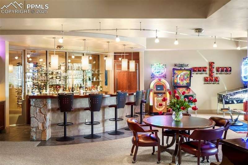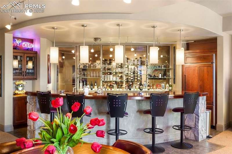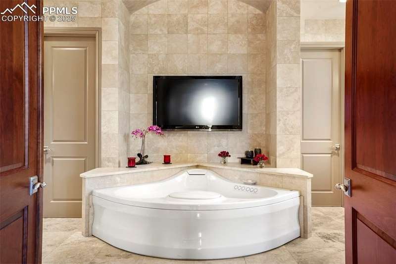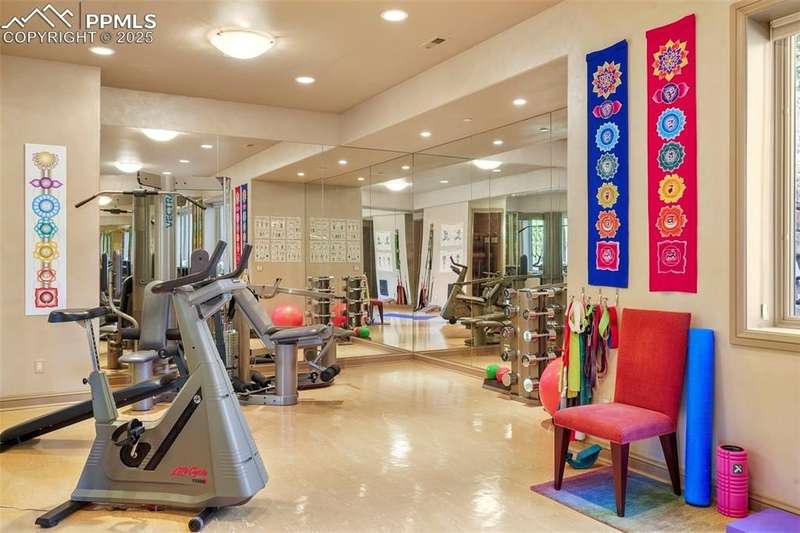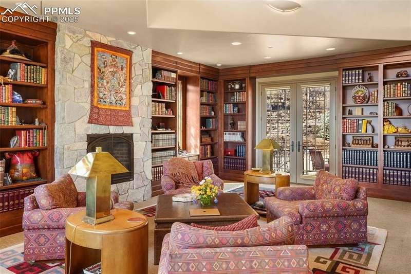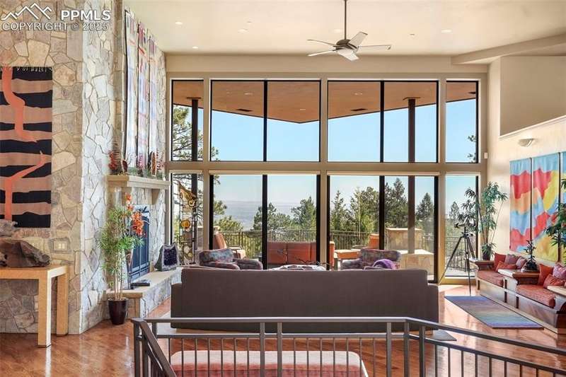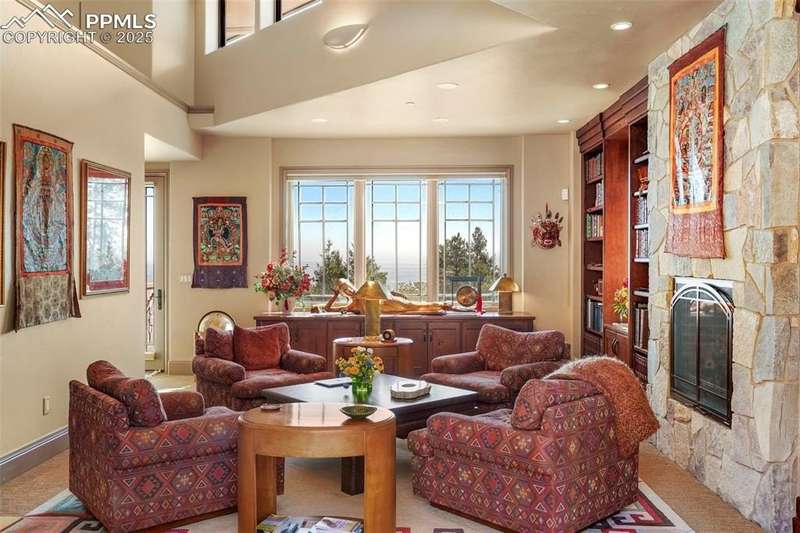 Tucked away in a serene cul-de-sac, this exceptional property offers complete privacy, tranquility, and breathtaking, unobstructed views. A magnificent blend of contemporary sophistication and timeless charm, this extraordinary residence crowns the top of Stratton Forest with dramatic style and unparalleled amenities. Expansive floor-to-ceiling windows frame sweeping panoramic vistas and flood the interior with natural light. The heart of the home is a spectacular gourmet kitchen—designed to impress—with an eye-catching stone accent wall, generous granite countertops, Sub-Zero refrigerator, dual ovens, dual dishwashers, and more. Whether you're entertaining a crowd or enjoying an intimate dinner, this space delivers. The luxurious main-level Primary Suite is a private sanctuary featuring a cozy fireplace, intimate sitting area, spa-inspired bath, built-in coffee bar, and a secluded private deck. Additional main-level highlights include a dramatic great room with an oversized fireplace and window wall, a large, covered deck with built-in grill and fireplace, and awe-inspiring views at every turn. One main-level bedroom suite has been thoughtfully converted into an equipment room, while the lower-level suite has been transformed into a fully outfitted gym. The expansive lower-level recreation room offers multiple living areas, including game and pool table spaces, theater, a striking full bar with a glass wall showcasing a stunning wine cellar, soaring ceilings, and walk-out access to a covered patio. Completing the lower level are two elegant guest suites—one featuring a fireplace, custom built-ins, coffee bar, and access to a private patio. Additional amenities include an elevator, private patio with hot tub, and a layout designed for comfort, style, and entertaining.