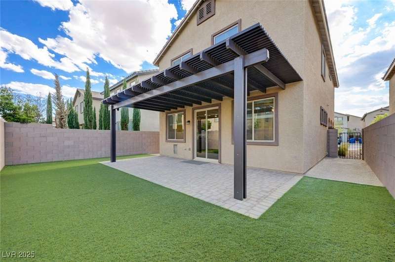Step into this stunning 3-bedroom, 2.5-bath home that blends style, comfort, and functionality! The open floor plan is perfect for entertaining. The modern kitchen showcases custom cabinets, a large pantry, and stainless steel appliances, flowing seamlessly into the main living area with sleek tile flooring. Upstairs, enjoy the convenience of a laundry room, cozy carpet underfoot, and a unique Jack & Jill bathroom connecting bedrooms 2 and 3. The spacious primary suite is a private getaway, featuring a large walk-in closet and spa-like bath with separate shower. Step outside into the beautifully landscaped backyard offers a true outdoor retreat with pavers, lush turf, and a charming lattice patio cover. Welcome Home!