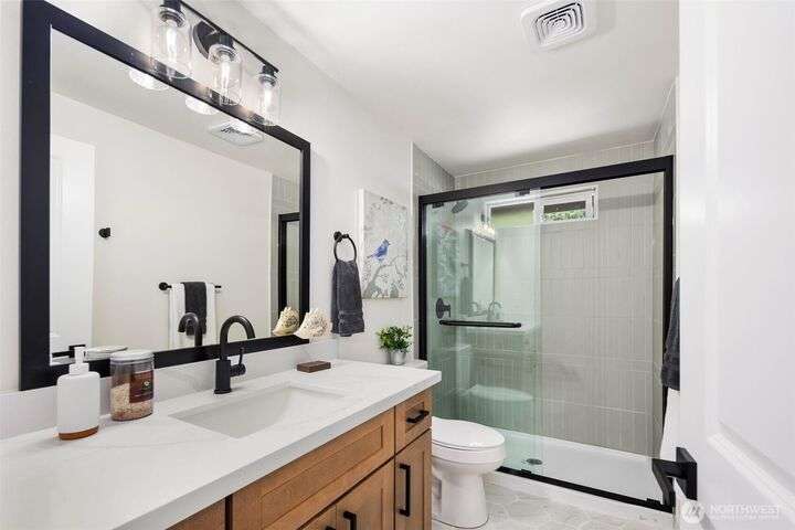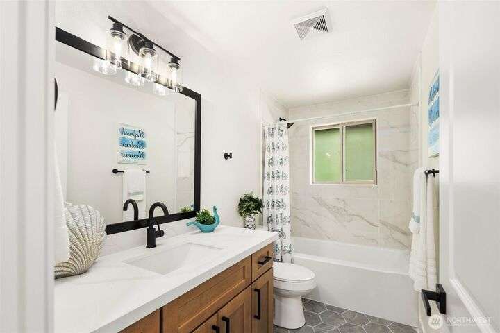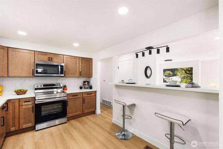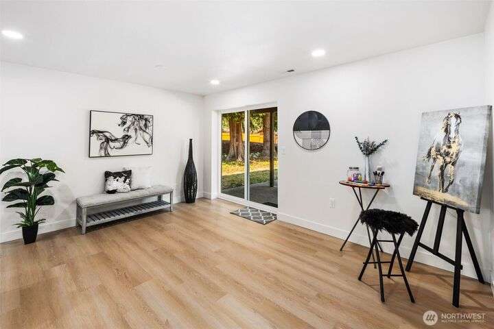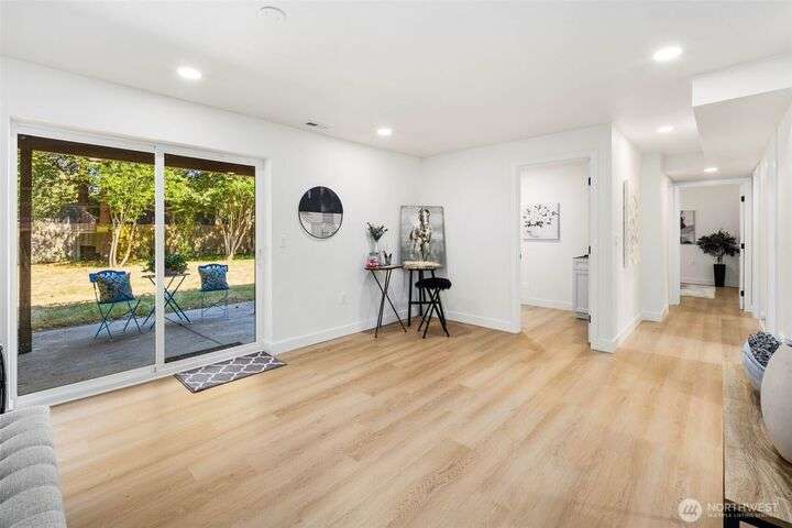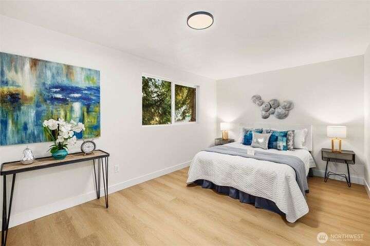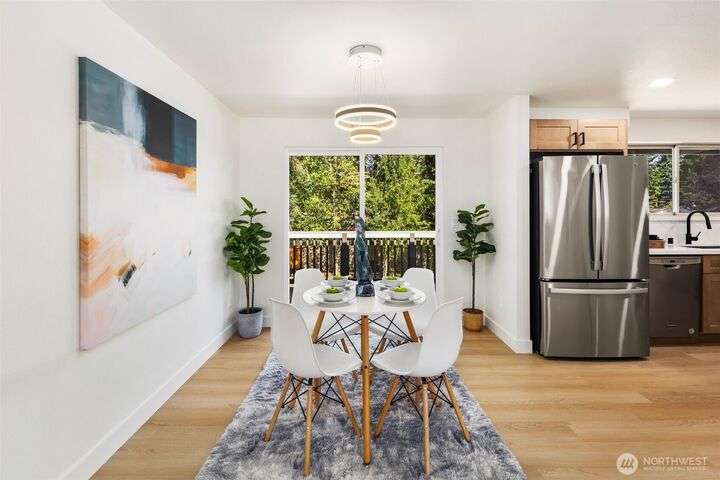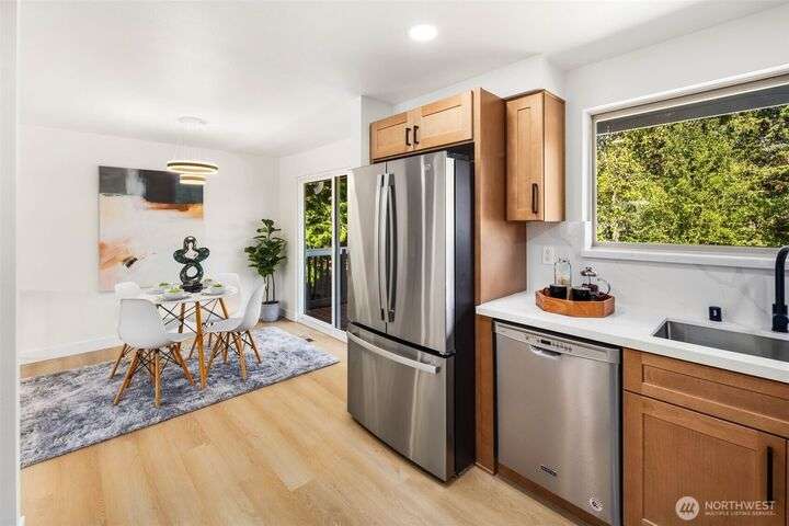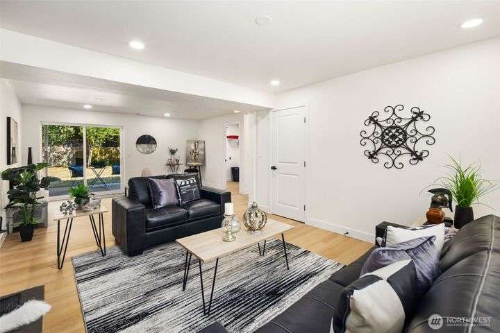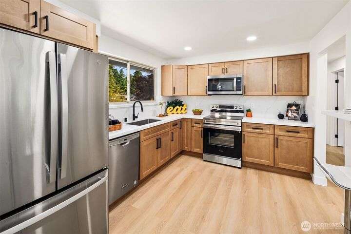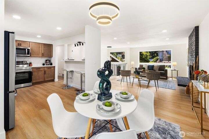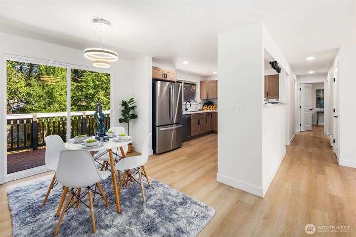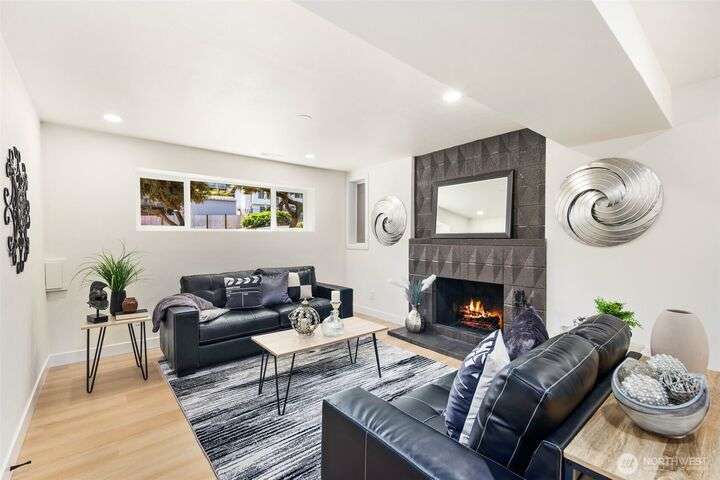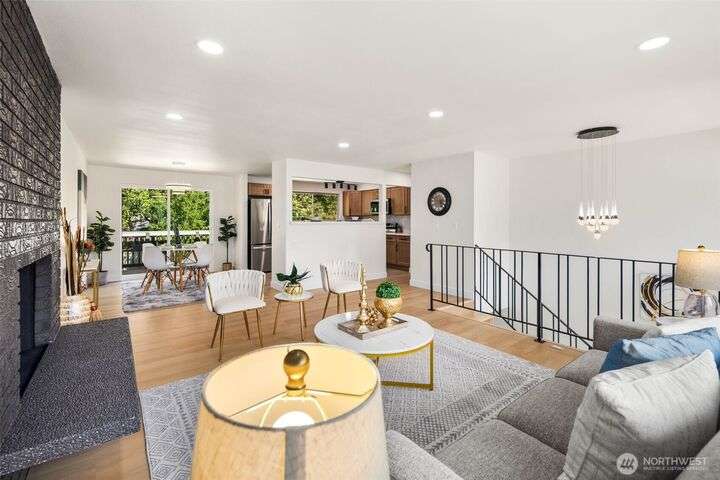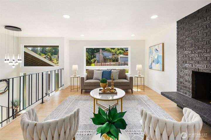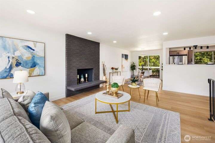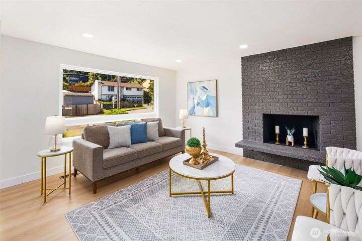 Fully remodeled 4-bedroom, 3-bath home on a desirable corner lot. This spacious residence features a modern design throughout with stylish tile finishes and thoughtful updates. The Primary offers a private bath and huge walk-in closet for your comfort. Enjoy both a cozy family room and an inviting living room, each with its own fireplace, perfect for gatherings or quiet nights in. Step outside to the brand-new deck. Gourmet kitchen with high end appliances and lots of counter space. With its open, welcoming layout and move-in ready condition, this home combines comfort, style, and functionality—ready to make it your own! Matterport 3-D tour available
