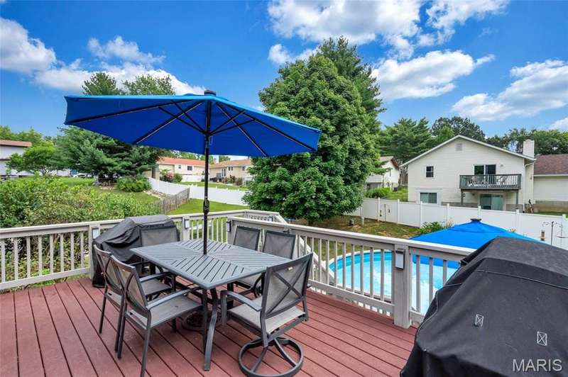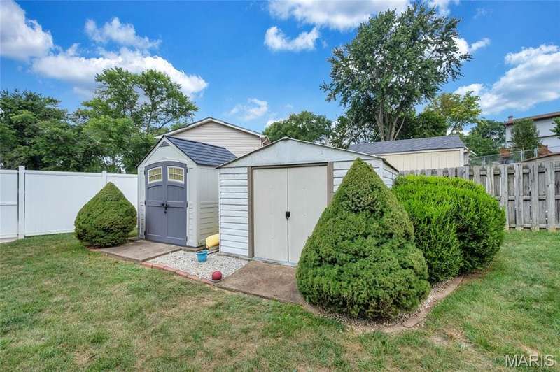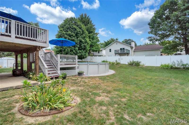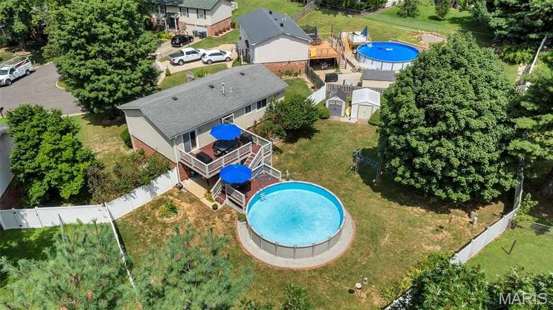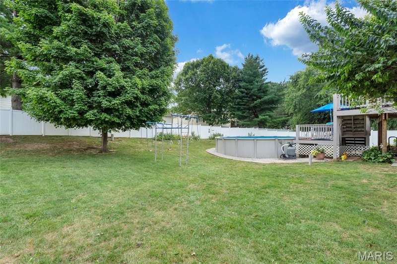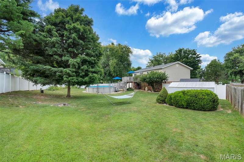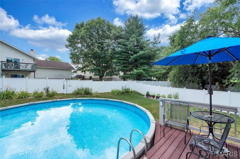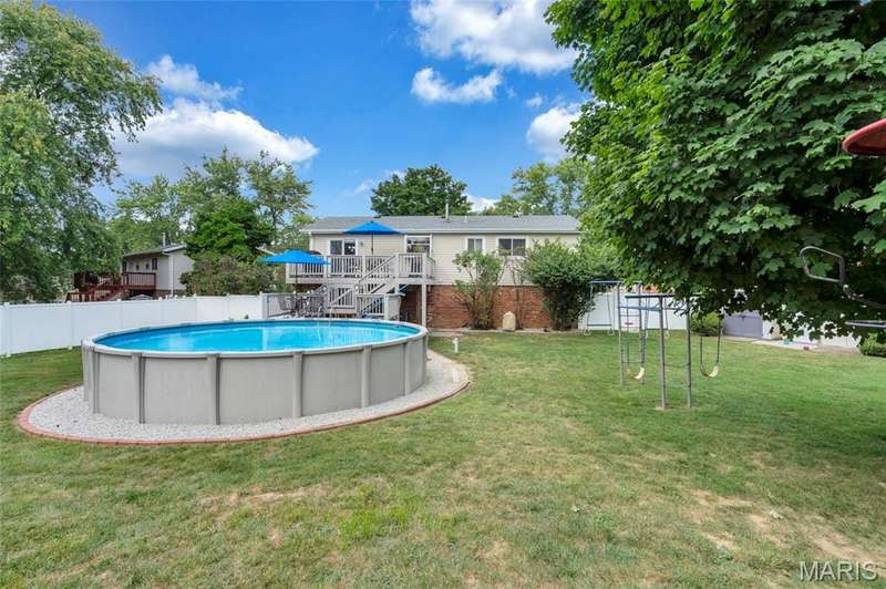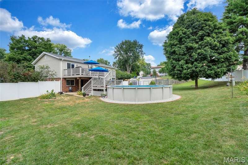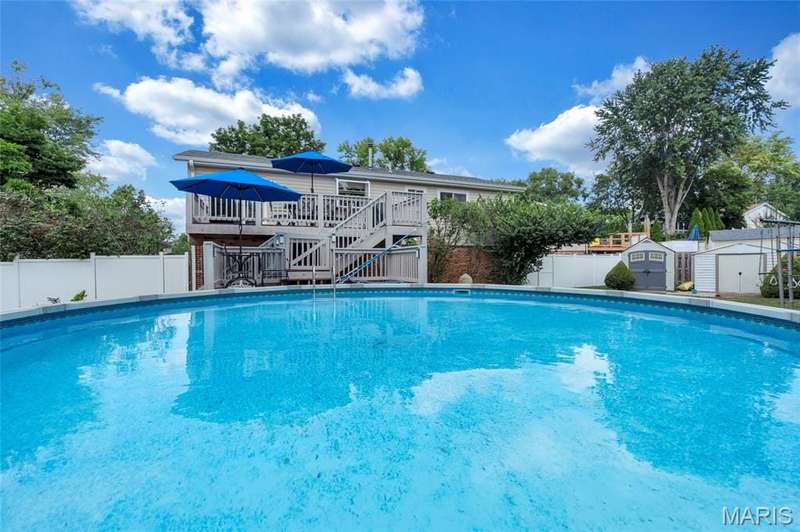 Check out this spacious and move-in ready split-level home with 3 bedrooms and 3 full bathrooms in St. Peters! With generous living areas and a flexible layout, this home is perfect for growing families or those who love to host. The kitchen includes 42 cabinets, tiled backsplash and breakfast bar- perfect for casual meals. Interior features fresh paint in main living area, reverse osmosis system and water softener. Enjoy summer fun in the large backyard featuring a pool, composite decking, and patio perfect for entertaining. Two sheds provide ample storage, and there's still plenty of green space to enjoy. HSA Home Warranty Included!