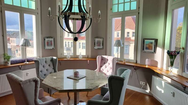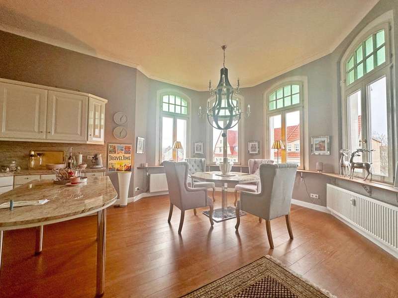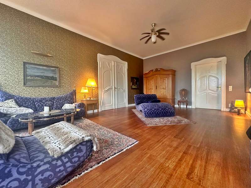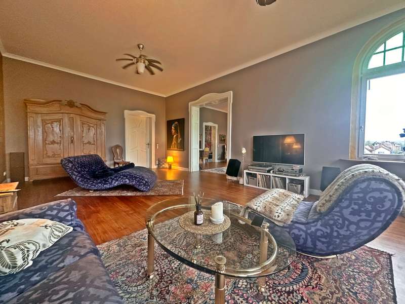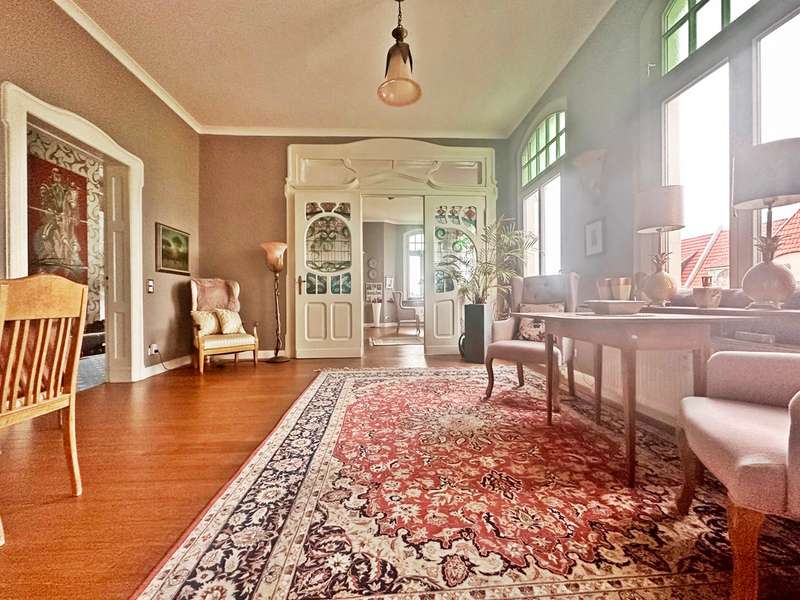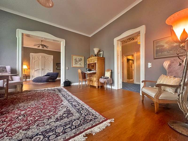 This special and spacious unit with an area of approx. 249 m² is located in a villa built in 1912 in Mühlhausen. The property was modernized to a high standard in 2019 and the former office space was transformed into a unique ambience. The unit is part-owned and is used commercially in combination with residential use. The classic character of the old building was emphasized by special, high-quality materials and selected details. The property has a total of 7 rooms and 2 bathrooms, offering the residents sufficient space and comfort. The generous room layout allows for versatile use of the rooms and impresses with its exclusive furnishings. Particularly noteworthy are the historic elements, such as time-honored doors or colorful ornamental glass corners, which give the property its unique charm. The rooms also impress with a mix of different floor coverings such as tiles, carpeting and vinyl parquet flooring, creating a stylish ambience. Overall, this property presents itself as a unique opportunity to work and live in style and comfort. The special furnishings and the classic charm of the old building offer an exclusive ambience that is second to none. This property is ideal for discerning buyers who value quality and elegance. A total of 5 parking spaces are available, which is a great advantage, especially in an urban environment. Arrange a viewing today and let this unique offer convince you. Please use the contact form to send us a written inquiry.