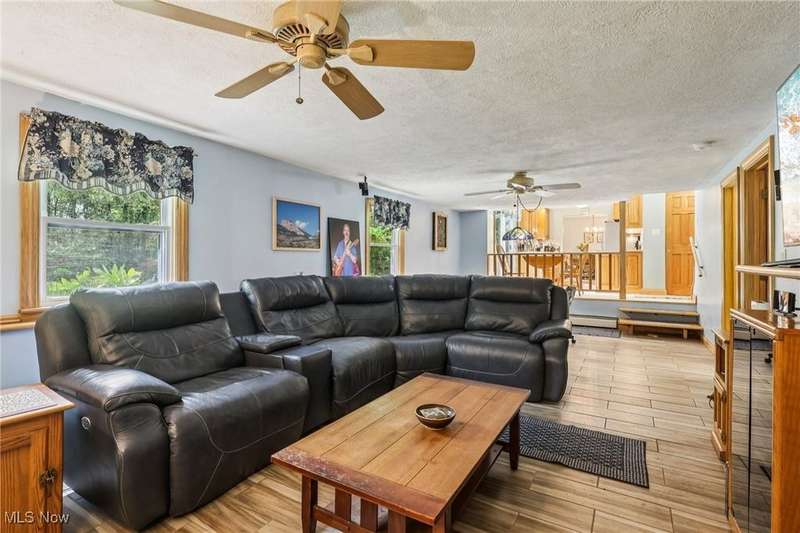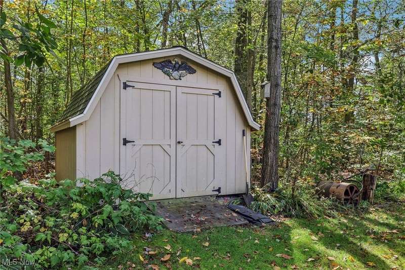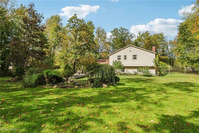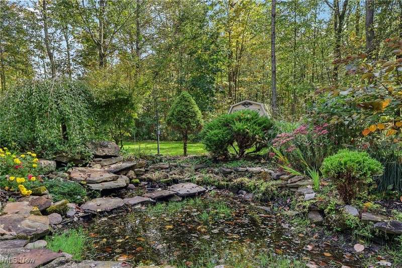 Welcome to this spacious 4 bed, 2.5 bath split level. The property consists of parklike, 1.5 acres with a beautifully curved drive leading to a nature retreat. A series of aerated ponds in the back, coupled with mature perennial gardens welcome you to the oasis complete with a dock to feed fish. This home has both a patio and a curved deck for entertaining or to simply enjoy your mornings from. Inside you will find a wonderfully maintained home with hardwood trim and solid wood doors, floating wood stairs dropping down to the lower level, and a custom renovated half bath. This level has two living spaces: the family room and rec area. The laundry room is spacious and conveniently located off the garage. The main level has yet another living area, dining room, and kitchen with a great view and easy access to the patio. Appliances stay with this home. You simply need to move in and enjoy fall. All the rooms are spacious including the 4 bedrooms upstairs. This allows a variety of layouts to suit your needs throughout the home. Updates through the year a vast and include: Blown insulation, Cement Driveway, stamped concrete patio, Roof, windows, Deck, Garden shed, landscaping and drainage, ceramic floors, Plaster replaced with drywall, Trim and doors replaced with solid wood, Fireplace insert, updated main electrical panel, siding, and gutters. This property is close to UH Geauga and Cleveland Clinic Hillcrest. It is nestled where Suburban and Rural life intersect. You can enjoy the bygone feels of Burton, Chagrin, or Middlefield while still connecting with the amenities of Bainbridge, Chardon, and Mayfield. Depending on which direction you choose, a 15-minute drive will land you on an entirely different adventure. The property benefits from the tax advantages that come with Newbury Township, while being part of the award-winning West Geauga School District. Warranty included: No age limitations, discount on new appliances, Rekey option, and more