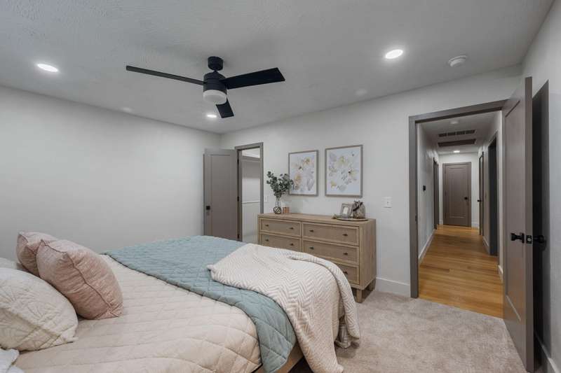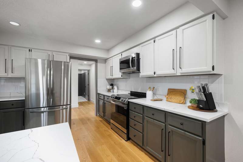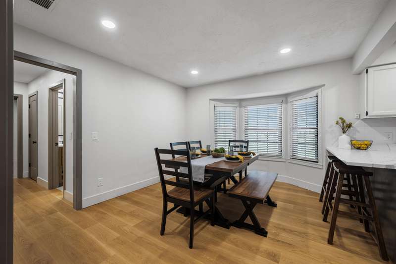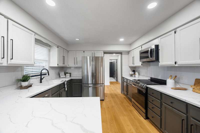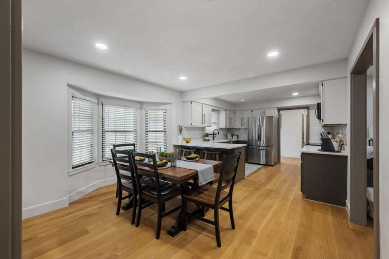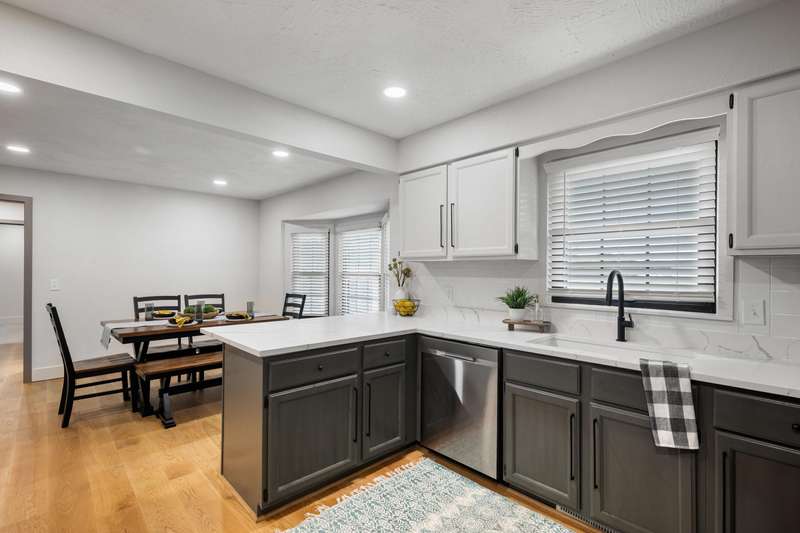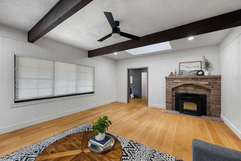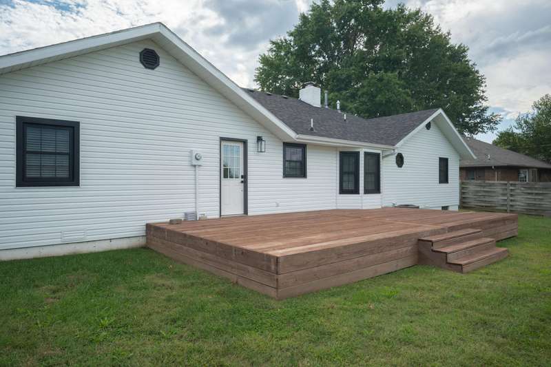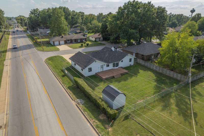 Discover this stunning 4 bedroom, 2 bath home with a 2 car garage in the heart of Nixa. Sitting on a large corner lot with a fenced yard and spacious deck, it's an ideal backdrop for weekend barbecues and evening gatherings. From the moment you arrive, the white exterior accented by new black trimmed windows, black garage doors, and fresh black landscaping rock creates a timeless first impression. A welcoming covered front porch leads inside, where high end finishes set the tone throughout.The interior showcases beautiful 7 inch white oak hardwood floors that flow through the main living spaces, while plush carpet adds comfort to the four bedrooms, and tile elevates both bathrooms. The kitchen is a showpiece with crisp white quartz countertops, a mix of green and white cabinetry, and warm wood tones that tie everything together. Natural light pours into the dining area wrapped in windows, and the living room makes a bold statement with dark stained ceiling beams, skylights, and a cozy corner brick fireplace with a pellet stove.Every detail has been carefully considered from the dramatic all black foyer to the dual vanities in both bathrooms and the spa like master suite with a walk in shower. Generous walk in closets offer ample storage, and a detached building provides extra space for hobbies or tools.Call today to schedule your private showing!