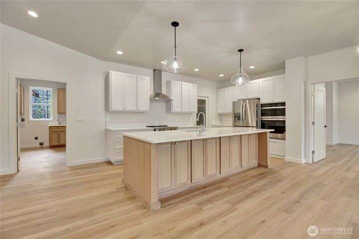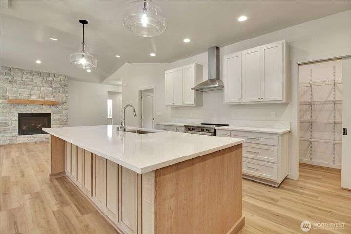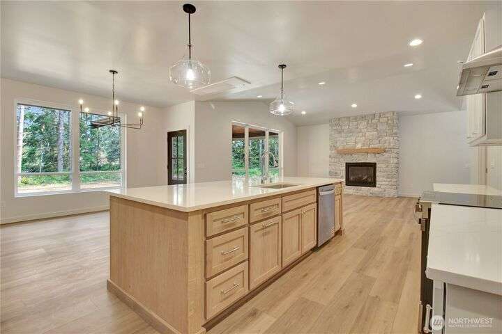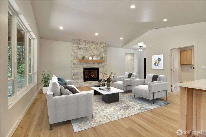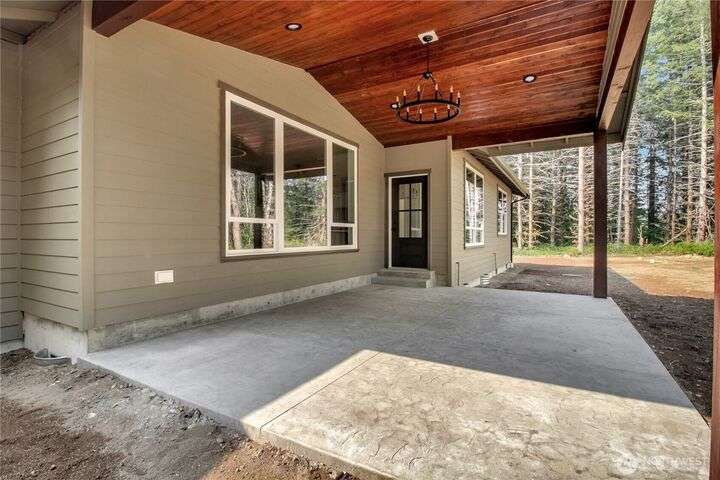 Experience tranquil country living on 5.24 acres with marketable timber and a custom new construction home. Thoughtfully designed split bedroom home features an open floor plan highlighted by a rustic stone fireplace, and 9-foot cathedral ceilings that invite natural light throughout. The kitchen features a walk-in pantry, stainless steel appliances, 10-foot kitchen island and classic quartz countertops. Perfect for entertaining and daily life alike! The spacious primary suite includes a walk-in closet and ensuite bathroom for a private retreat after a long day. Enjoy the covered back patio that blurs the line between indoor comfort and outdoor living. With a corner lot setting this property offers a peaceful retreat with room to grow!