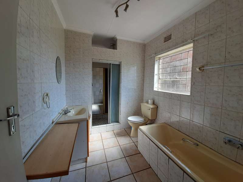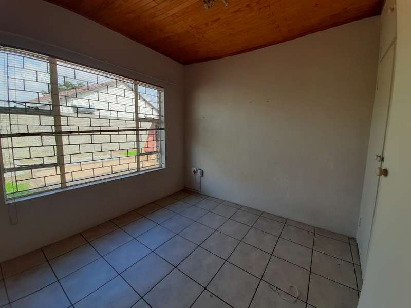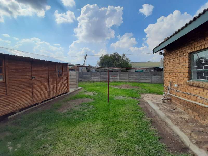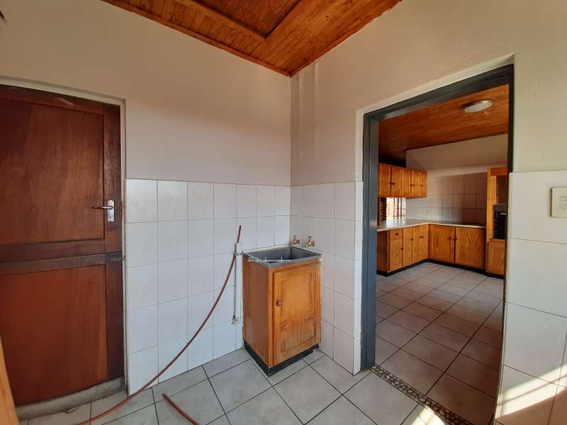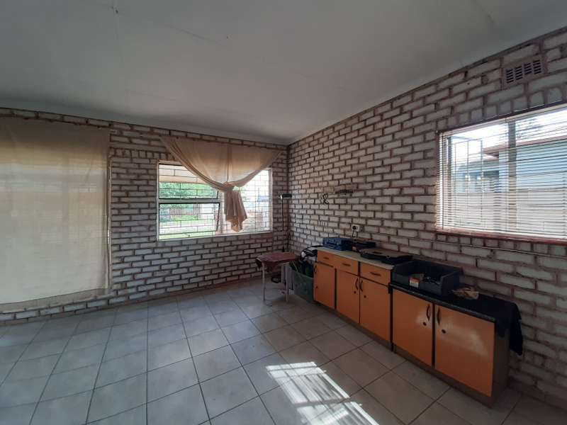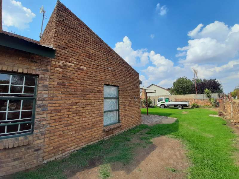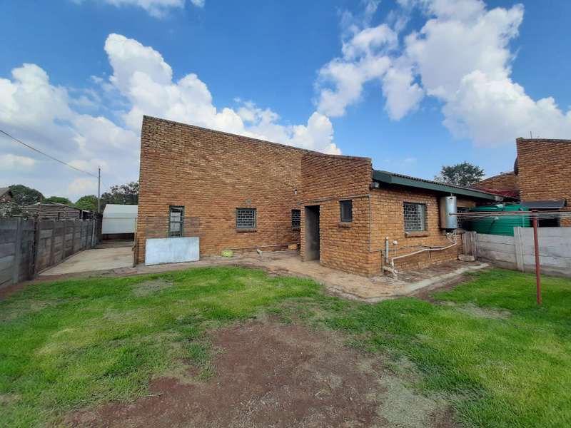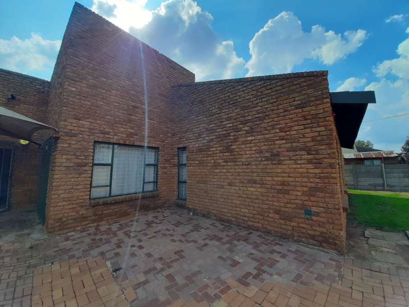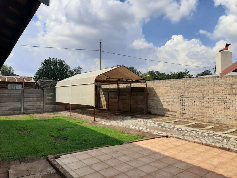 This property is situated close to Eloff Primary School, very well located, and has 4 bedrooms, or 3 bedroom house, and 1 bedroom flat. The main house consists of an open-plan dining room and kitchen, a living room, 3 bedrooms, and two full bathrooms that share a shower; one is on-suite. A scullery with laundry facility. There is a zinc lapa with a built-in braai, 1 single carport, and another double carport. The flat can easily be closed up to be completely separate, or you can keep it part of the main house for a big family. It has a living area, a massive kitchen, and a diningroom with one bedroom and an on-suite bathroom. The flat has it's own entrance and carport. The house has backup lights that are powered by one solar panel. There is a 5000-liter water tank with pump. Property has an alarm system