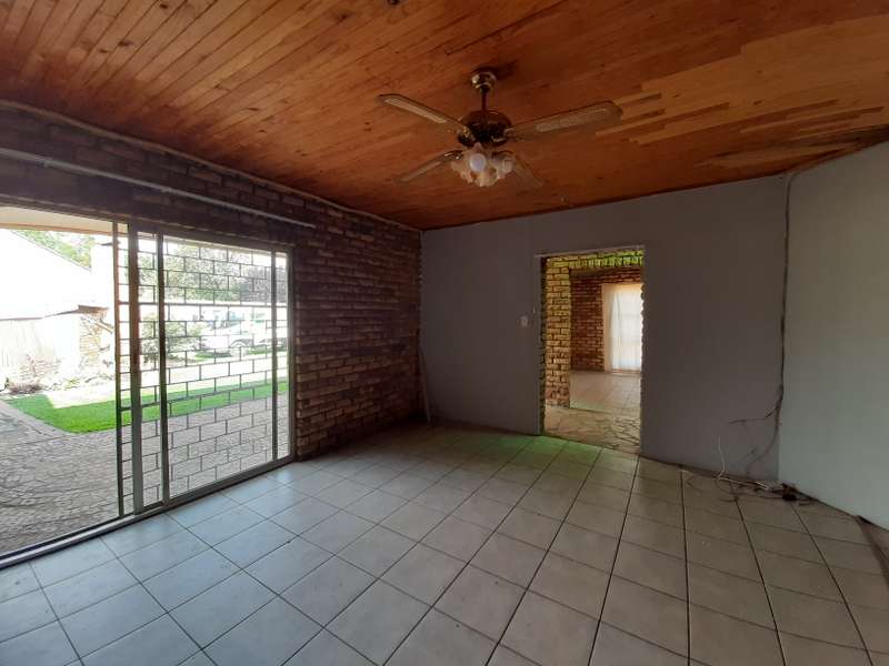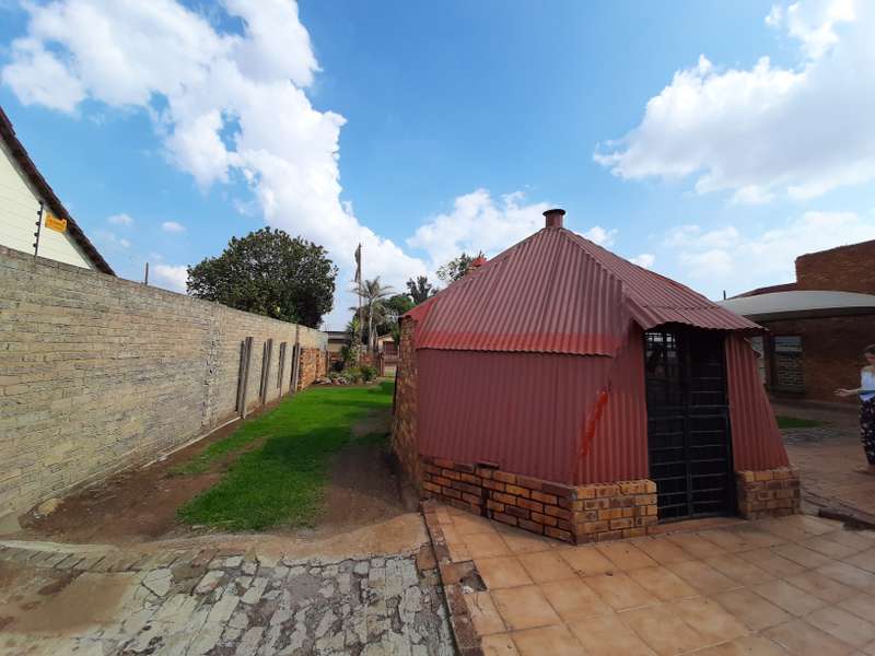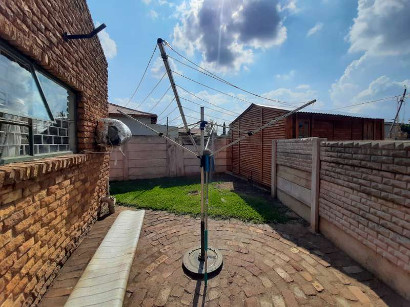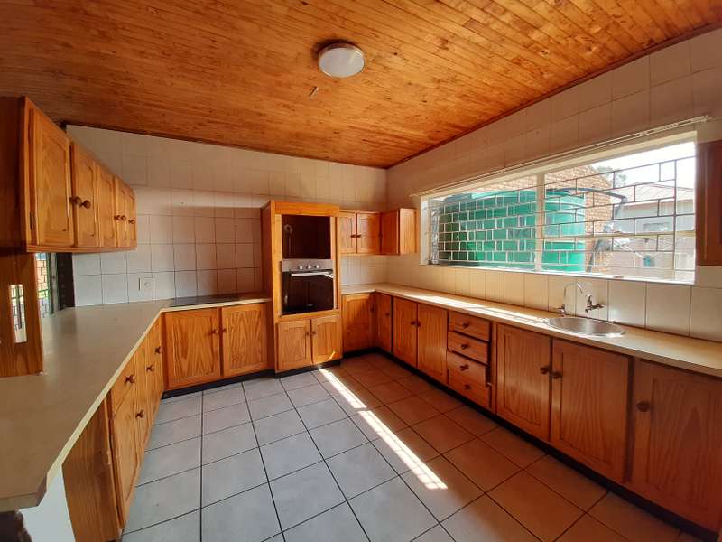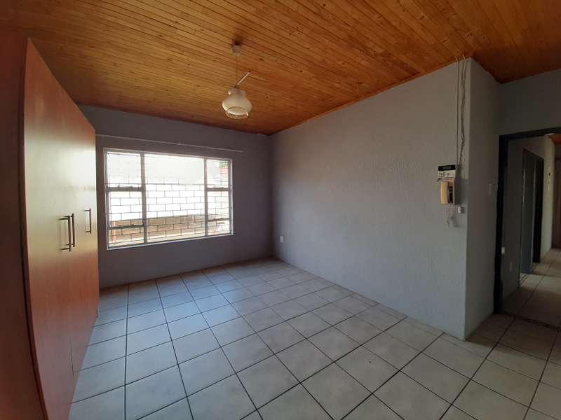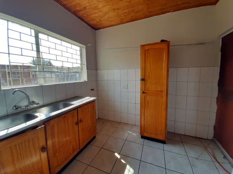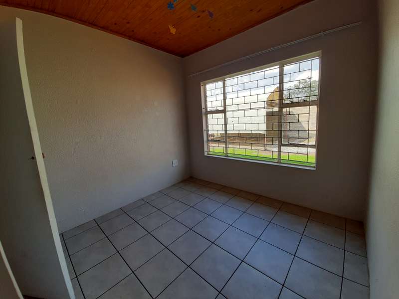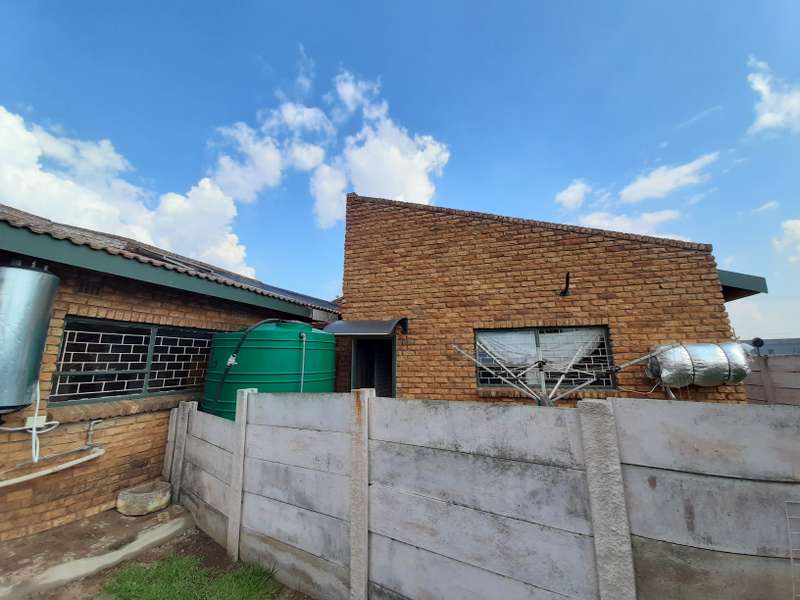 This property is situated close to Eloff Primary School, very well located, and has 4 bedrooms, or 3 bedroom house, and 1 bedroom flat. The main house consists of an open-plan dining room and kitchen, a living room, 3 bedrooms, and two full bathrooms that share a shower; one is on-suite. A scullery with laundry facility. There is a zinc lapa with a built-in braai, 1 single carport, and another double carport. The flat can easily be closed up to be completely separate, or you can keep it part of the main house for a big family. It has a living area, a massive kitchen, and a diningroom with one bedroom and an on-suite bathroom. The flat has it's own entrance and carport. The house has backup lights that are powered by one solar panel. There is a 5000-liter water tank with pump. Property has an alarm system