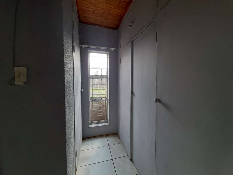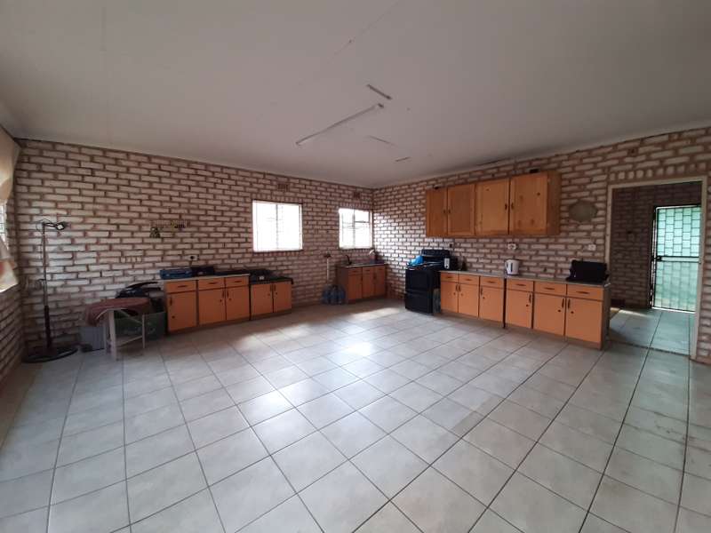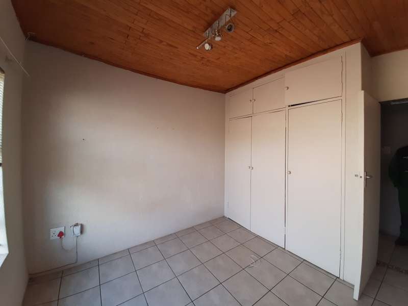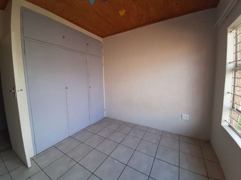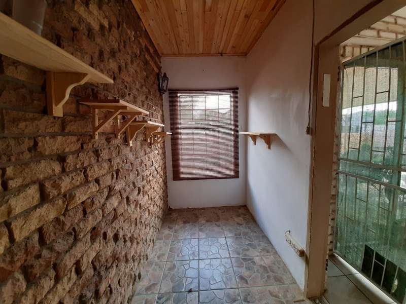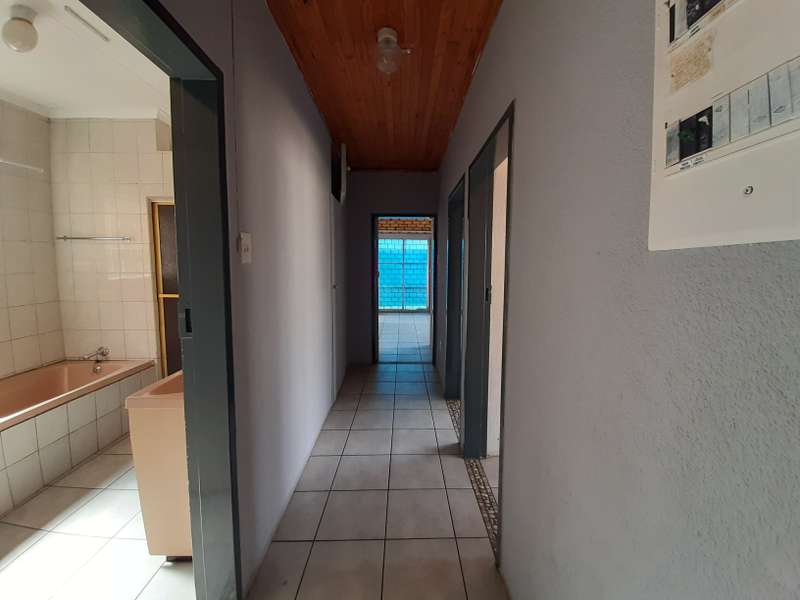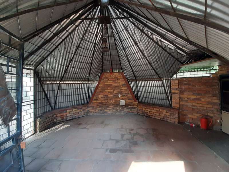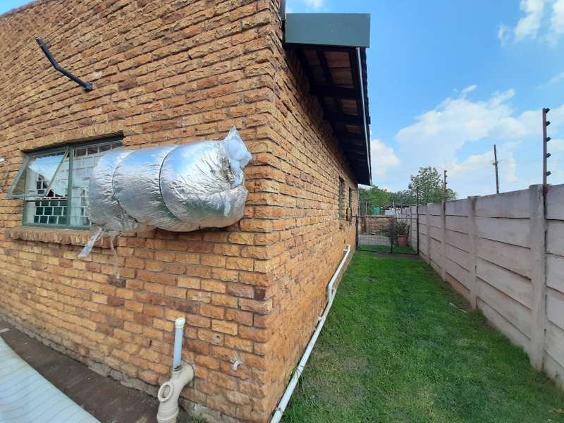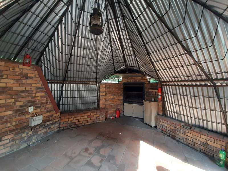This property is situated close to Eloff Primary School, very well located, and has 4 bedrooms, or 3 bedroom house, and 1 bedroom flat. The main house consists of an open-plan dining room and kitchen, a living room, 3 bedrooms, and two full bathrooms that share a shower; one is on-suite. A scullery with laundry facility. There is a zinc lapa with a built-in braai, 1 single carport, and another double carport. The flat can easily be closed up to be completely separate, or you can keep it part of the main house for a big family. It has a living area, a massive kitchen, and a diningroom with one bedroom and an on-suite bathroom. The flat has it's own entrance and carport. The house has backup lights that are powered by one solar panel. There is a 5000-liter water tank with pump. Property has an alarm system