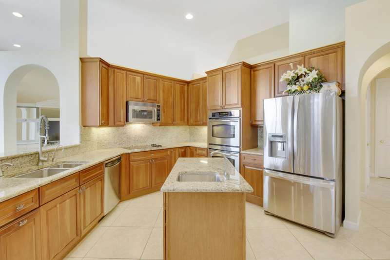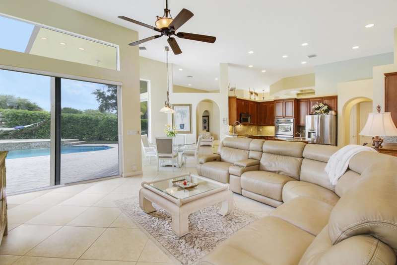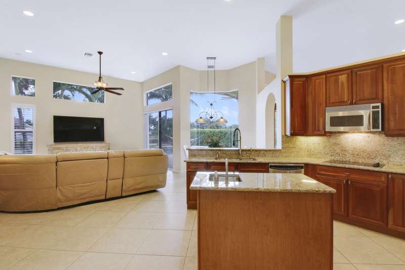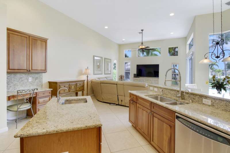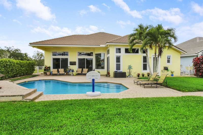 Come see this impressive waterfront pool home located in a gated boating community. This 4 bedroom (plus den/office), 3 bath home is on a deep-water canal with a dock (updated in 2020) and a 13K lift located behind the home with ocean access and no fixed bridges. Great outdoor living with a fenced backyard with an awesome heated saltwater pool and a Tiki Hut with a built-in outdoor style kitchen, lush landscaping and on a corner-lot add to a private setting. The interior of the home is nicely appointed with formal dining and living room and a large combo kitchen and family room. The kitchen comes with stainless steel appliances, 42 cabinets, granite countertops, double oven, and a center island. Large 3 bay garage allows for good storage. Both A/C units replaced in 2023. Whole house Gen erac 22kw generator installed in 2020. Easy access to I-95.