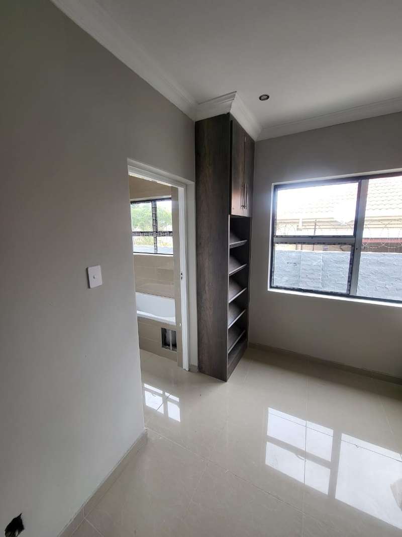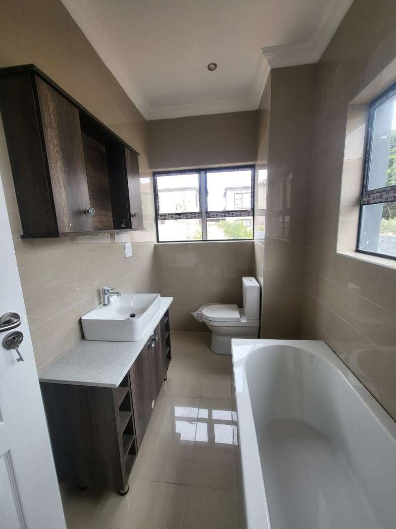 NEWLY BUILD ~ 3 Bedroom House for sale in Brits ~ In a Complex!! A newly build house for sale ~ in a very nice and quiet complex. It is situated near the road and hospital, shopping complex, school. ect. It offers 2 x garage braai area 3 x bedrooms 2 bathrooms large lounge kitchen and scullery. Walking outside the house into the garden. This house is a modern house, for a big family. It is child friendly at any time. Call Jeanette to arrange for viewing....