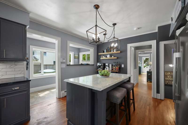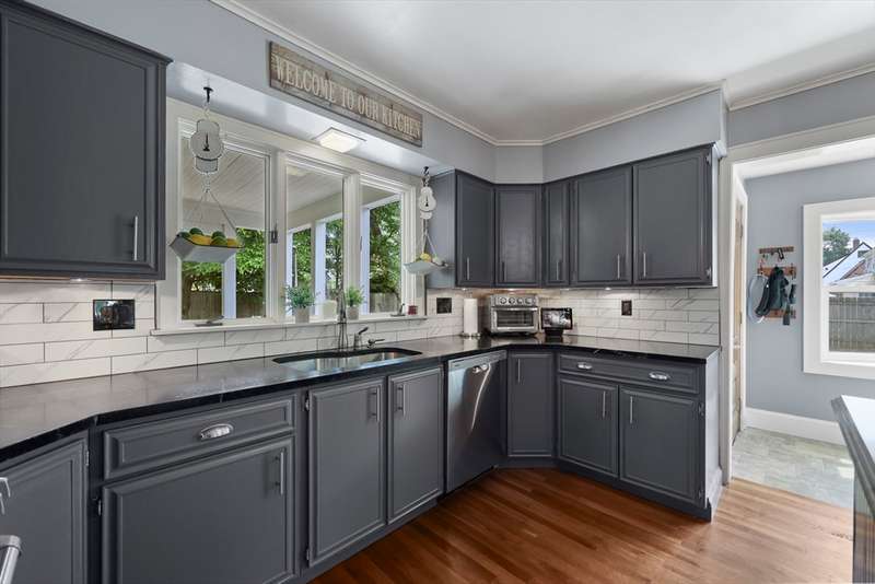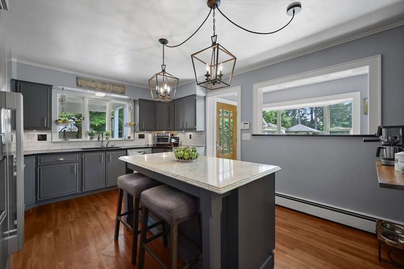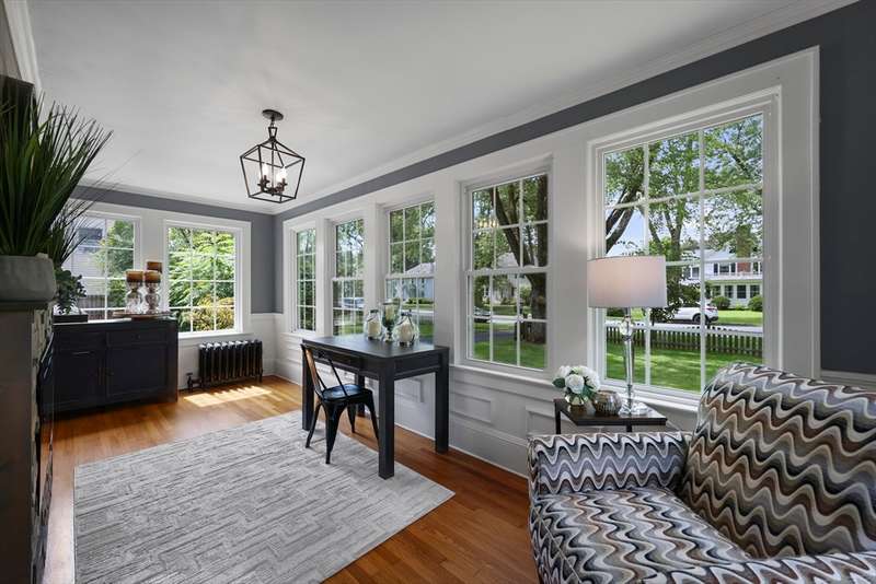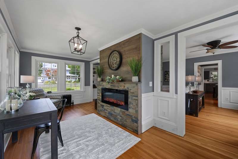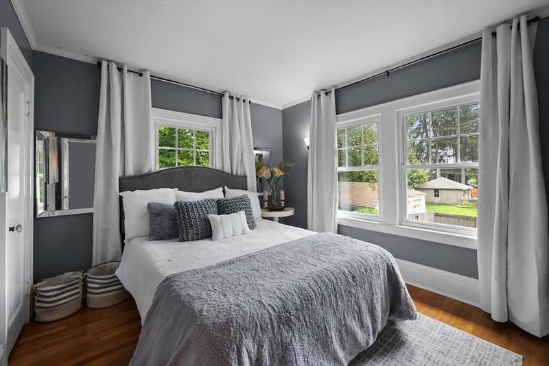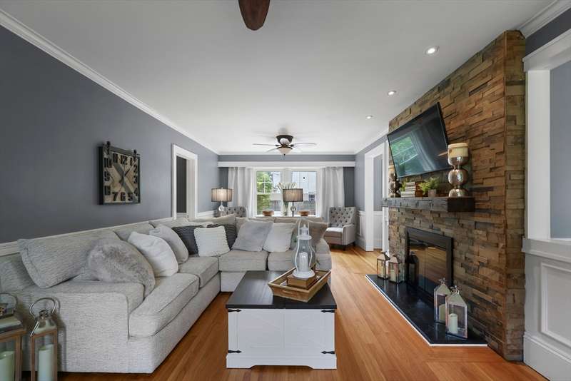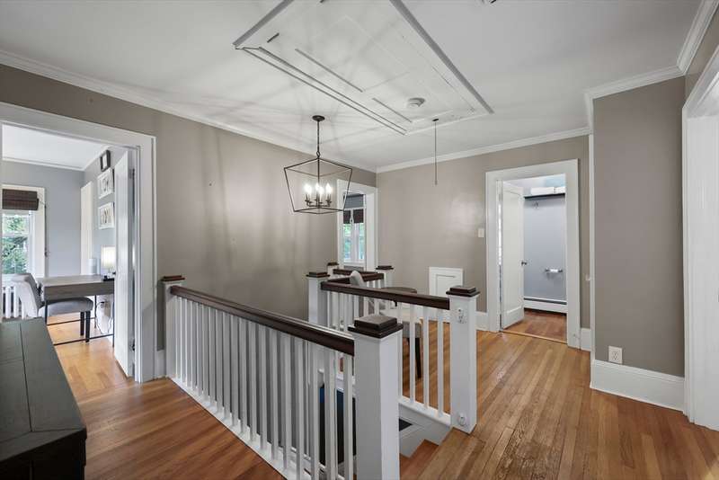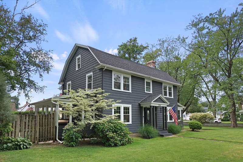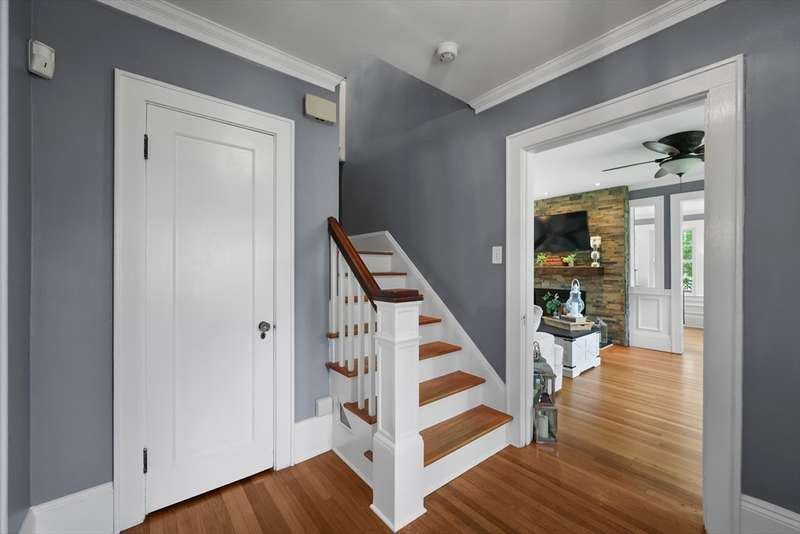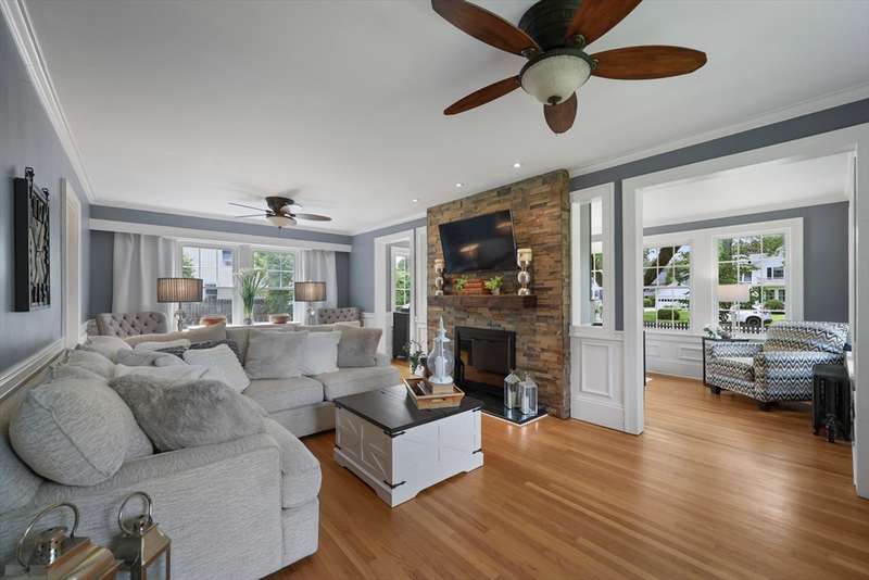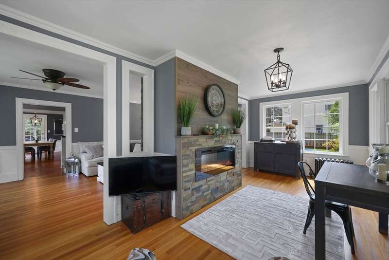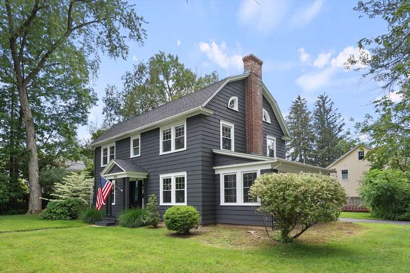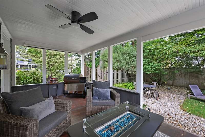 Welcome to this beautifully appointed & pristinely maintained residence that combines timeless character with modern upgrades. Situated on a desirable corner lot, offering a fully fenced-in yard. This spacious home features generously sized rooms throughout, offering comfort & elegance at every turn. The stunning kitchen is equipped with stainless steel appliances, soapstone countertop, quartz island and classic backsplash. A formal dining room flows seamlessly into the side porch, overlooking the serene side yard, perfect for entertaining. The expansive living room boasts a stacked stone wood-burning fireplace and built-ins. Off the living room, a cozy sitting area with an electric fireplace provides a perfect spot for an office or a reading nook.Upstairs there are four bedrooms & two full bathrooms.The walk-up attic offers abundant storage, while the partially finished lower level makes an excellent family or recreation room.