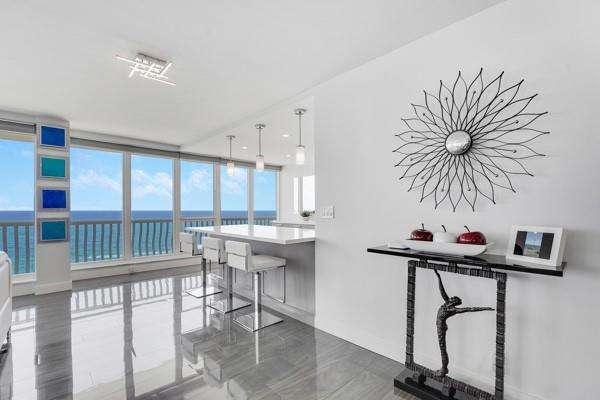 YOUR DREAM C0ASTAL RETREAT AWAITS! Welcome to this 4 bedroom/4 bath Oceanfront Residence on the GALT OCEAN MILE. A rare blend of coastal elegance, expansive living space and resort style amenities. This stunning 3296 sqft condo created by combining Units 911/909 offers a unique opportunity for luxurious oceanfront living. Wake-up each day to the sound of waves & breathtaking sunrises from your private wrap around balcony offering panoramic views of the Atlantic. This open concept layout with floor to ceiling impact windows/doors, gourmet kitchen with Porcelanosa-Krion white countertops,Subzero refrig,Wolf oven and spacious island. The Master Suite with private en-suite bathroom and additional 3 bedrooms are generously sized with access to 3 full baths. The Only Rooftop Pool on the Galt.