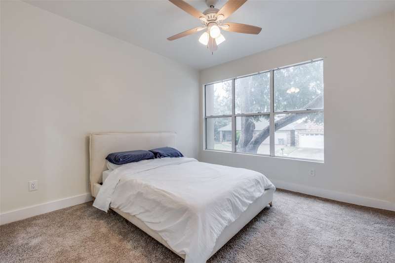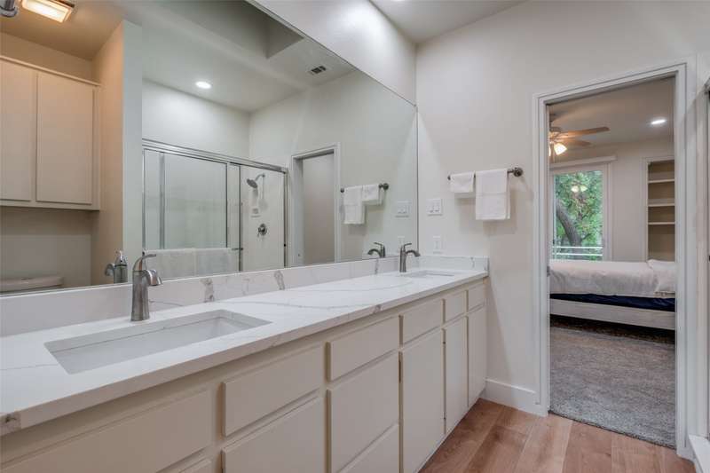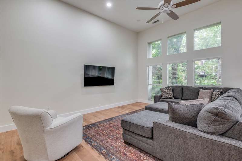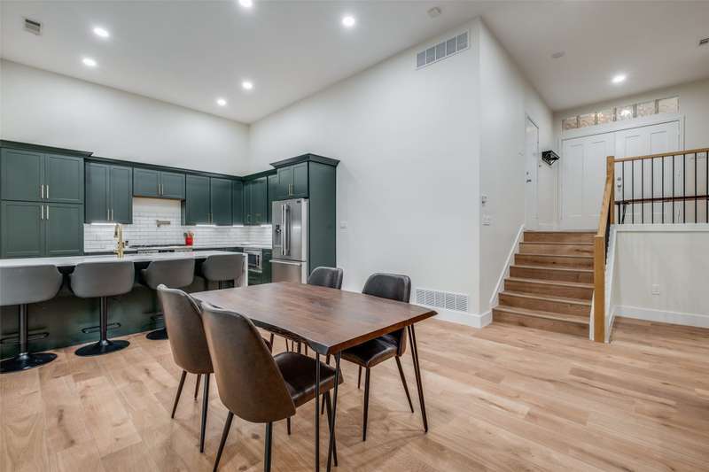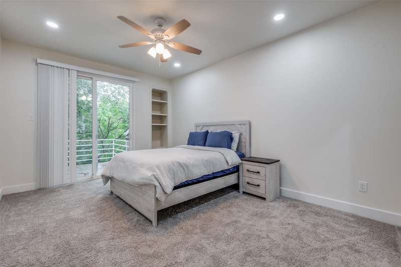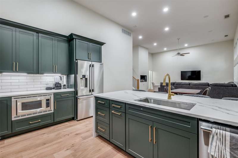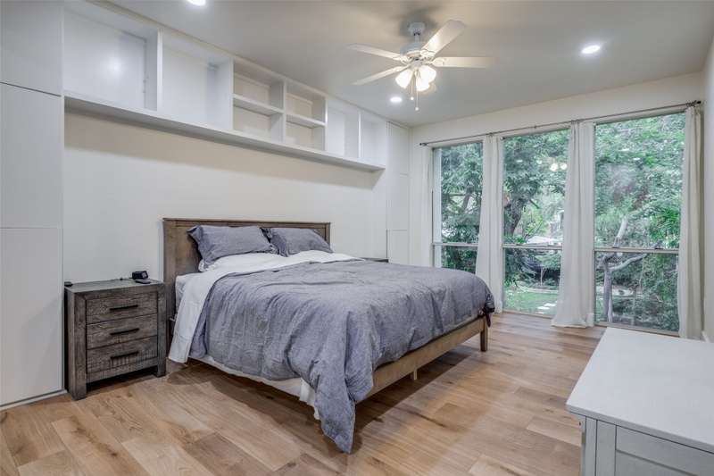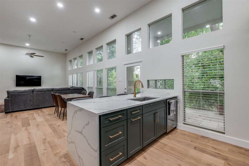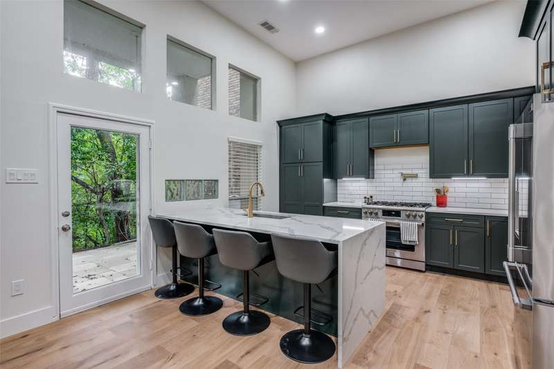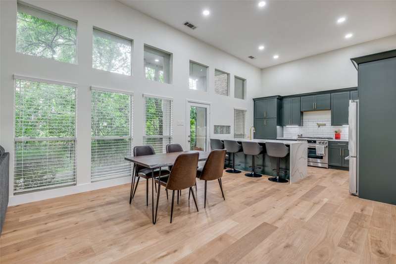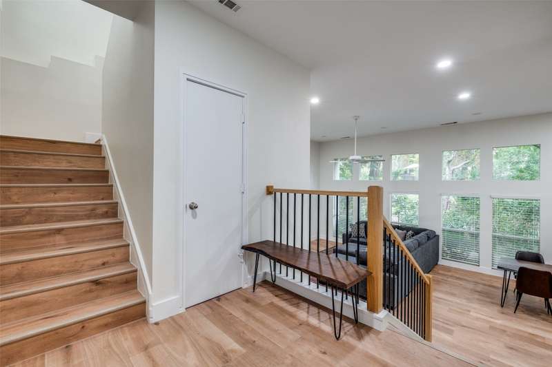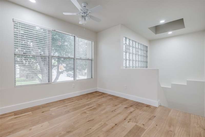 PREFER TO LEASE FULLY FURNISHED. Striking, soft contemporary home with an abundance of windows and natural light has been recently updated with beautiful luxury viny flooring and a fully remodeled kitchen. It is located on a heavily treed creek-side lot. The spacious living room has a soaring ceiling and a wall of windows looking out to the terrace and wooded creek. The remodeled kitchen features gorgeous quartz countertops, lots of cabinets, a gas cooktop and stainless appliances. The upstairs includes 3 bedrooms each with walk-in closets and large windows with beautiful tree-top views. The upstairs also has an open study or second living area. Convenient to Love Field, shopping and restaurants. Refrigerator, washer and dryer included with lease. ALL UTILITIES INCLUDED WITH A FURNISHED LEASE!