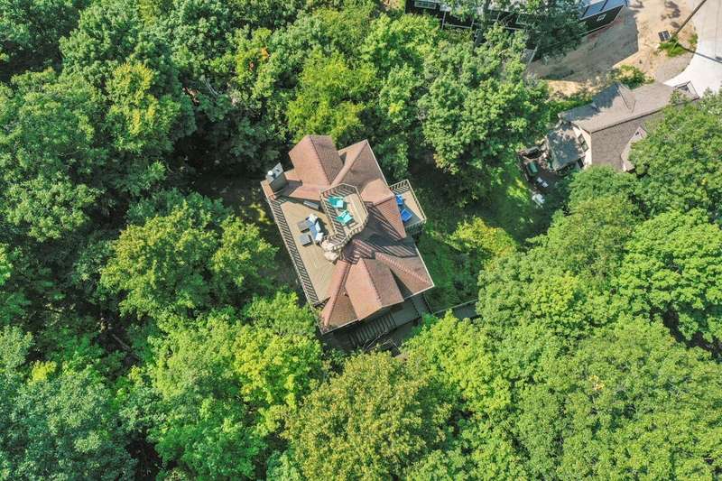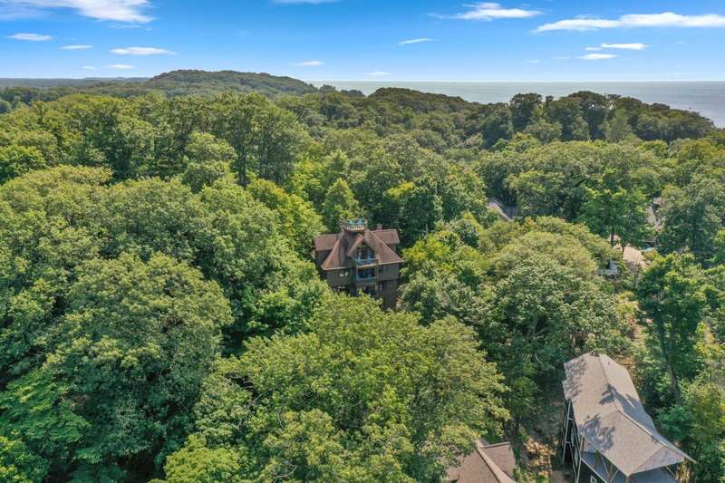 Fantastic views of Lake Macatawa and Lake Michigan with association Lake Michigan beach access just a short walk or golf cart ride away in the gated Macatawa Hills area near Macatawa Bay Yacht Club, Eldean's Marina and Sanctuary Woods Preserve. This 4 story cottage has an amazing rooftop deck, plus balconies/deck on every level with views of the water and woods. 2.5 baths, quartz counters, hickory wood floors throughout, Samsung stainless steel appliances 4 bed rooms and 4th floor bonus room could be another bedroom (5th) or combo office/bedroom/den or game room. There's a separate lower level apartment with 2 bedrooms, a bath and kitchenette. A three person tram with Sunbrella cover or stairs to take you from the 4-5 parking spots to the home. 2 AC units and furnaces new in 2019. Fantastic views of Lake Macatawa and Lake Michigan with association Lake Michigan beach access just a short walk or golf cart ride away in the gated Macatawa Hills area near Macatawa Bay Yacht Club, Eldean's Marina and Sanctuary Woods Preserve. This 4 story cottage has an amazing rooftop deck, plus balconies/deck on every level with views of the water and woods. 2.5 baths, quartz counters, hickory wood floors throughout, Samsung stainless steel appliances 4 bed rooms and 4th floor bonus room could be another bedroom (5th) or combo office/bedroom/den or game room. There's a separate lower level apartment with 2 bedrooms, a bath and kitchenette. A three person tram with Sunbrella cover or stairs to take you from the 4-5 parking spots to the home. 2 AC units and Furnaces new in 2019. Bottom apartment on it's own zone then next two levels up on their own zone. Upper most (4th) floor has a mini split to supplement forced air heat/cooling. Home has a steel beam foundation