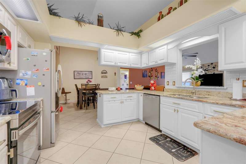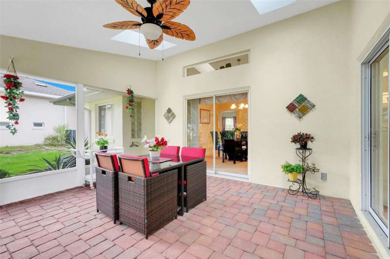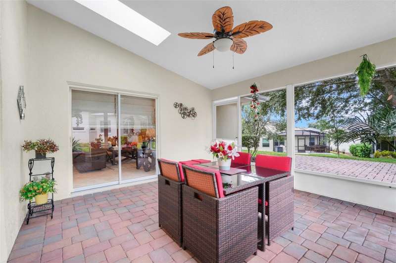 Are you ready for this Florida retirement lifestyle. Welcome to this beautifully maintained, move-in ready 3-bedroom, 2-bath home located in the highly sought-after 55+ community of Royal Highlands. Inside, you’ll find a spacious layout featuring a large family room, a separate living room, and a dining room—perfect for both entertaining and everyday living. The updated primary ensuite offers a walk-in closet, separate shower, and a relaxing jetted tub. The kitchen has upgraded granite countertops with stainless appliances. Additional highlights include a brick-paved driveway, and a covered, screened-in Florida room with paver flooring, plus an extended patio that adds to your living space outdoors. The beautifully landscaped lawn enhances the home’s curb appeal. Royal Highlands is a premier, resident-owned, guard-gated community offering numerous amenities, including two pools, tennis courts, an 18-hole golf course, on-site dining, a recreation center with countless activities, a grand hall with a stage and dance floor, and sports courts. The HOA covers Xfinity cable, high-speed internet, and secure RV/boat storage. This home has convenient access to the Florida Turnpike, Orlando International Airport, Orlando’s attractions, and the Orlando Health South Lake Hospital emergency center. This home combines comfort, convenience, and resort-style living.